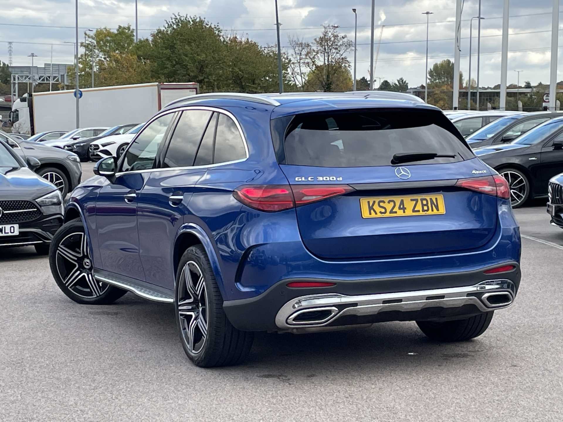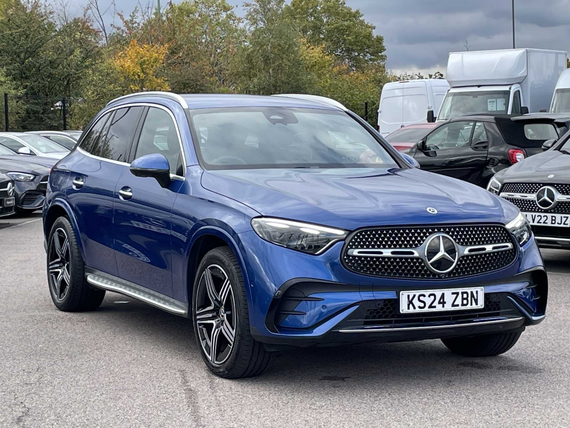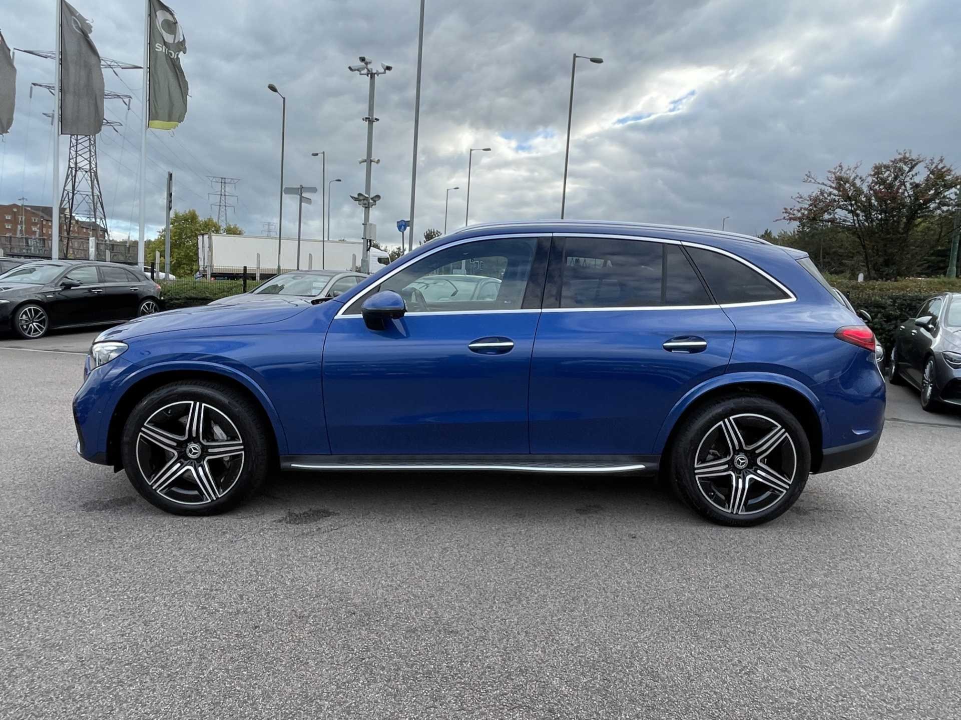This is a 2024 Mercedes-Benz GLC 300d 4Matic AMG Line Premium, a versatile SUV with a sleek blue finish. It has a mileage of 7,750 miles and features an automatic transmission paired with a diesel engine. The car is equipped with 4MATIC permanent all-wheel drive and delivers 269 horsepower for confident performance.