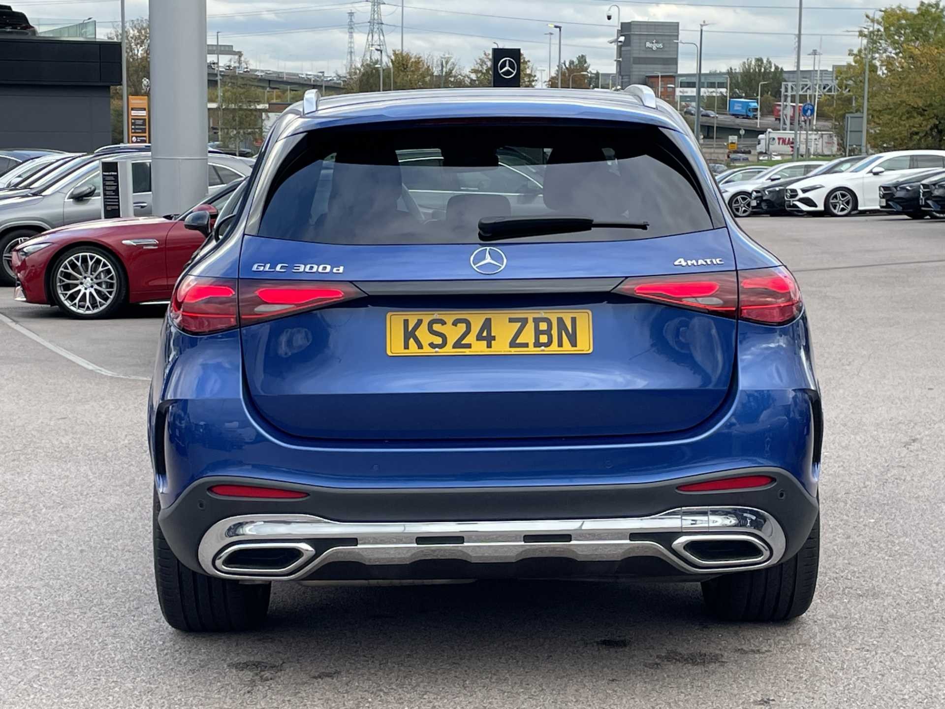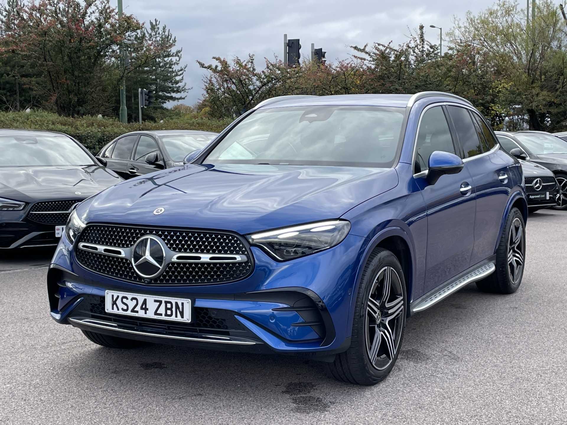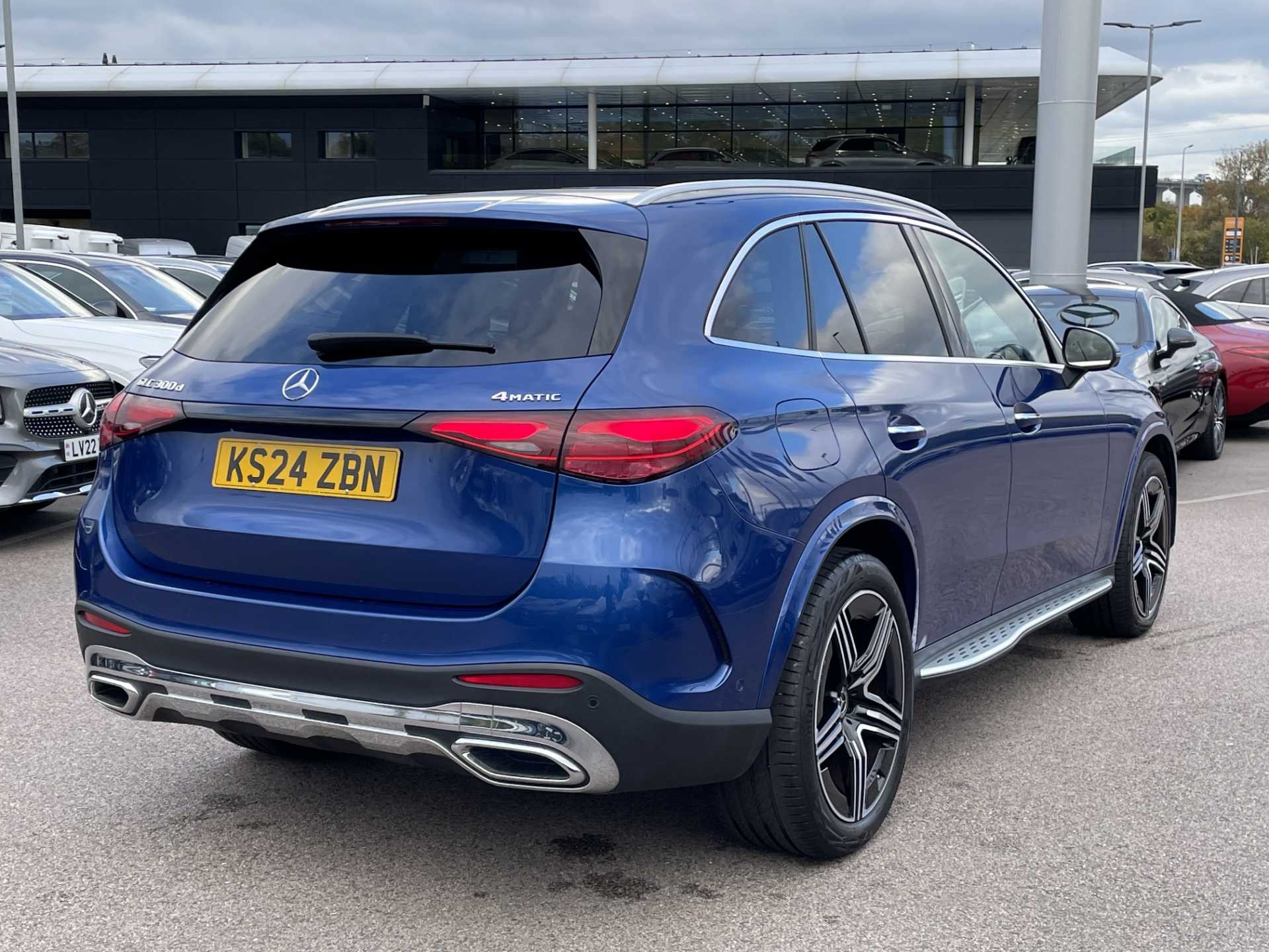This is a 2024 Mercedes-Benz GLC 300d 4Matic AMG Line Premium, a versatile SUV with a sleek blue finish. It has a mileage of 7,750 miles and features an automatic transmission paired with a diesel engine. The car is equipped with 4MATIC permanent all-wheel drive and delivers 269 horsepower for confident performance.