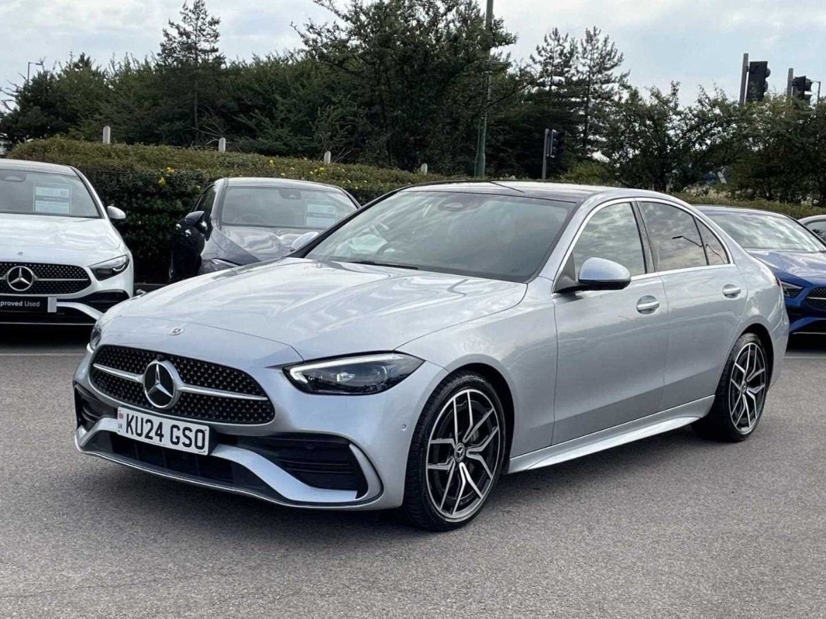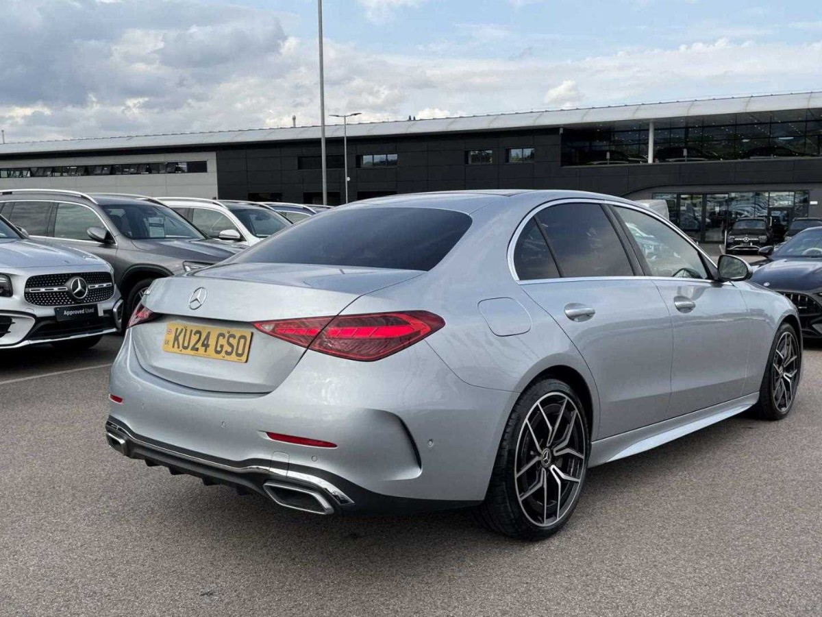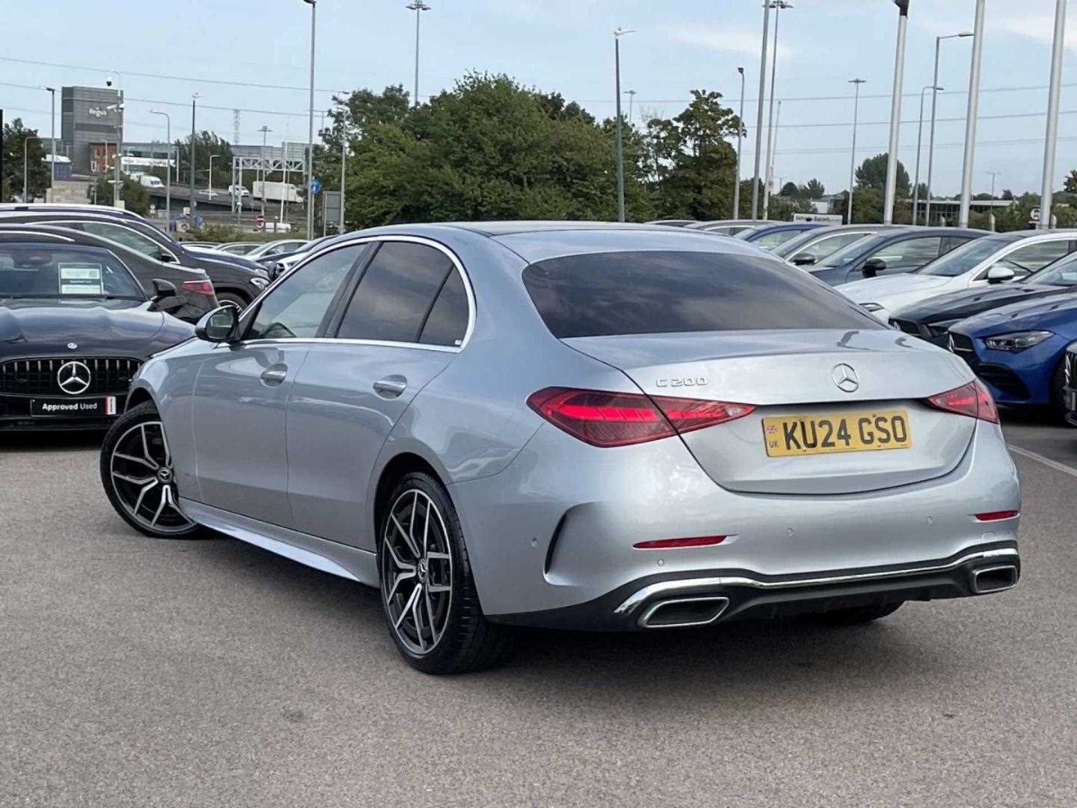 This is a 2024 Mercedes-Benz C Class C200 AMG Line Premium Plus, featuring a sophisticated saloon body design in silver. With 20,087 miles on the odometer, this vehicle comes with a 2.0-litre petrol engine paired with a 9-speed automatic transmission, providing 204 horsepower and rear-wheel drive for a dynamic driving experience.