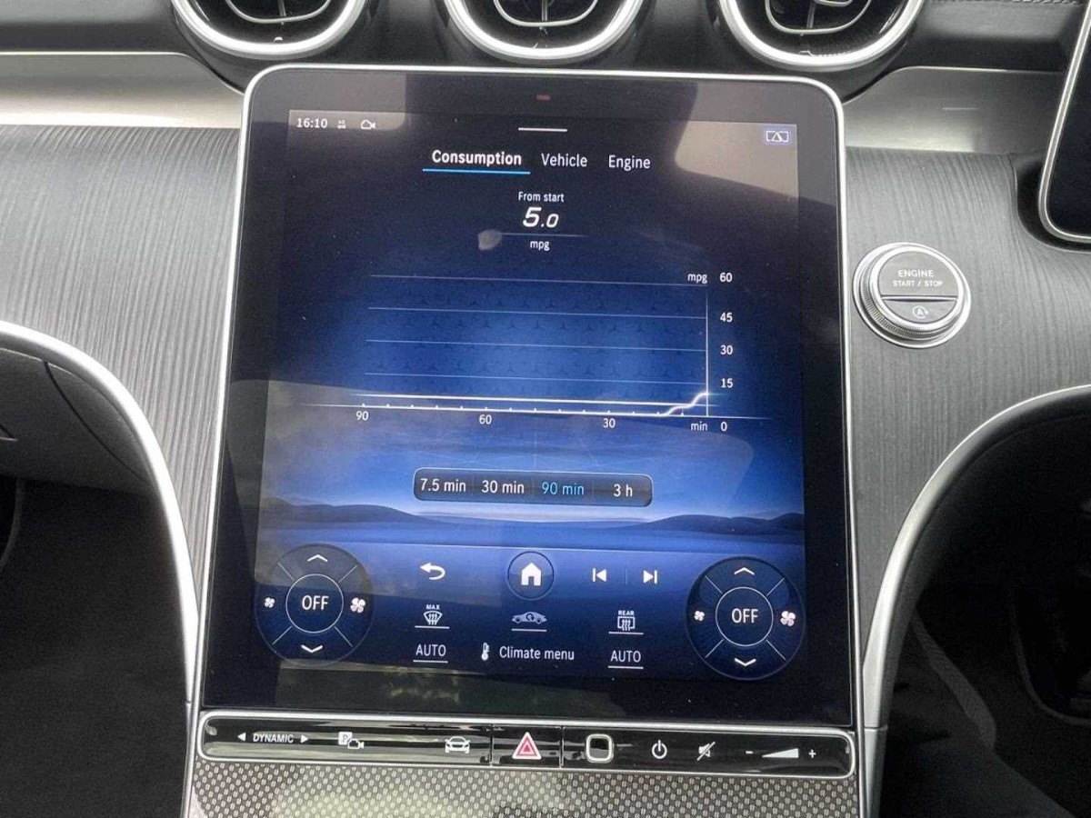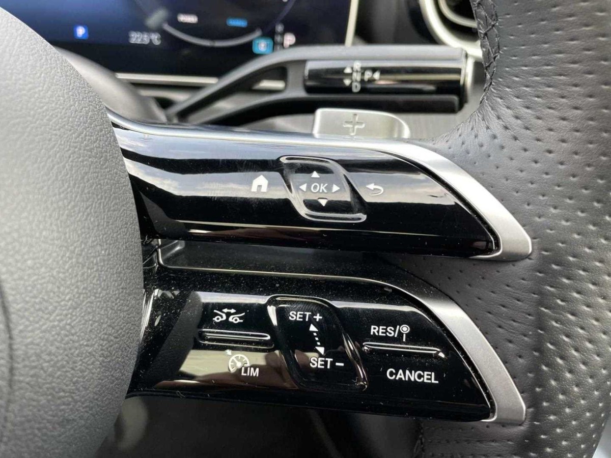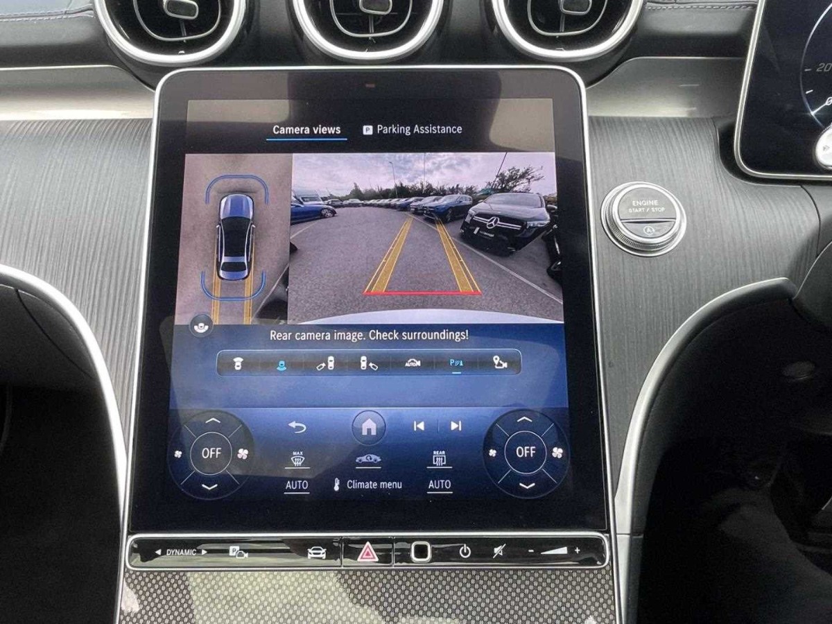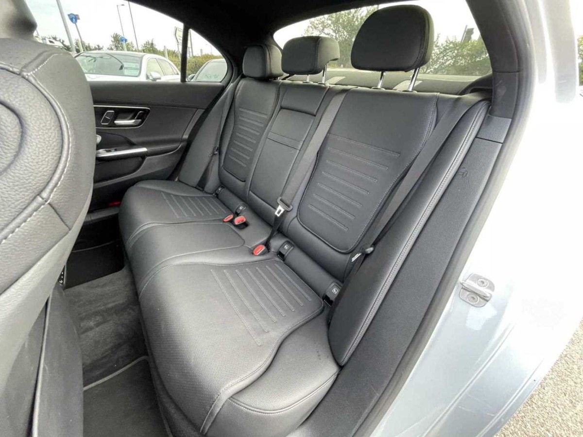 The Mercedes-Benz C Class offers a stylish interior with advanced technology, including a digital instrument cluster, head-up display, and MBUX navigation system. Enhanced driver comfort is provided by heated, electrically adjustable seating with memory functionality and dual-zone climate control. Exterior highlights include 19-inch AMG alloy wheels, AMG body styling, and LED lighting throughout.