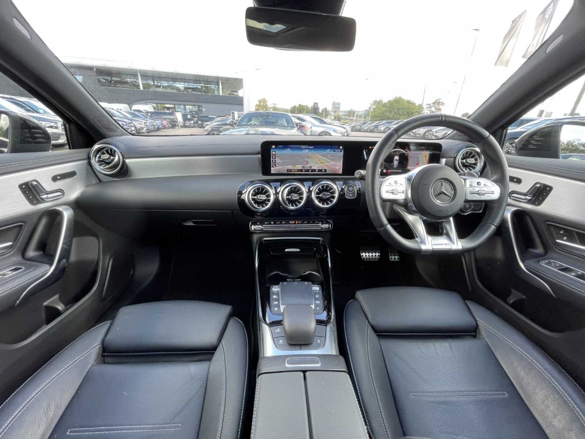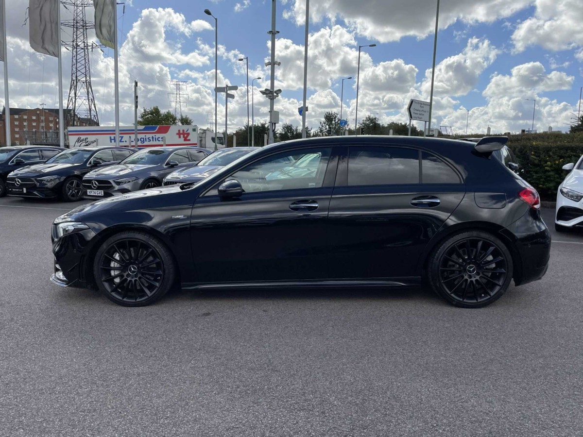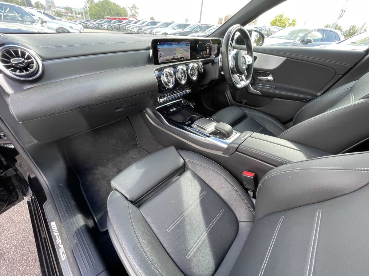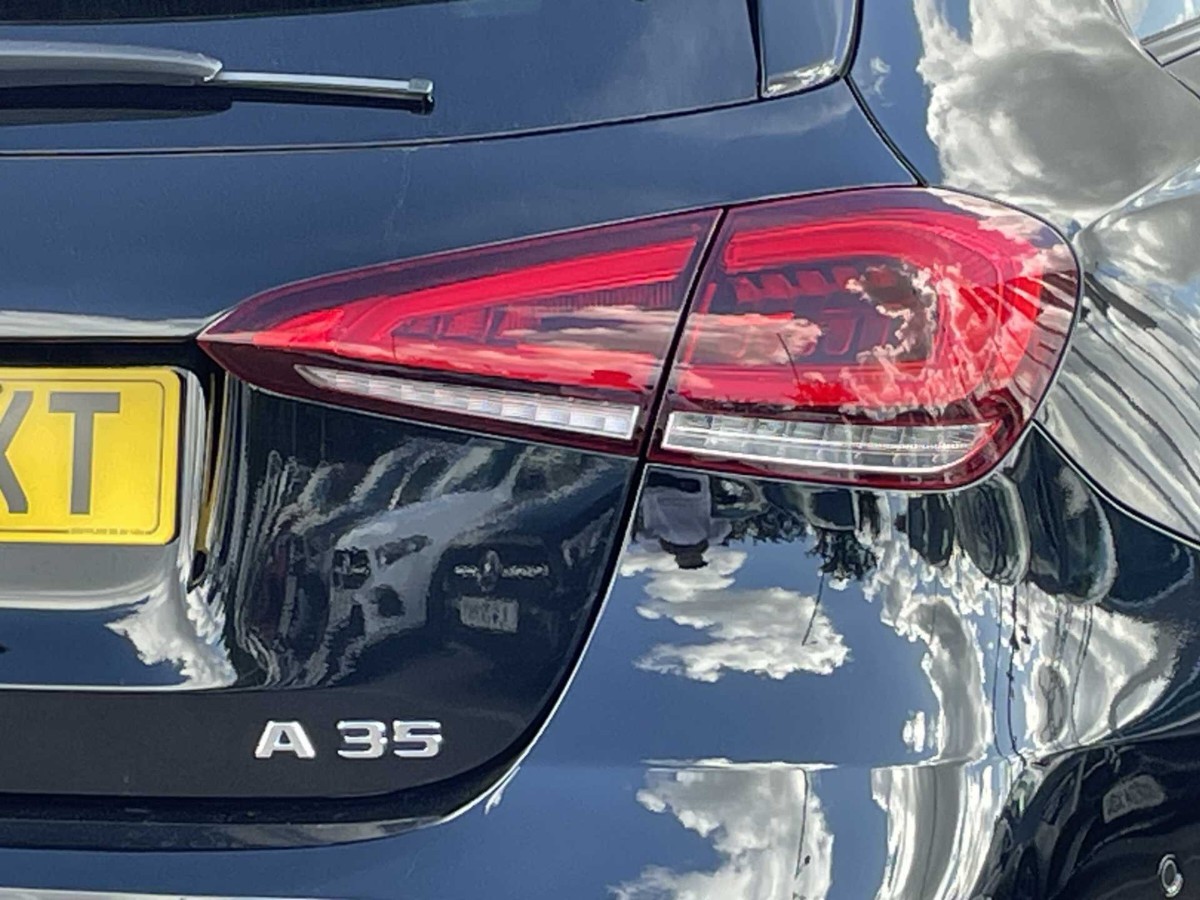 This is a 2021 Mercedes-Benz A Class A35 4Matic Premium Plus Edition 5dr Auto in Cosmos black metallic. The vehicle is a used model with 4,552 miles on the odometer.