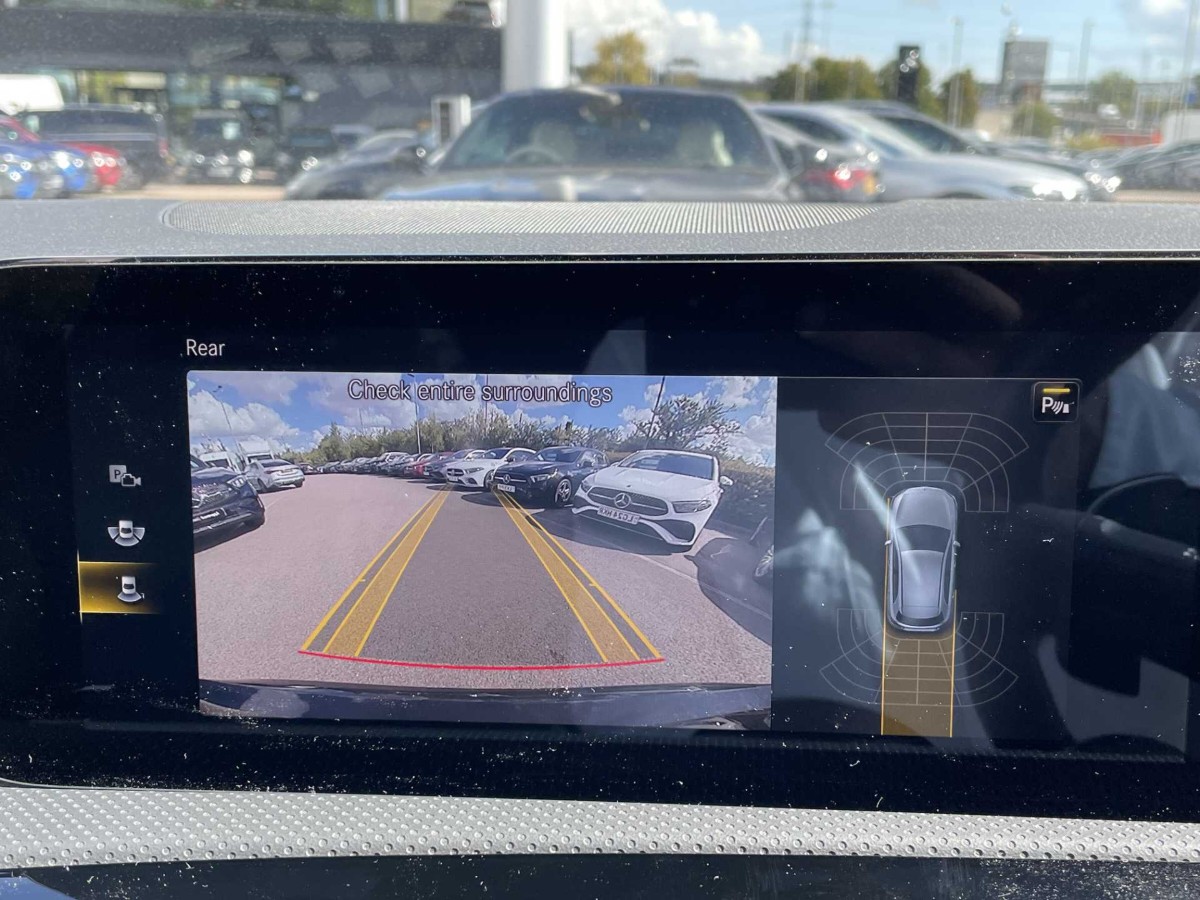 Key highlights of this model include its premium interior trim with black leather, a panoramic sliding sunroof, a 10.25-inch digital instrument cluster, heated front seats, and a high-spec MBUX multimedia system with satellite navigation and smartphone integration. Safety features include multiple airbags, ISOFIX child seat fixings, and active parking assist.