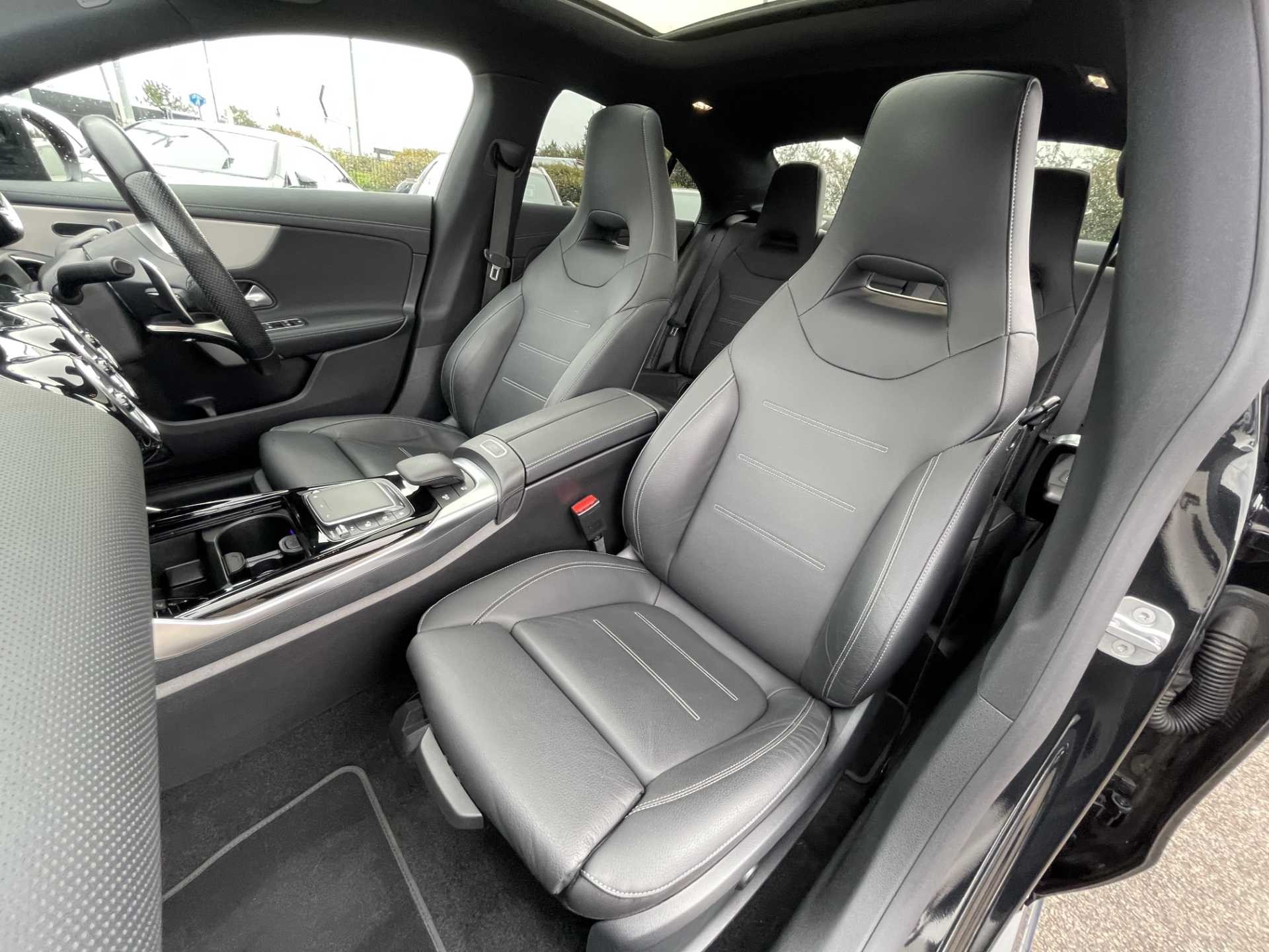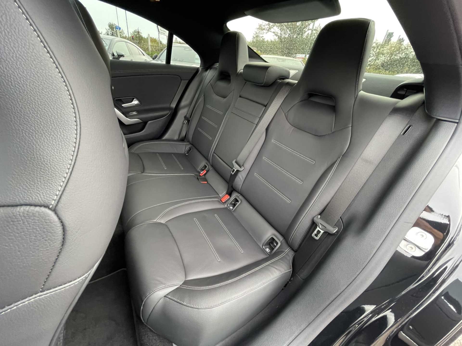 This is a used Mercedes-Benz CLA, finished in Cosmos Black Metallic. The vehicle features a saloon body type and is equipped with an automatic transmission paired with a petrol engine. The trim of the car includes a Leather – Black interior, offering a refined and comfortable driving environment.