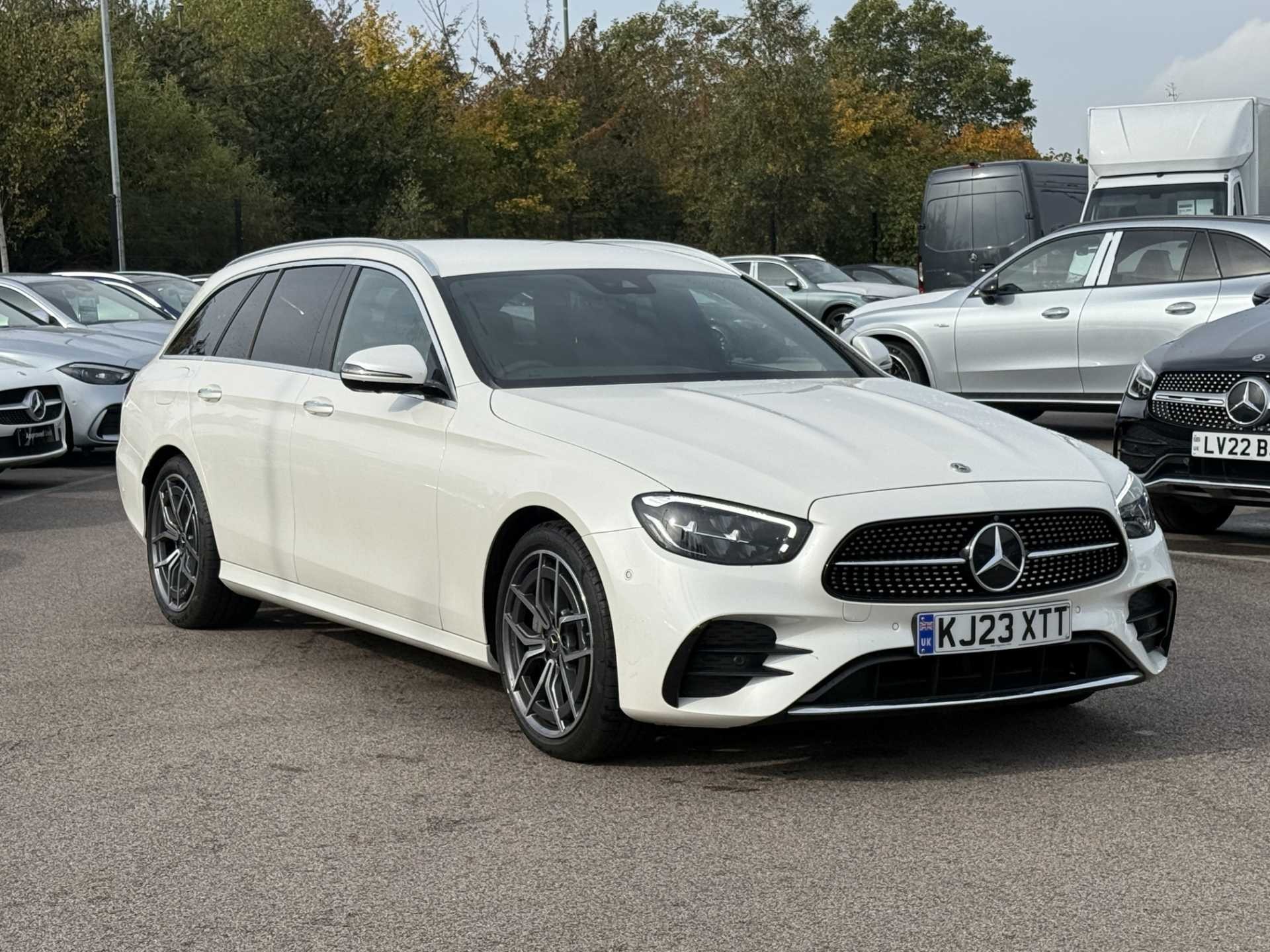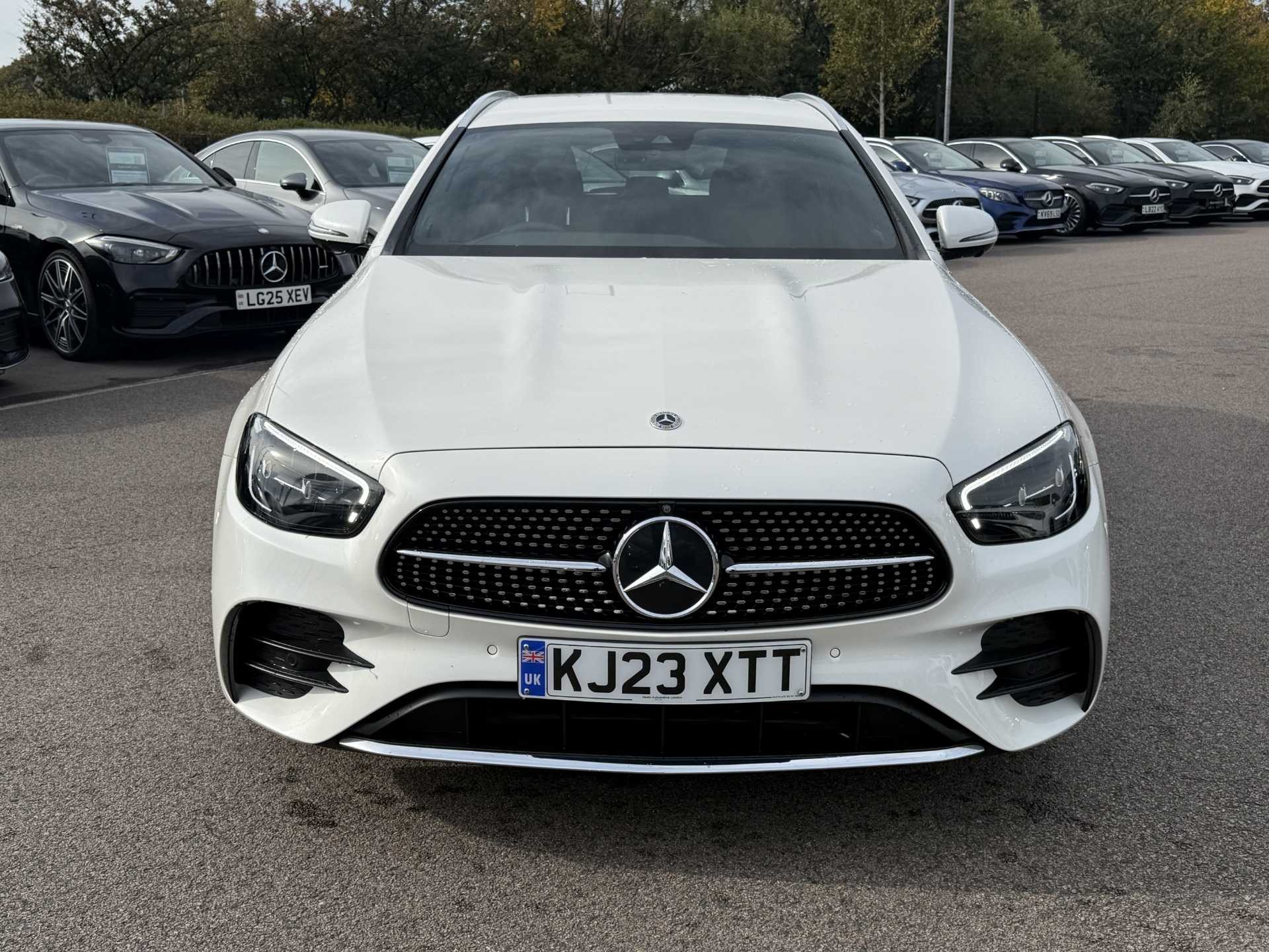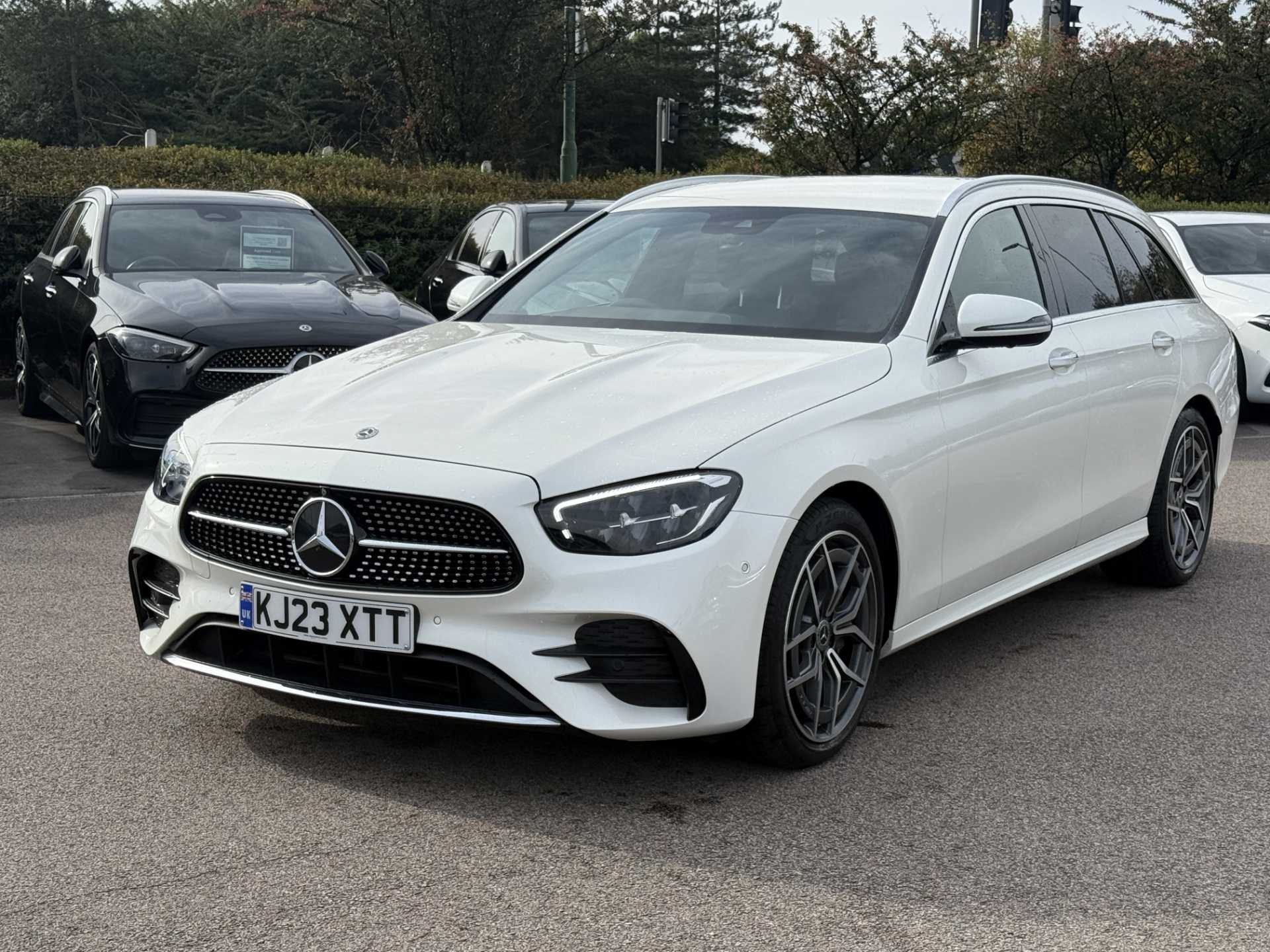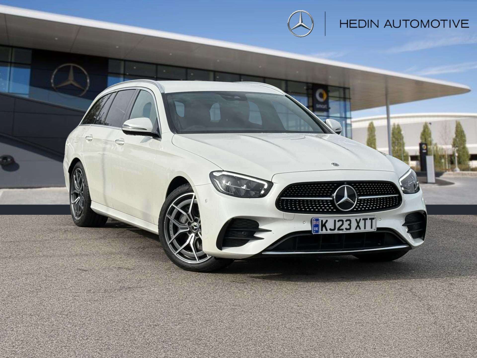 This is a used 2023 Mercedes-Benz E Class Estate in the E200 AMG Line Premium 5dr 9G-Tronic trim. Presented in Manufaktur diamond white, it offers a sleek and sophisticated appearance.