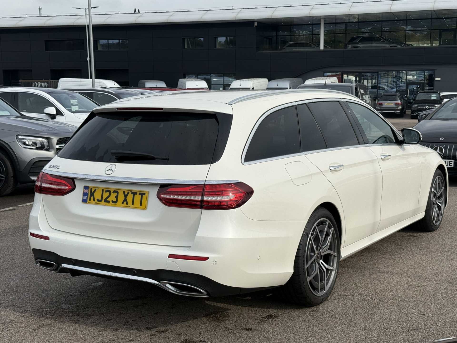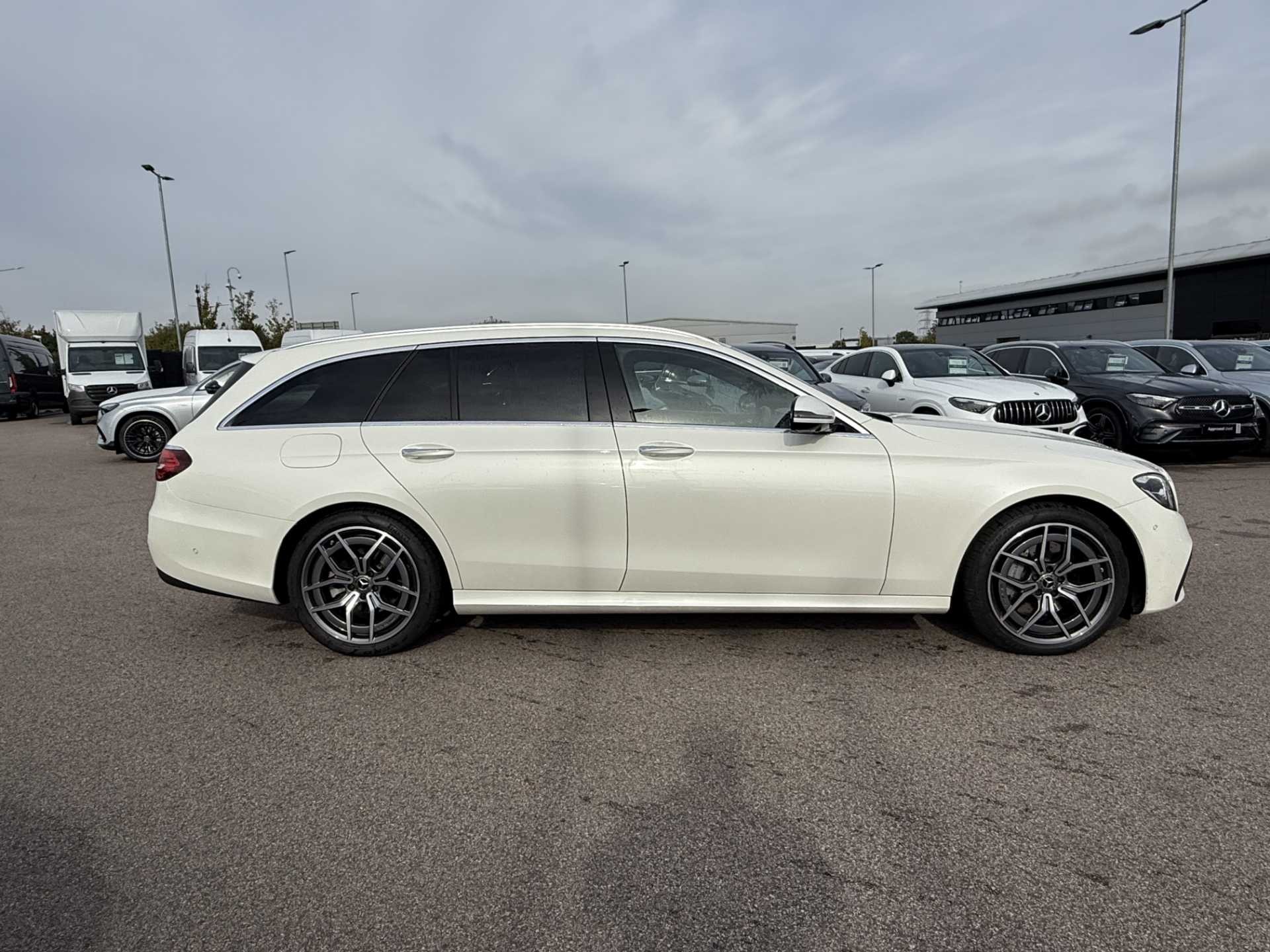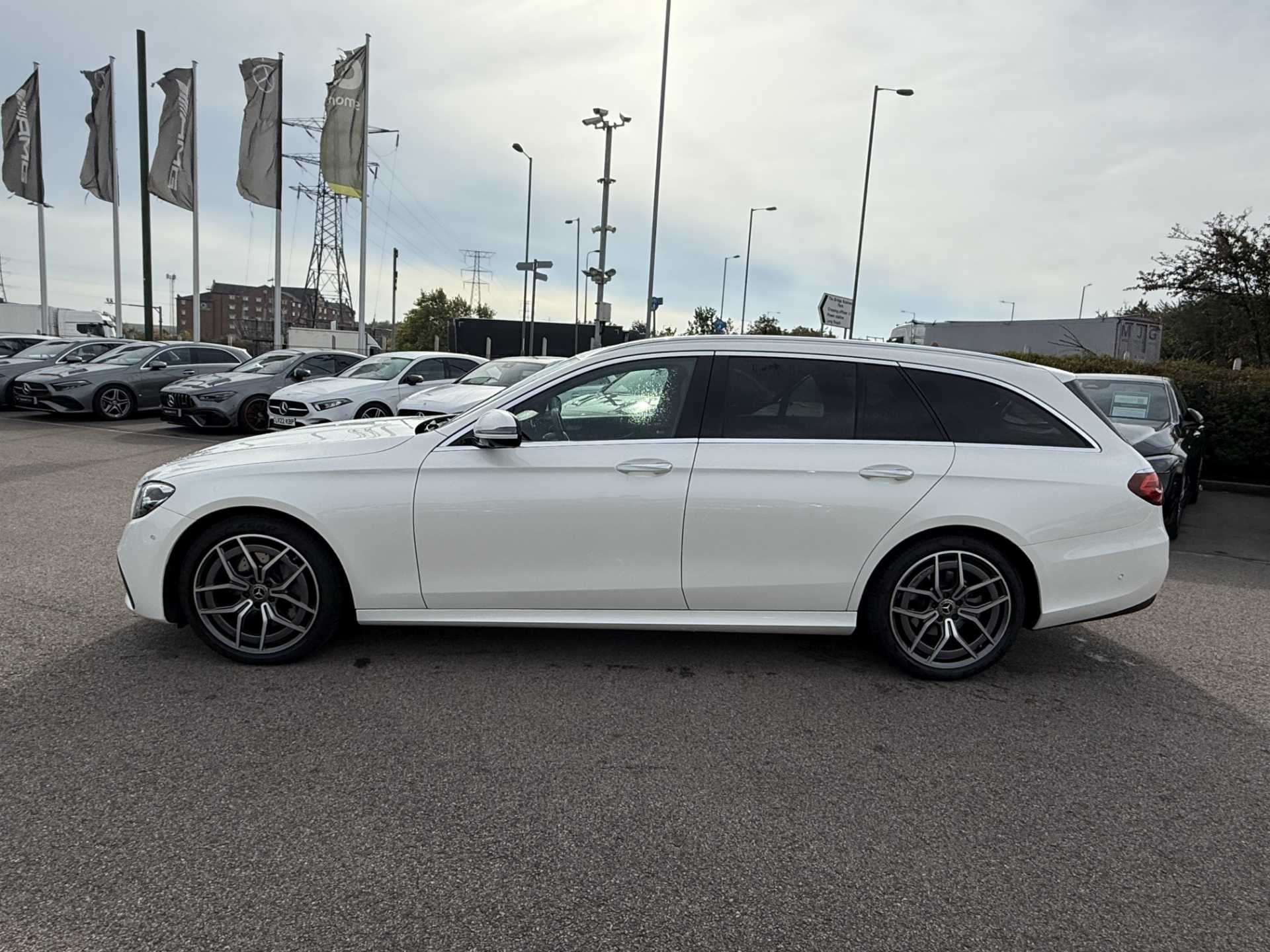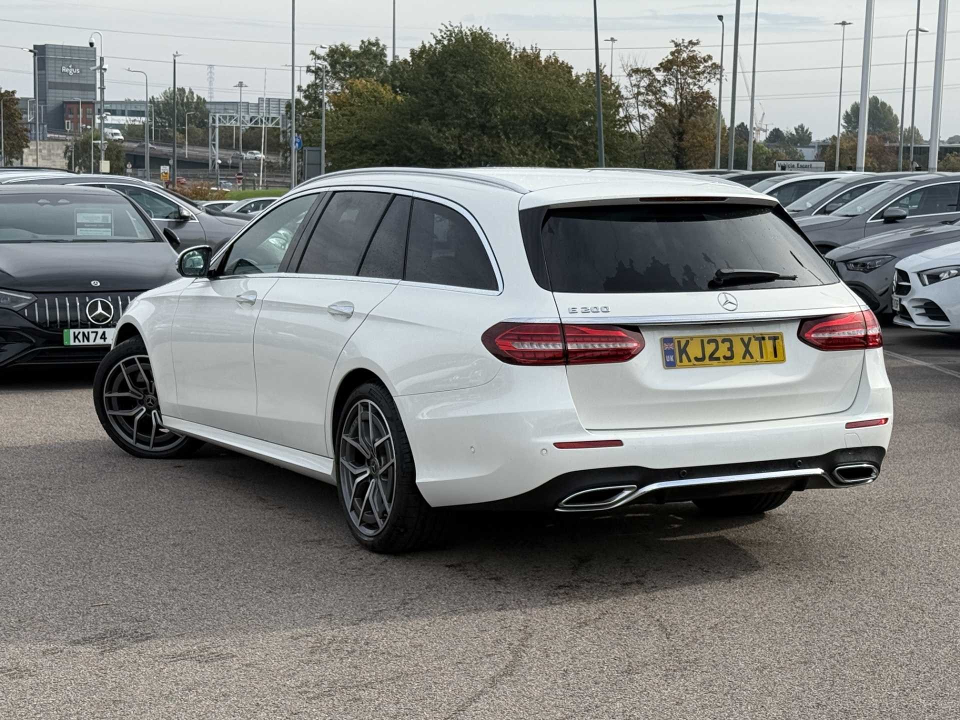 This is a used 2023 Mercedes-Benz E Class Estate in the E200 AMG Line Premium 5dr 9G-Tronic trim. Presented in Manufaktur diamond white, it offers a sleek and sophisticated appearance.