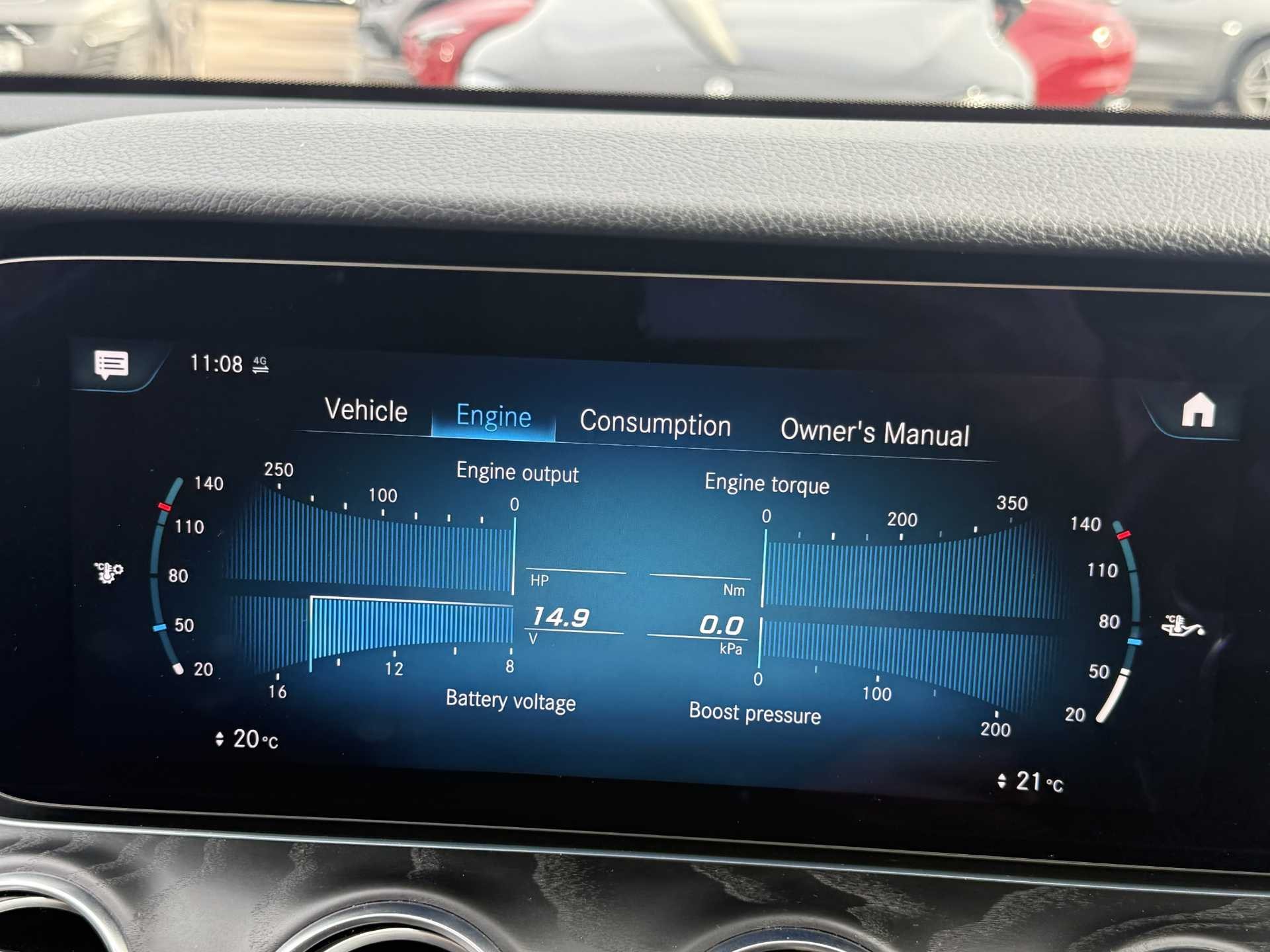 - Trip computer in multifunction display showing current fuel consumption