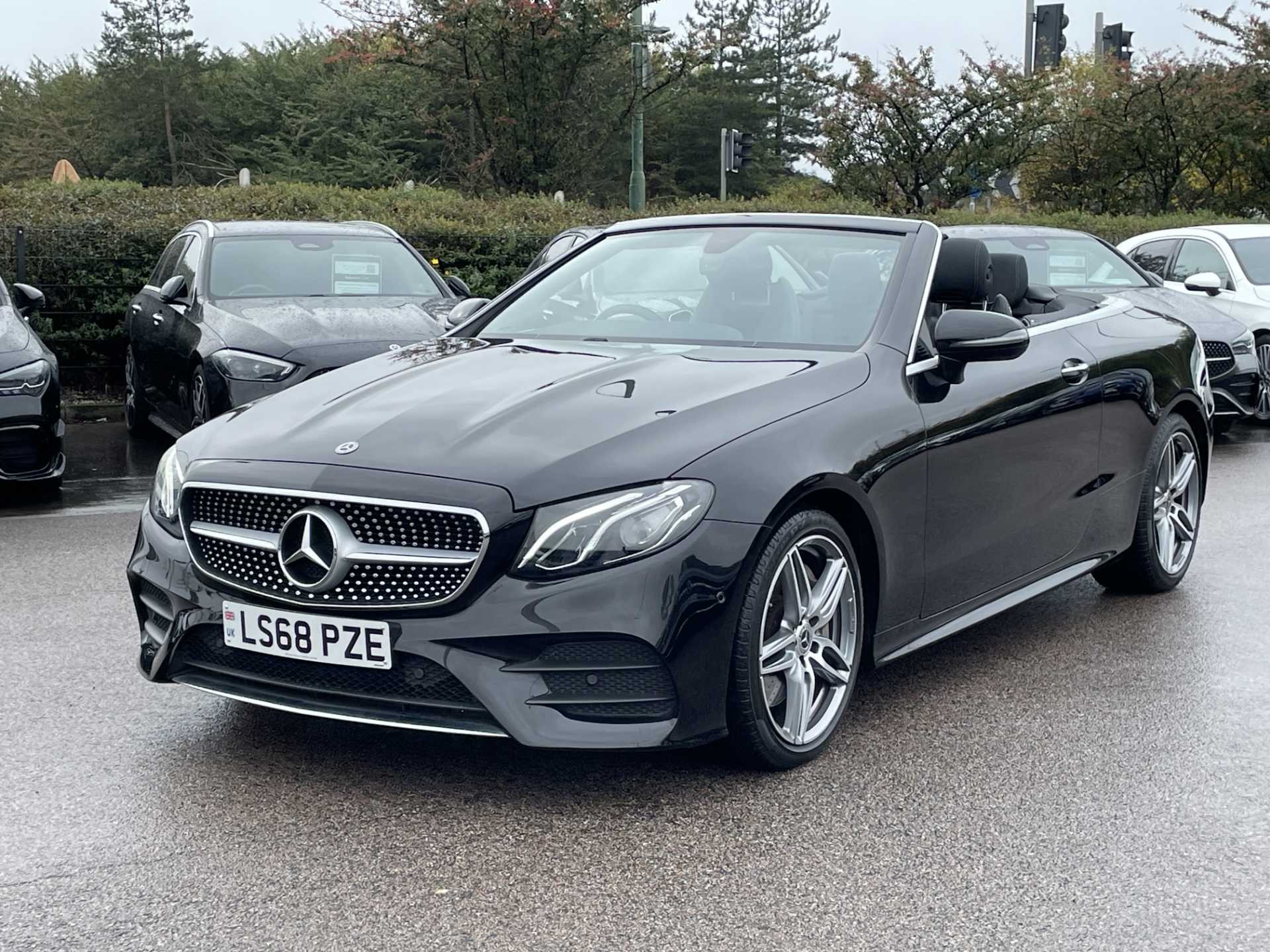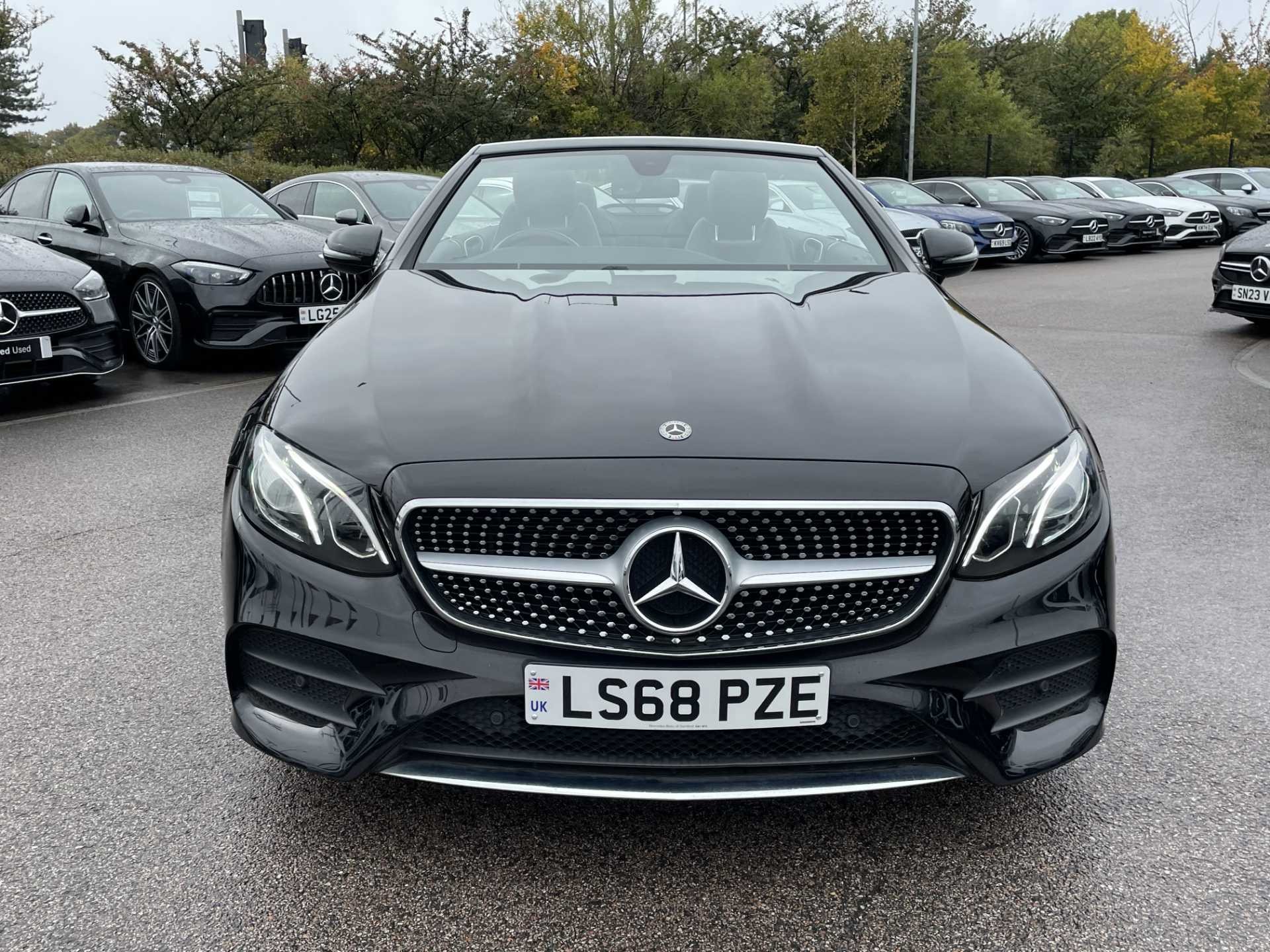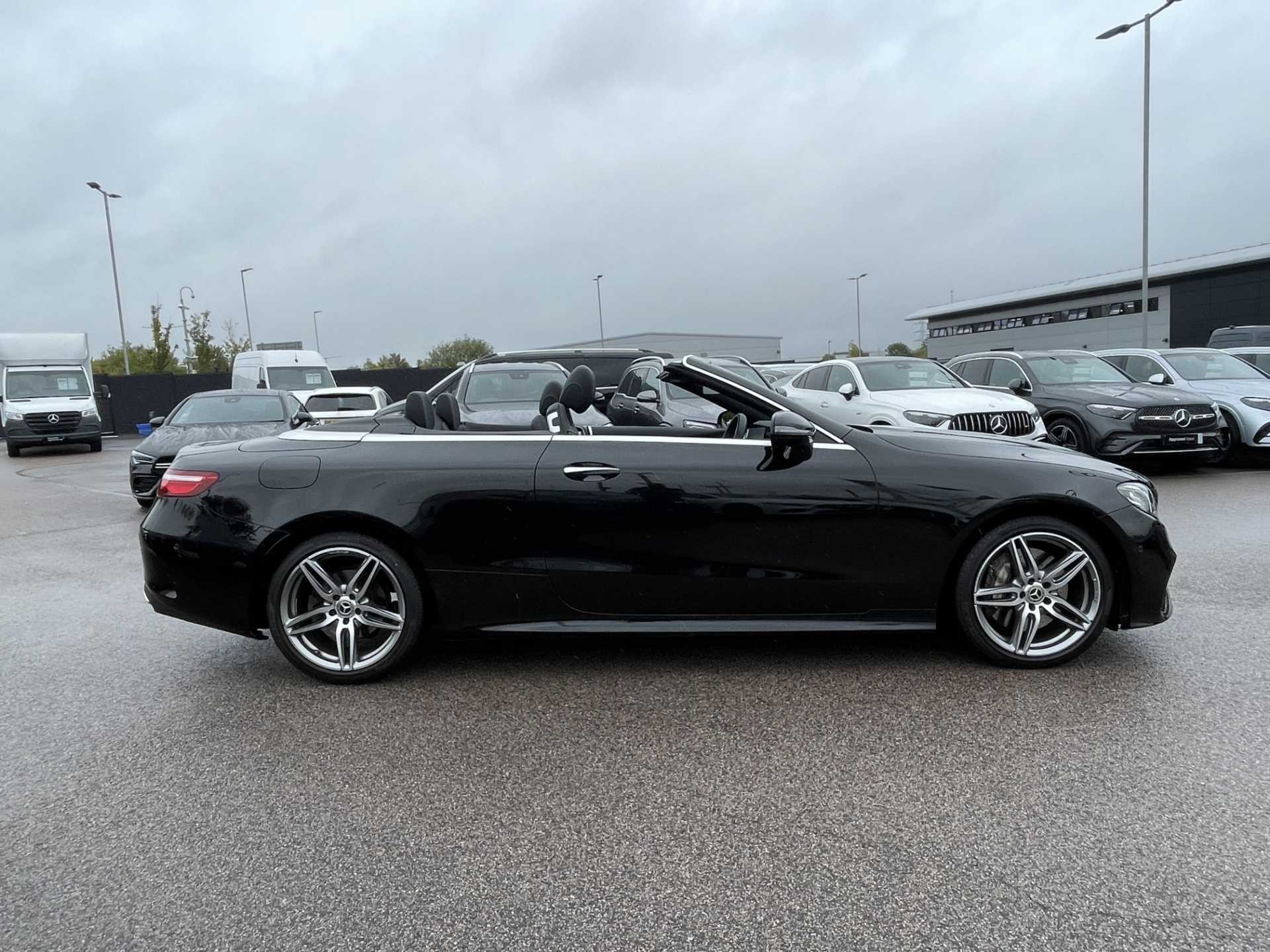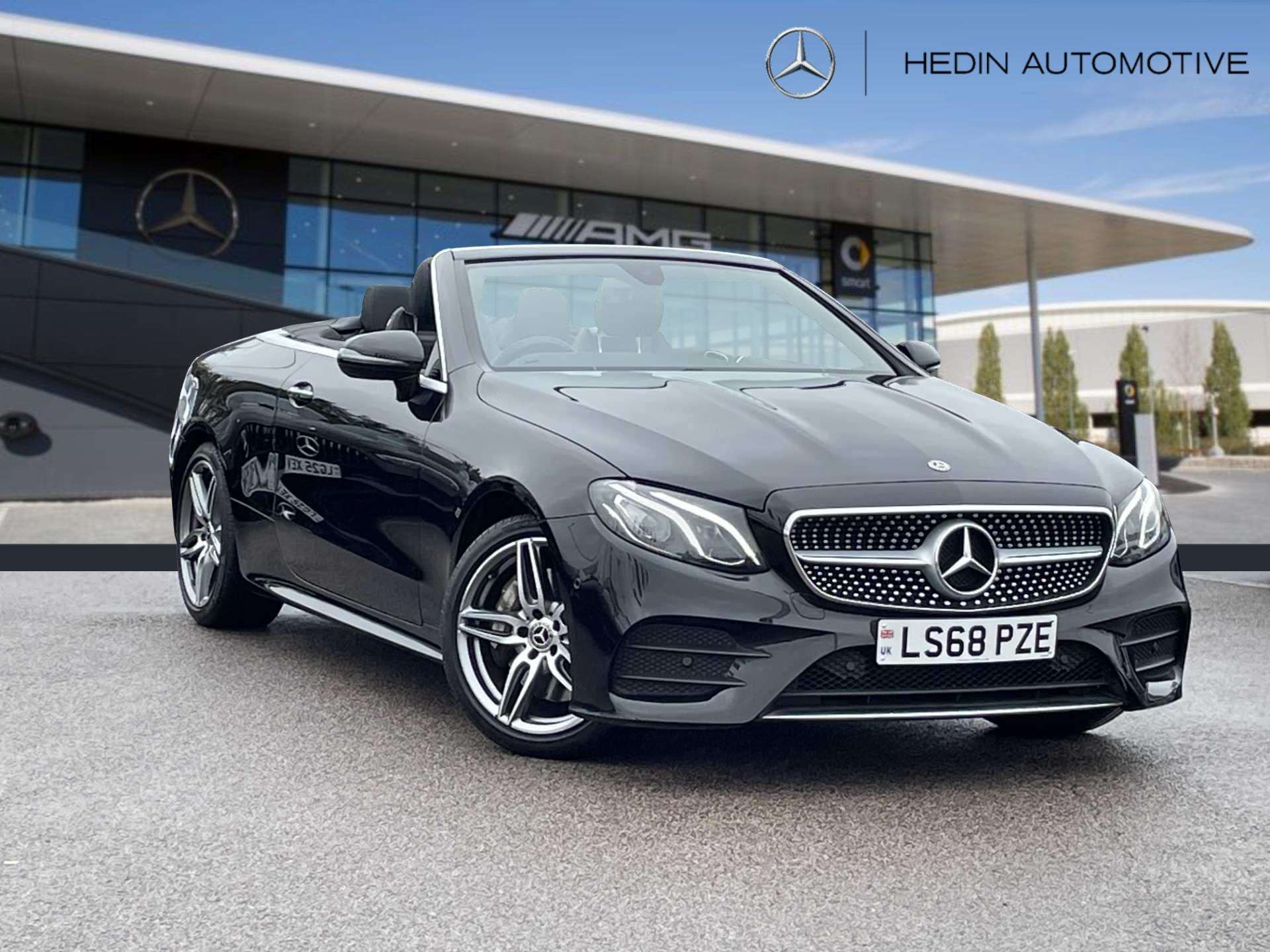 This is a used 2018 Mercedes-Benz E-Class Cabriolet in Obsidian Black. The vehicle features an automatic transmission and is powered by a petrol engine. It offers a sophisticated interior with ARTICO man-made leather and black microfibre DINAMICA trim. The E-Class Cabriolet provides the combination of luxurious comfort and the open-top driving experience. The CO2 emissions are 181 g/km, aligning with the WLTP standard.