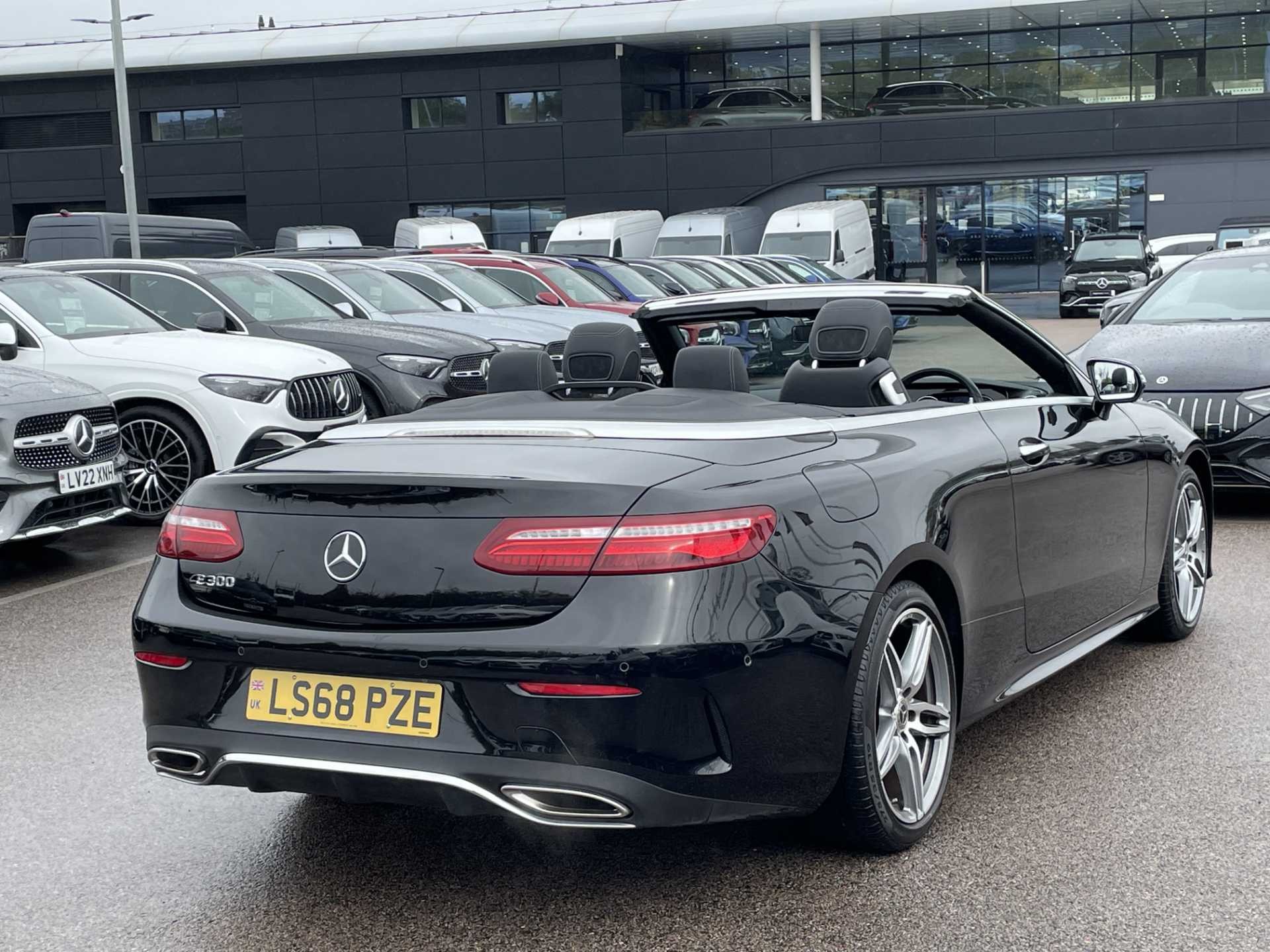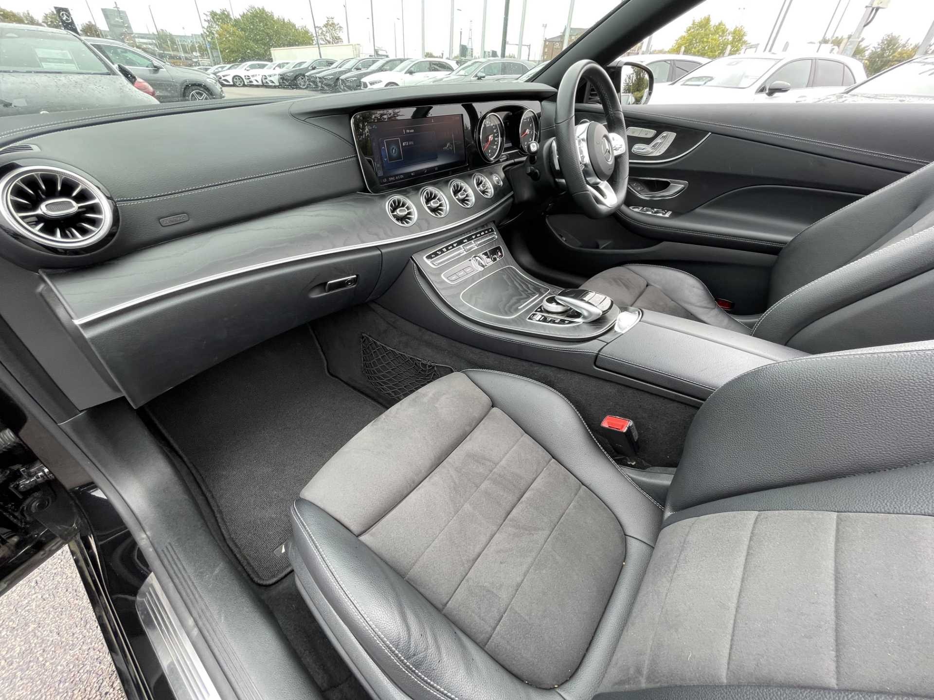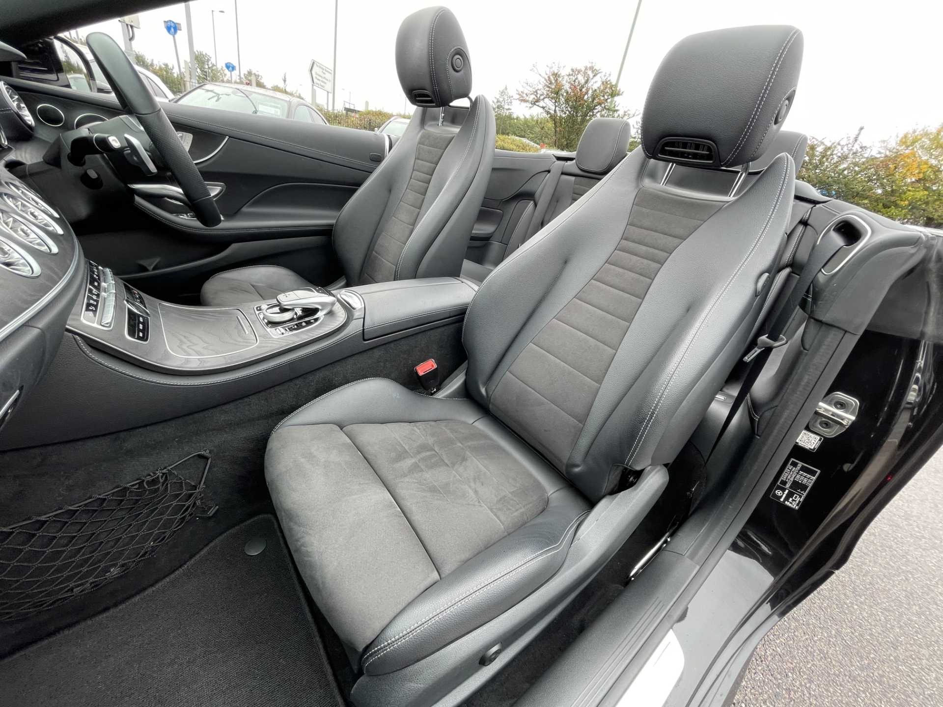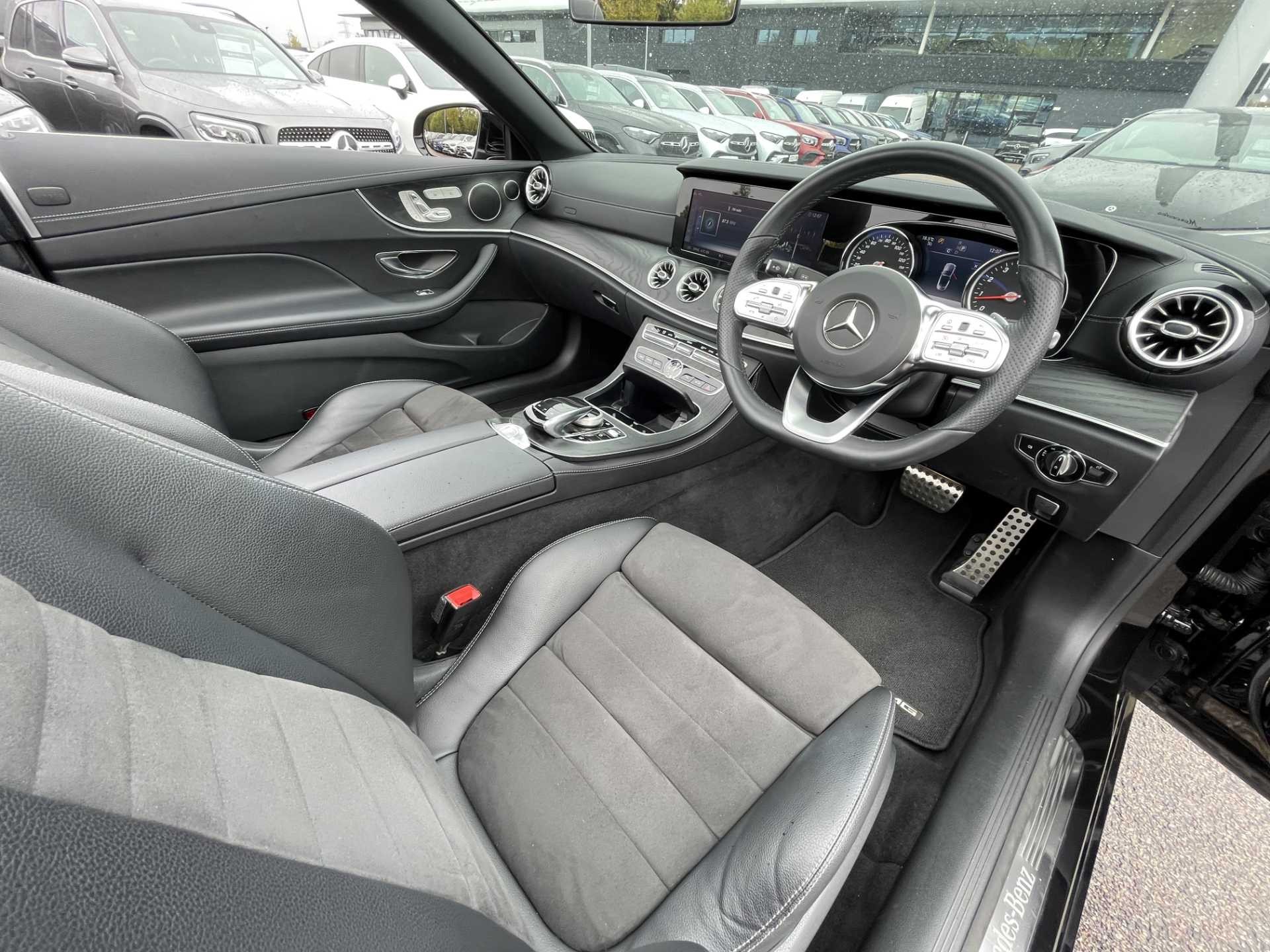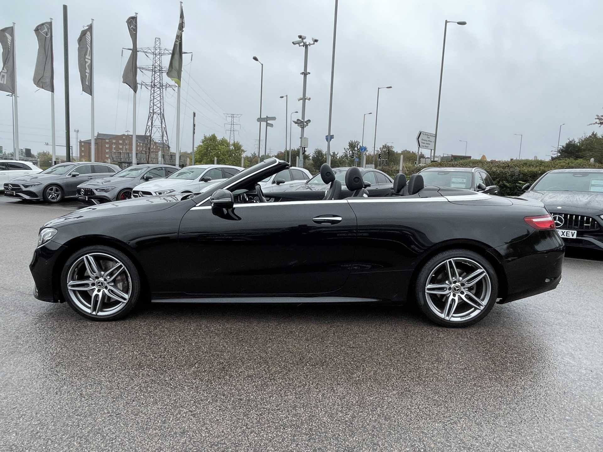 This is a used 2018 Mercedes-Benz E-Class Cabriolet in Obsidian Black. The vehicle features an automatic transmission and is powered by a petrol engine. It offers a sophisticated interior with ARTICO man-made leather and black microfibre DINAMICA trim. The E-Class Cabriolet provides the combination of luxurious comfort and the open-top driving experience. The CO2 emissions are 181 g/km, aligning with the WLTP standard.