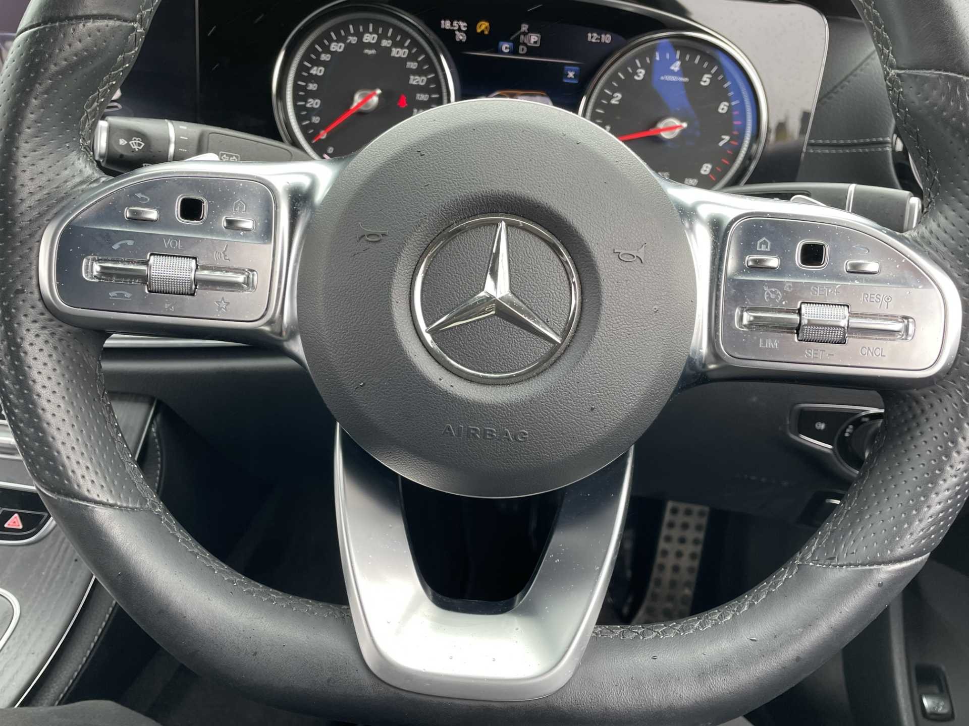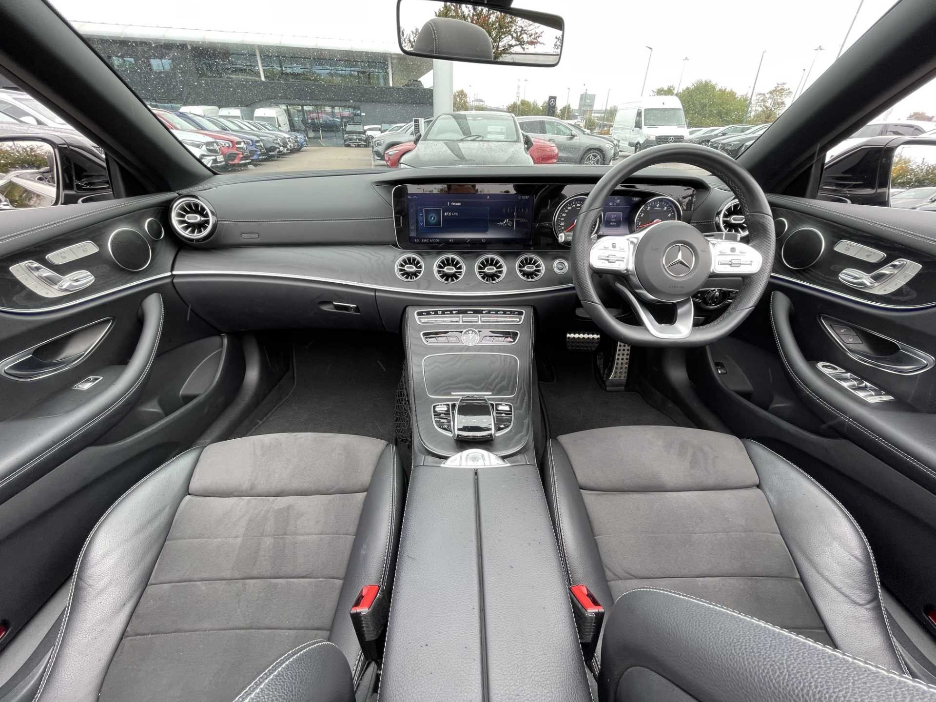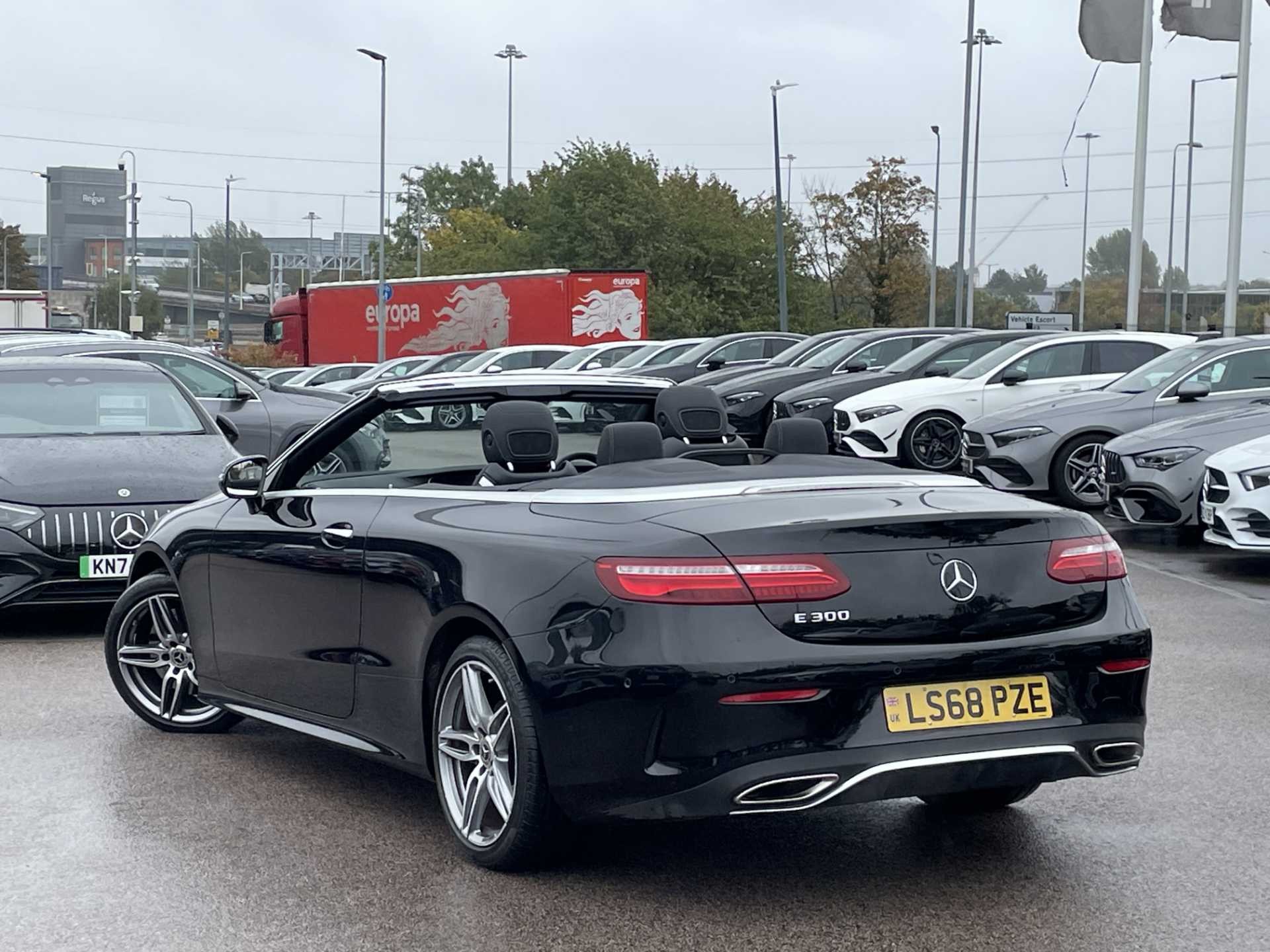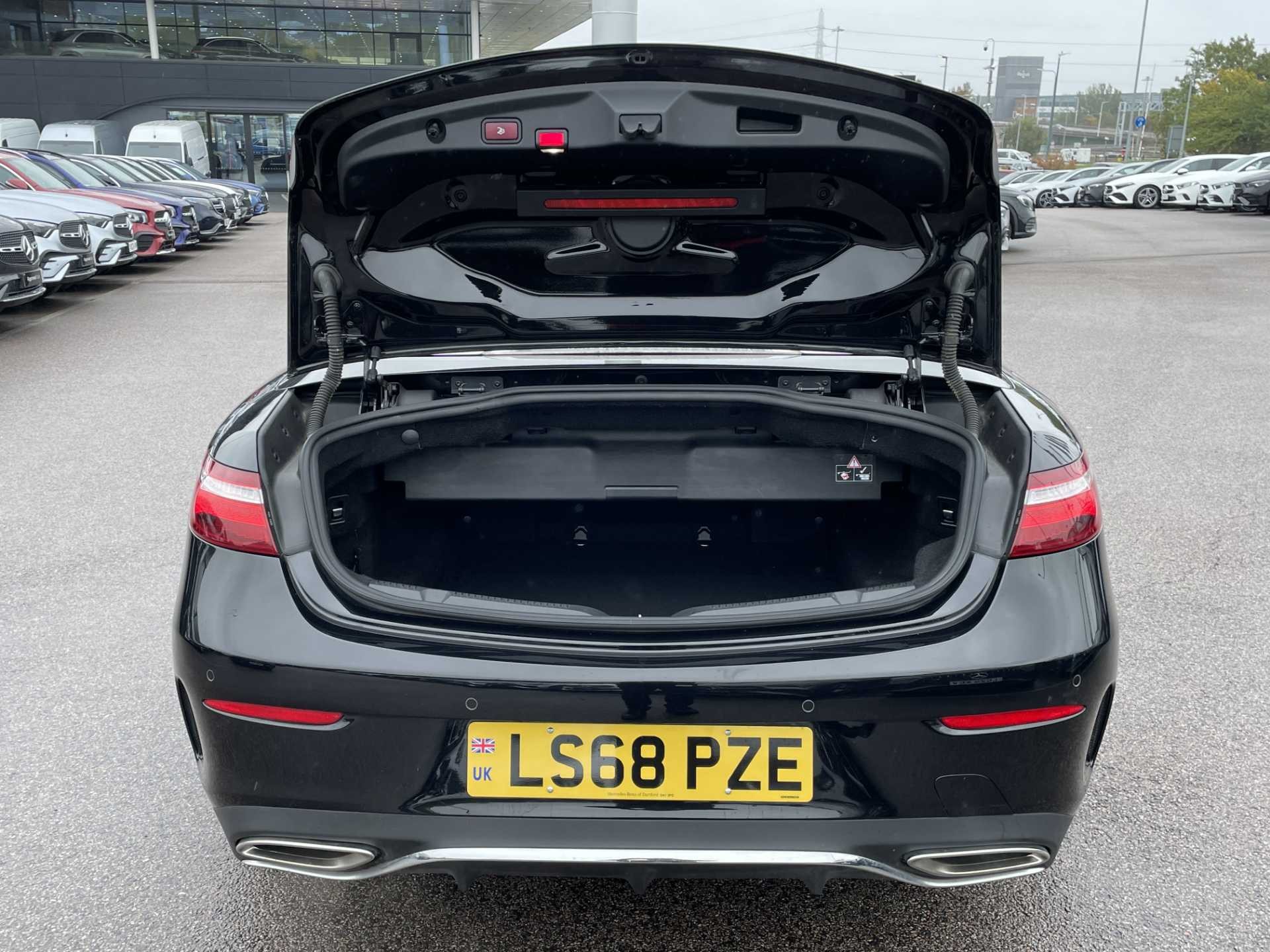 This is a used 2018 Mercedes-Benz E-Class Cabriolet in Obsidian Black. The vehicle features an automatic transmission and is powered by a petrol engine. It offers a sophisticated interior with ARTICO man-made leather and black microfibre DINAMICA trim. The E-Class Cabriolet provides the combination of luxurious comfort and the open-top driving experience. The CO2 emissions are 181 g/km, aligning with the WLTP standard.