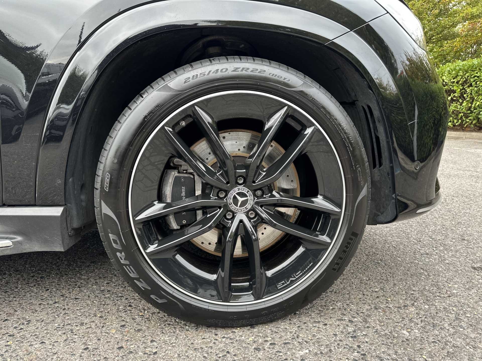- Perforated front brake discs and brake calipers with Mercedes-Benz lettering