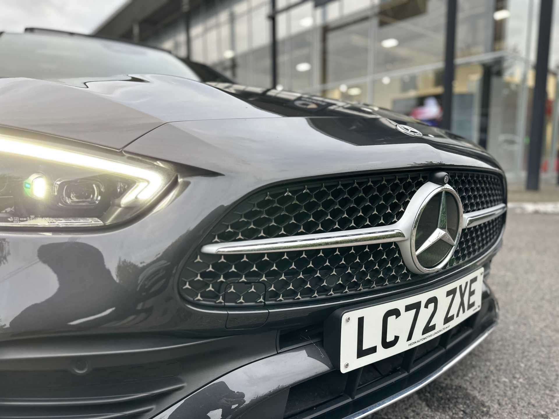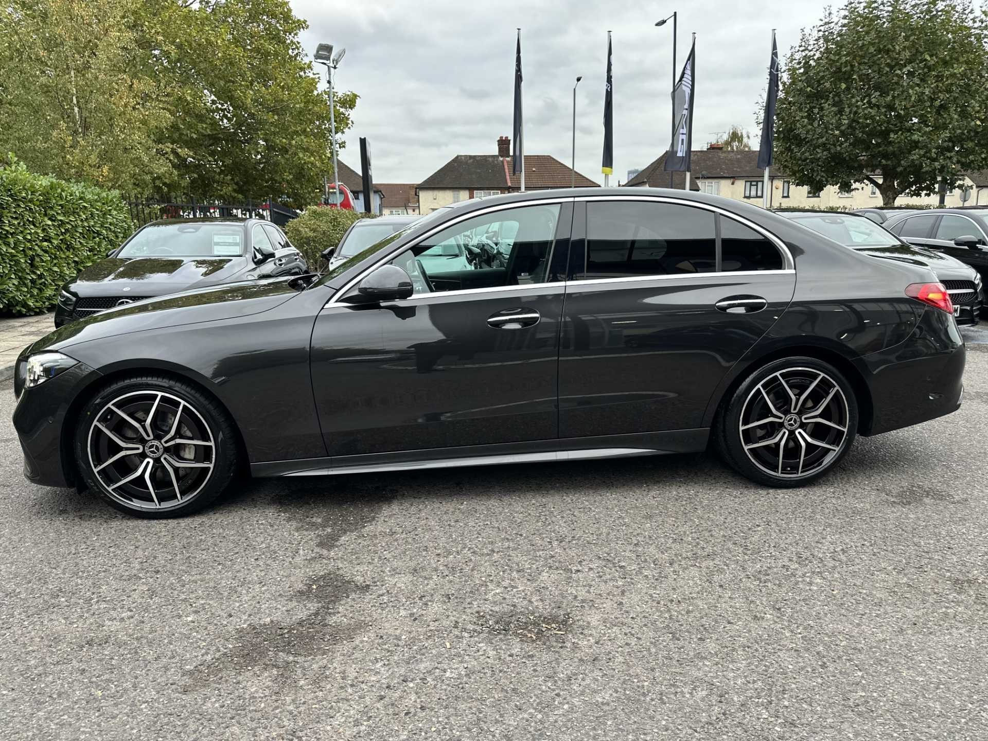 This is a used 2025 Mercedes-Benz C Class in Graphite Grey Metallic. Featuring an automatic transmission, this saloon model offers a premium feel with its black leather interior trim. The car maintains a low CO2 emission rating of 159g/km, adhering to modern efficiency standards. Ideal for personal use, it combines Mercedes-Benz's renowned craftsmanship with essential comfort and performance features.