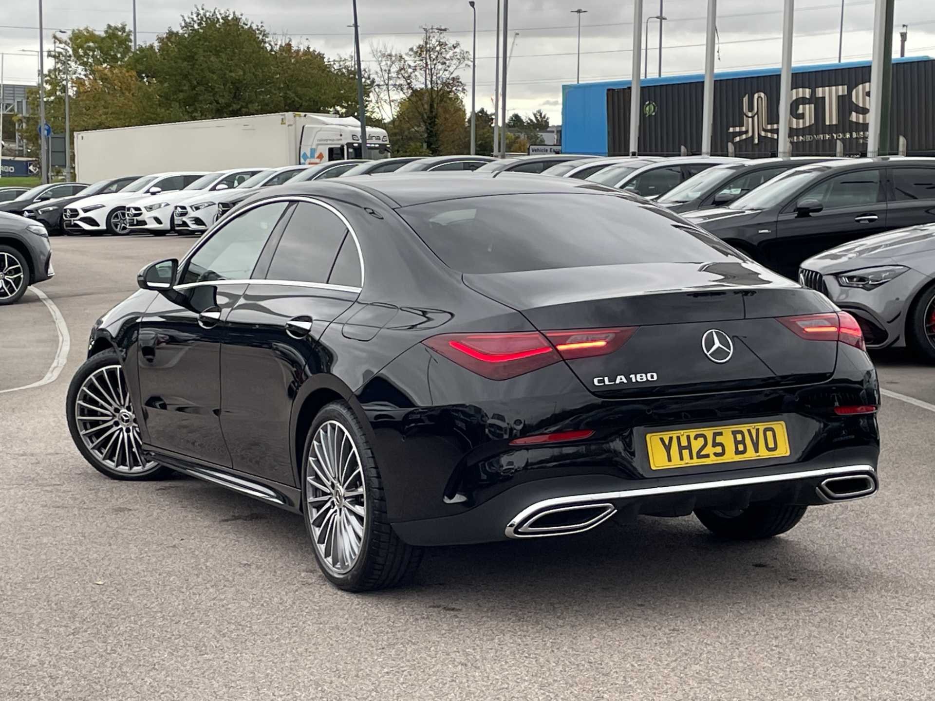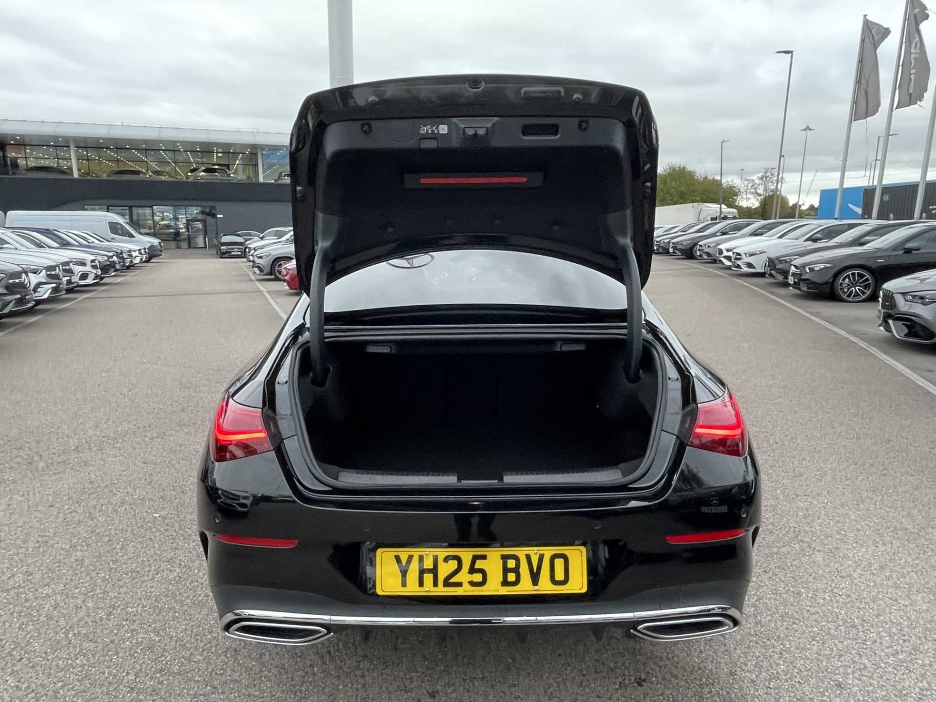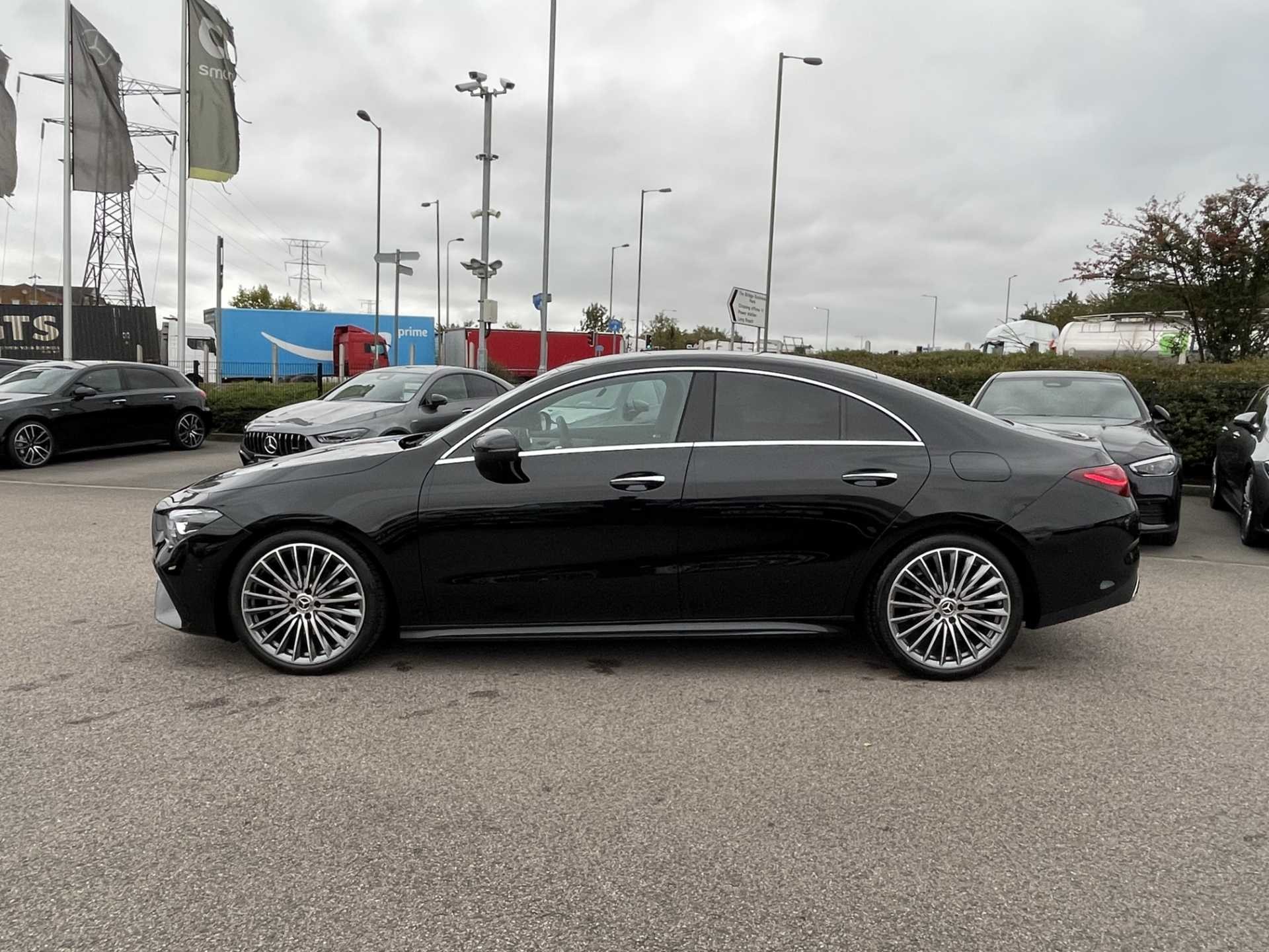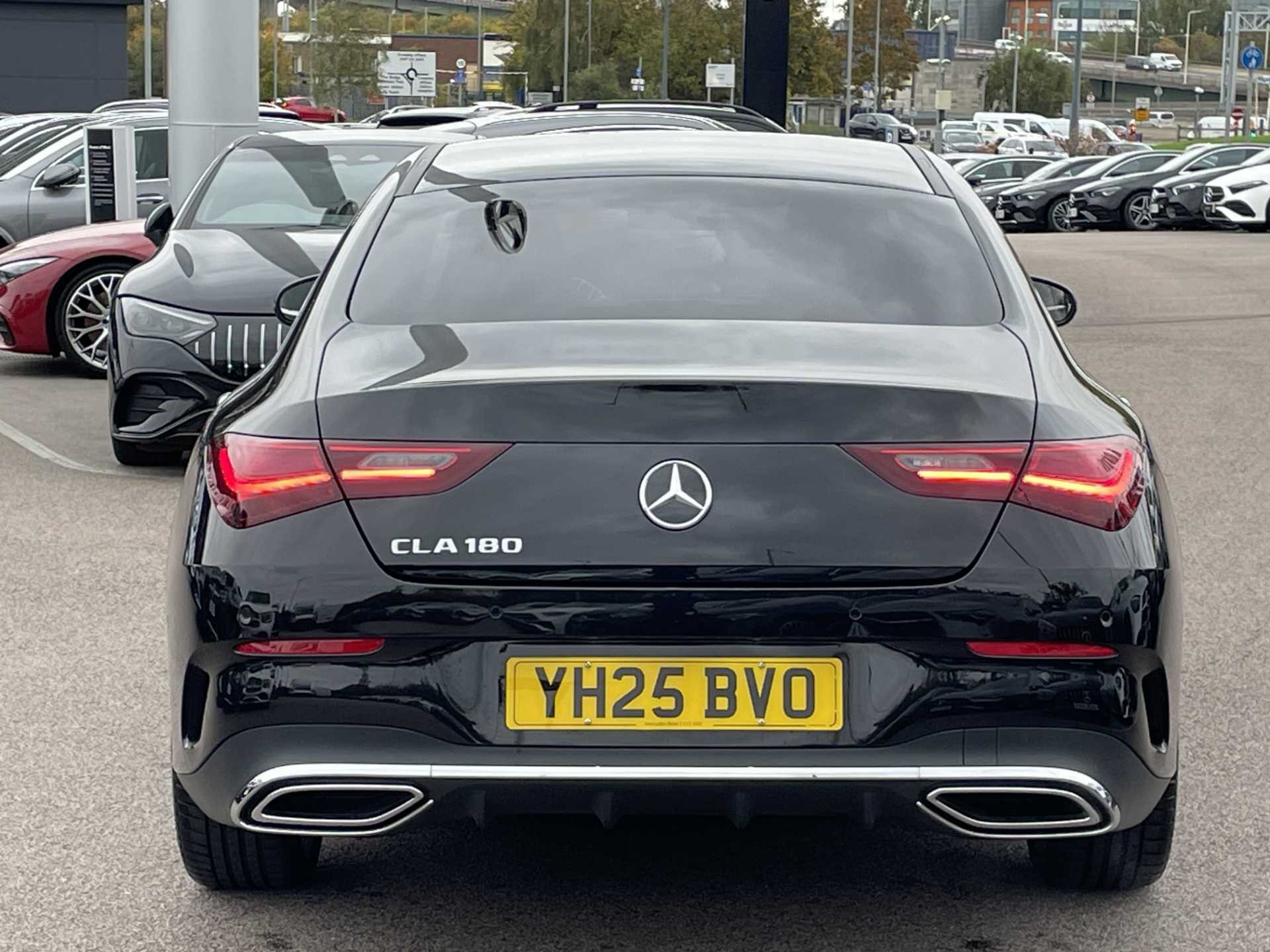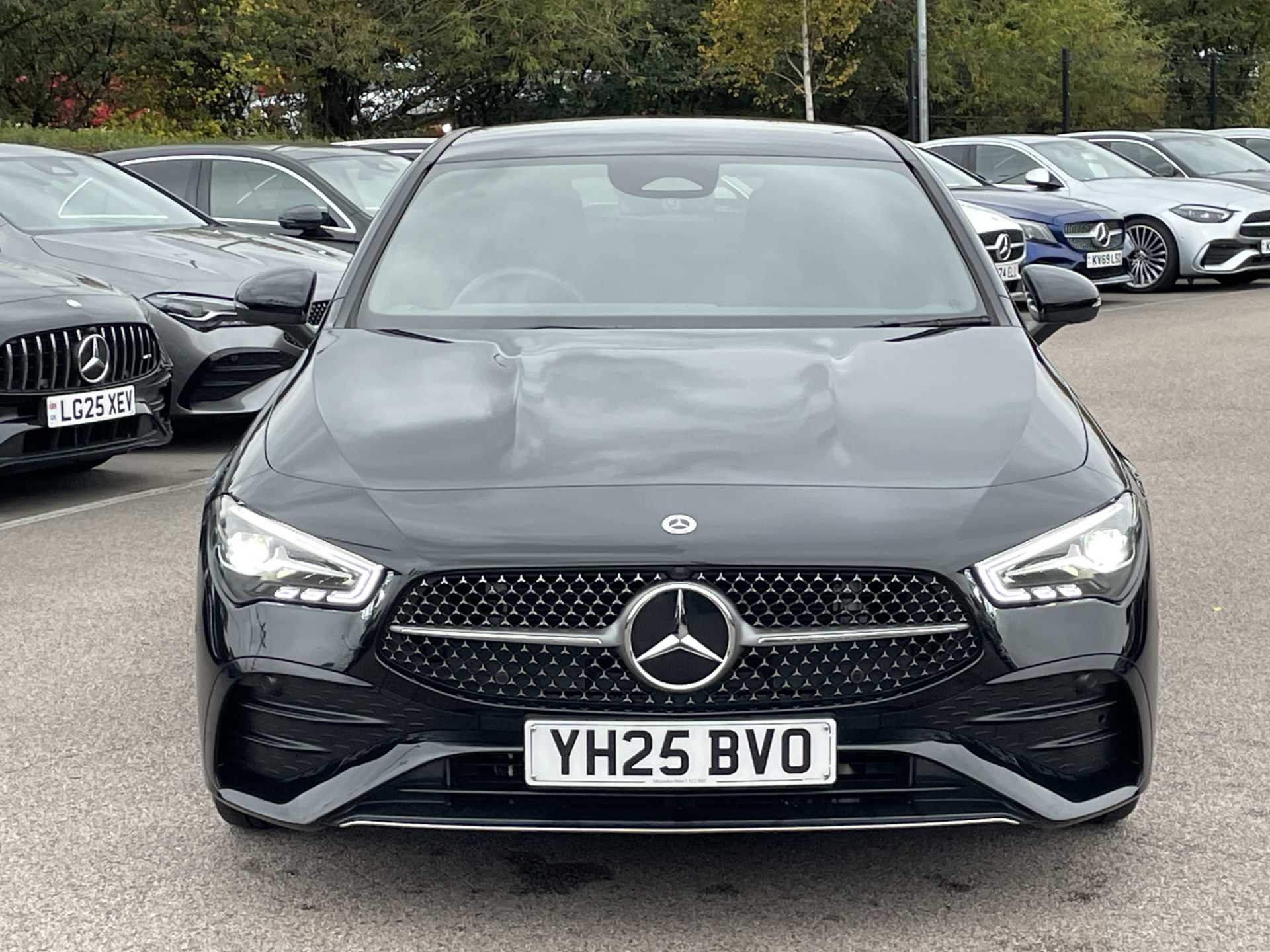 This listing is for a used 2025 Mercedes-Benz CLA Coupe finished in Cosmos Black. The vehicle features an automatic transmission and an interior with ARTICO man-made leather and DINAMICA microfibre upholstery. It is classified as a personal car and has a CO2 emission rating of 143 g/km (based on WLTP standards).