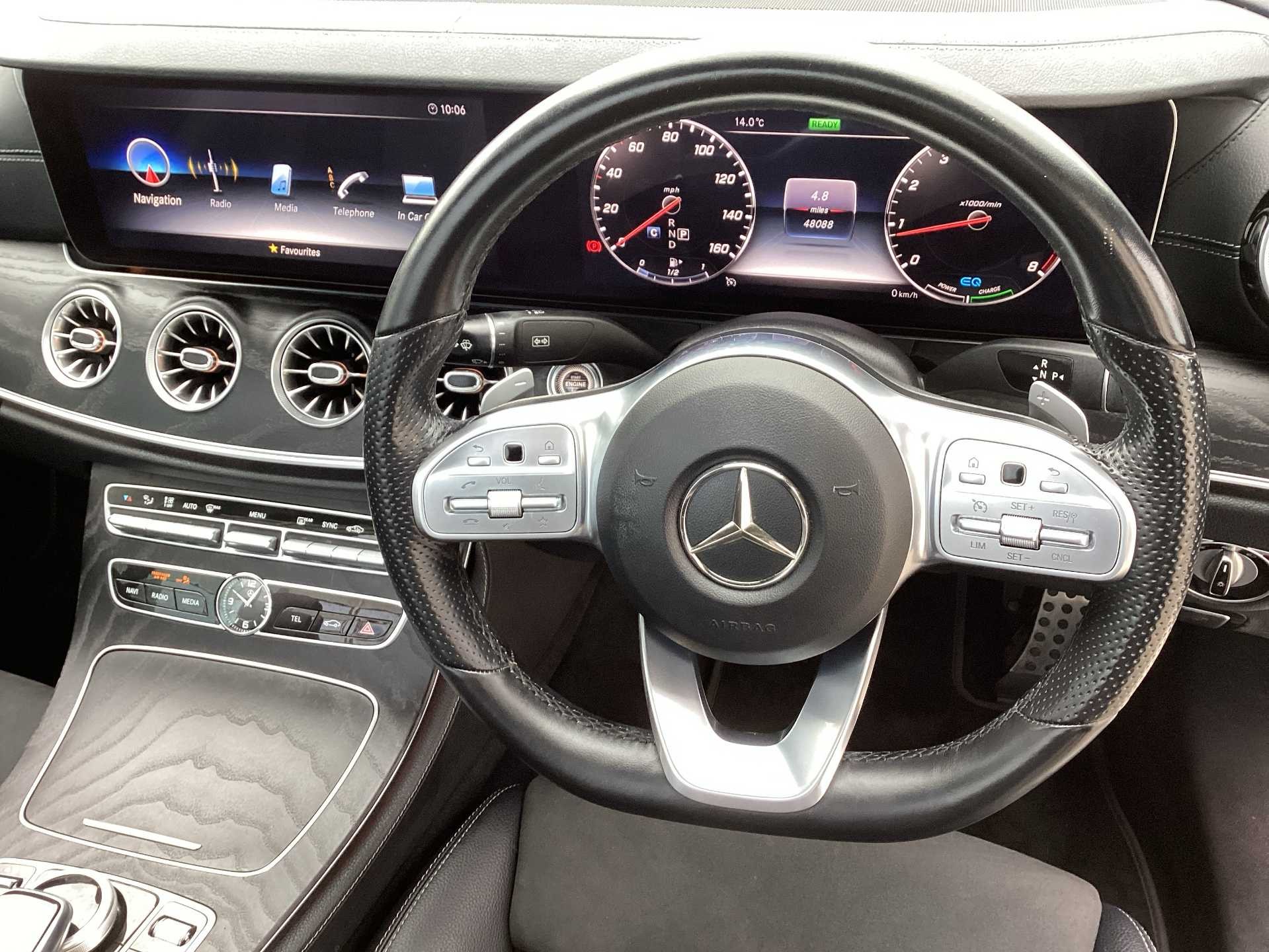 - 3-spoke flat bottom multifunction AMG steering wheel with Touch Control buttons, trimmed in black nappa leather