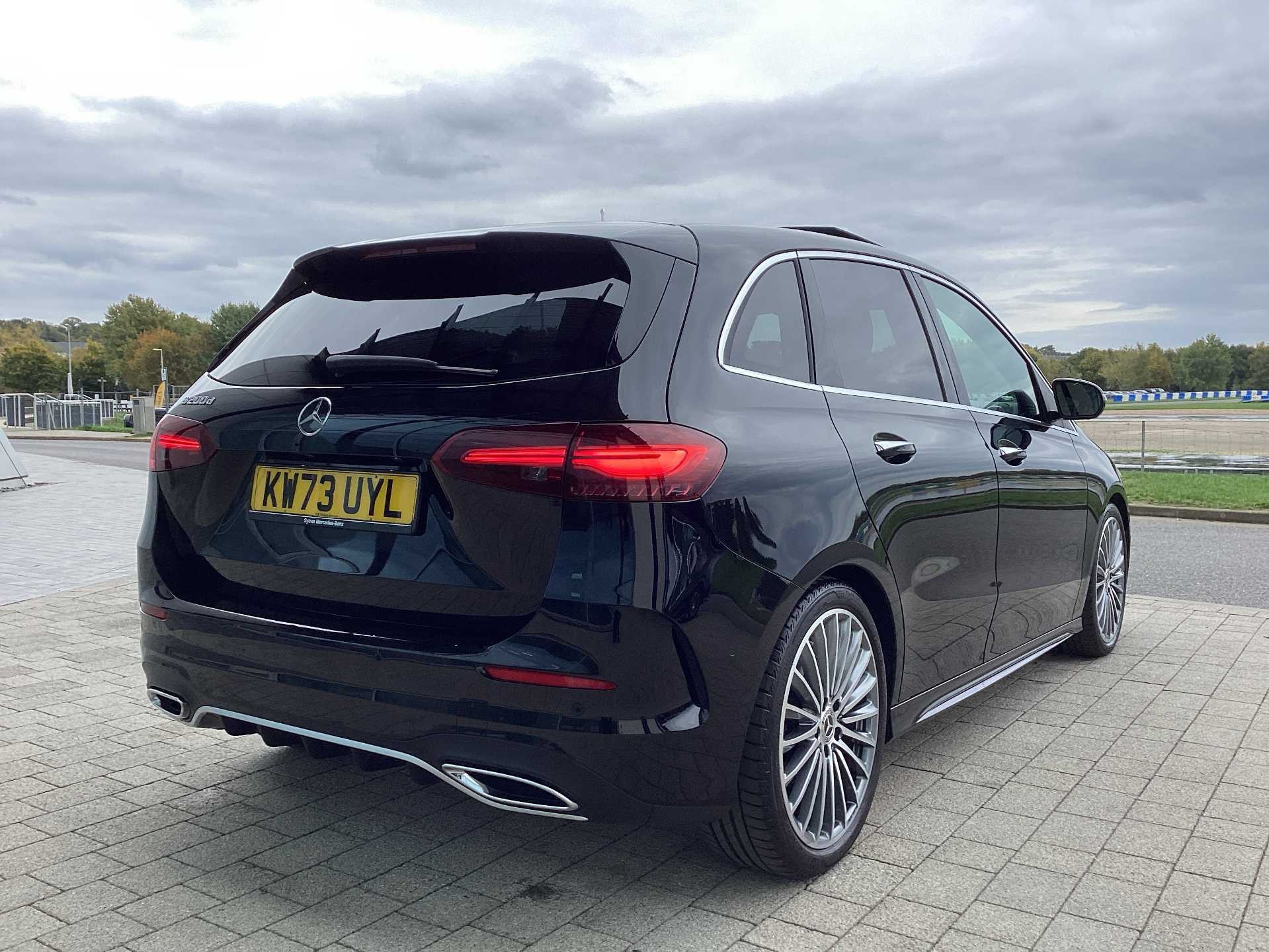 This is a 2023 Mercedes-Benz B Class B200d AMG Line Premium Plus Hatchback finished in Cosmos Black. With five doors and five seats, this vehicle provides ample space for passengers and cargo, making it a practical option for families or those needing additional room.