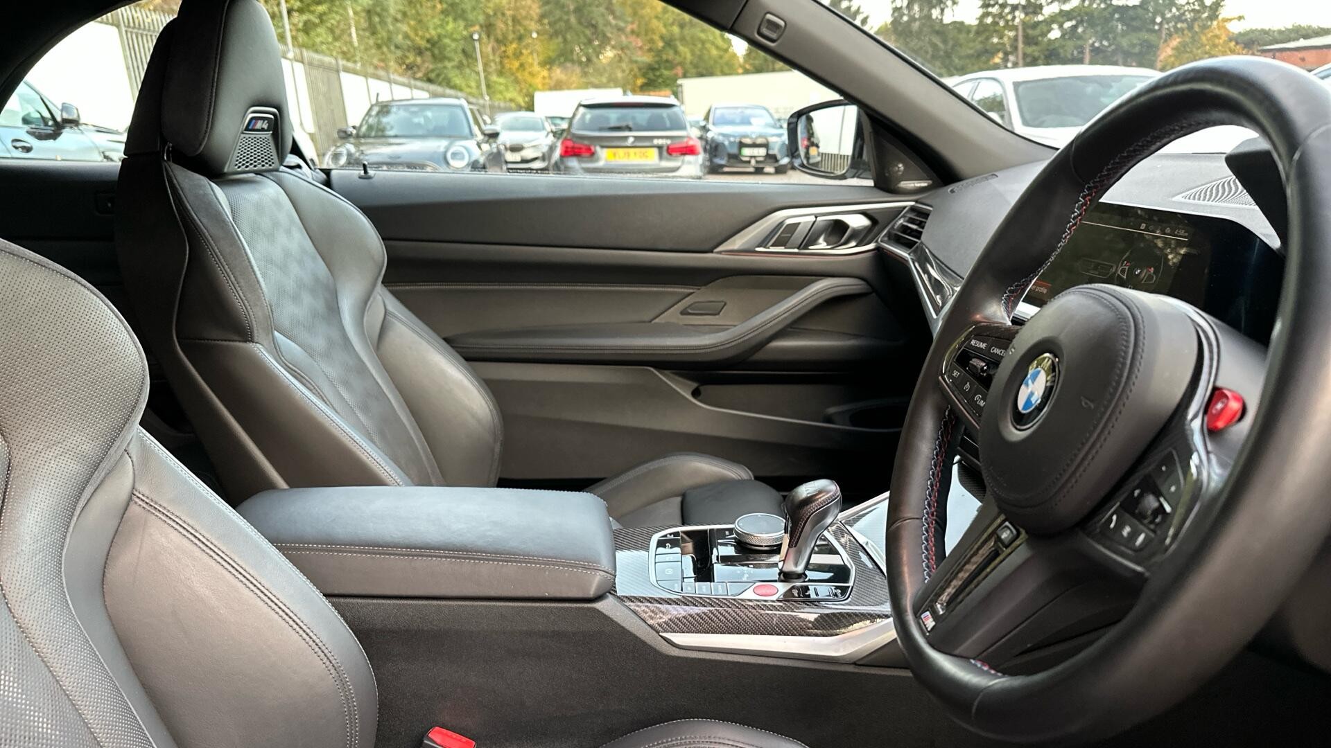 This 2022 BMW M4 BiTurbo Competition is a remarkable example, having had only one owner from new and boasting a full service history, with its last service completed on 22 August 2024 at 16,655 miles. This impressive performance car features a potent 3.0L petrol engine, a sophisticated four wheel drive system, and meets Euro 6 emissions standards. It comes with a 12 month warranty and a 12 month MOT for your peace of mind. Notable features include a heated steering wheel, electric memory seats, a Head Up Display for convenient information access, and a comprehensive Driving Assistant package with Blind Spot Assistance. The Parking Assistant, complete with front and rear cameras and sensors, makes manoeuvring effortless.