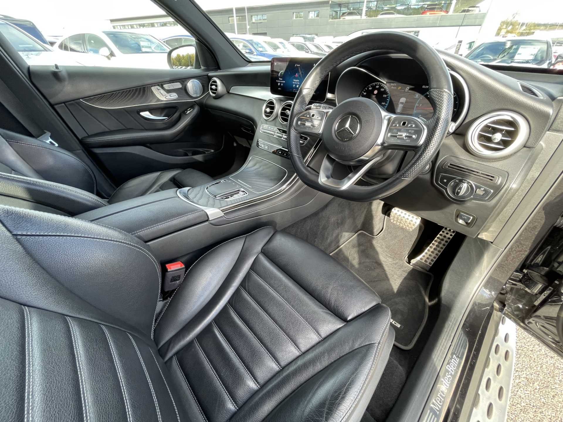 The GLC is designed with practicality and comfort in mind, providing five seats and five doors. The car includes premium interior trim, leather upholstery, and advanced technology features such as a 10.25-inch media display with sat-nav, a 12.3-inch digital instrument cluster, a 360-degree camera system, and smartphone integration with Apple CarPlay and Android Auto.