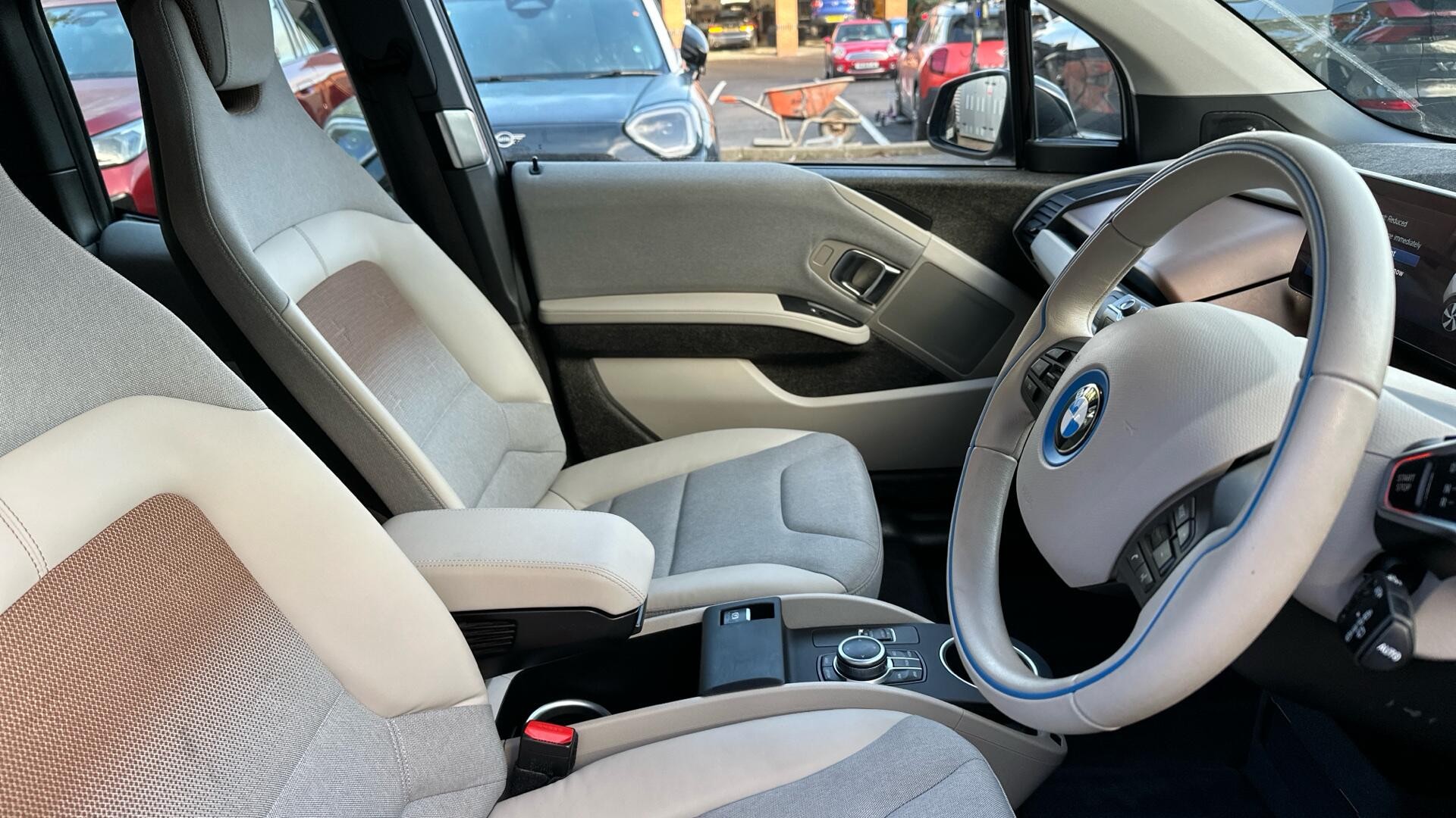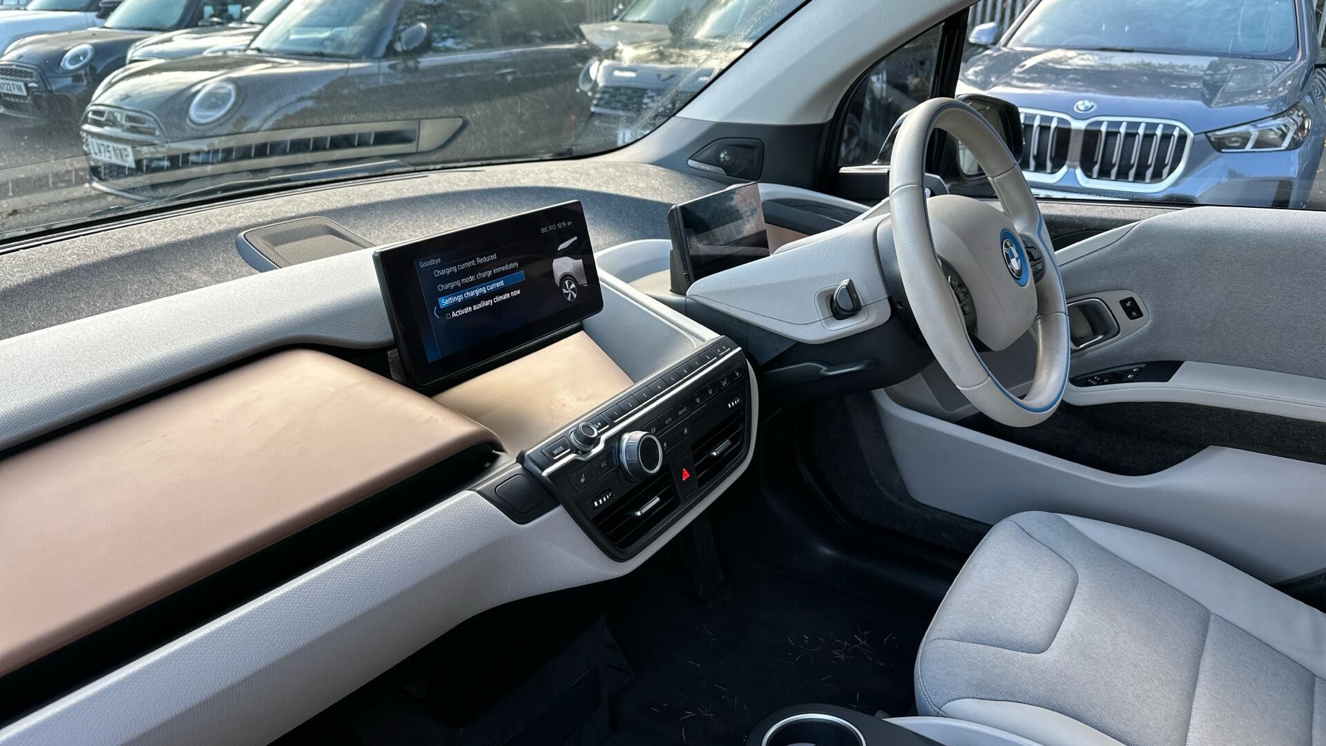 This 2022 BMW i3 is a BMW manufacturer approved electric vehicle with a full dealership service history, having only had one owner and boasting low mileage for its age. This exceptional example comes with a 12 month warranty and a 12 month MOT provided on purchase, ensuring peace of mind. It features a 42 kWh battery offering a maximum range of 190 miles when new, and can be fully charged at home in approximately 5 hours 15 minutes using a 7kW charger. For faster charging, it can reach 80% capacity in just 40 minutes at a public charging station. Notable features include the i3 Pro Pack, Harman Kardon Surround Audio Sound System, Online Entertainment, and stylish 20in i BiColour Light Double Spoke Alloy Wheels. The interior is finished in the desirable Interior World Loft with Electronic Cloth Sensatec Synthetic Leather in Carum Spice Grey with Brown Highlight.