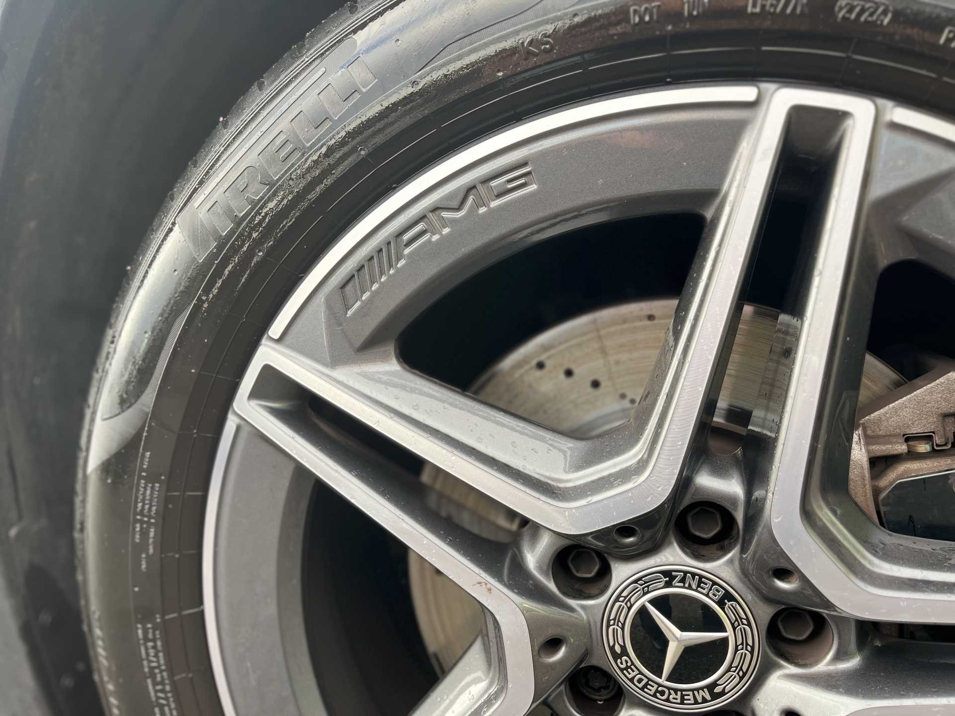 - AMG rear apron with visible tailpipe trim and chrome trim element