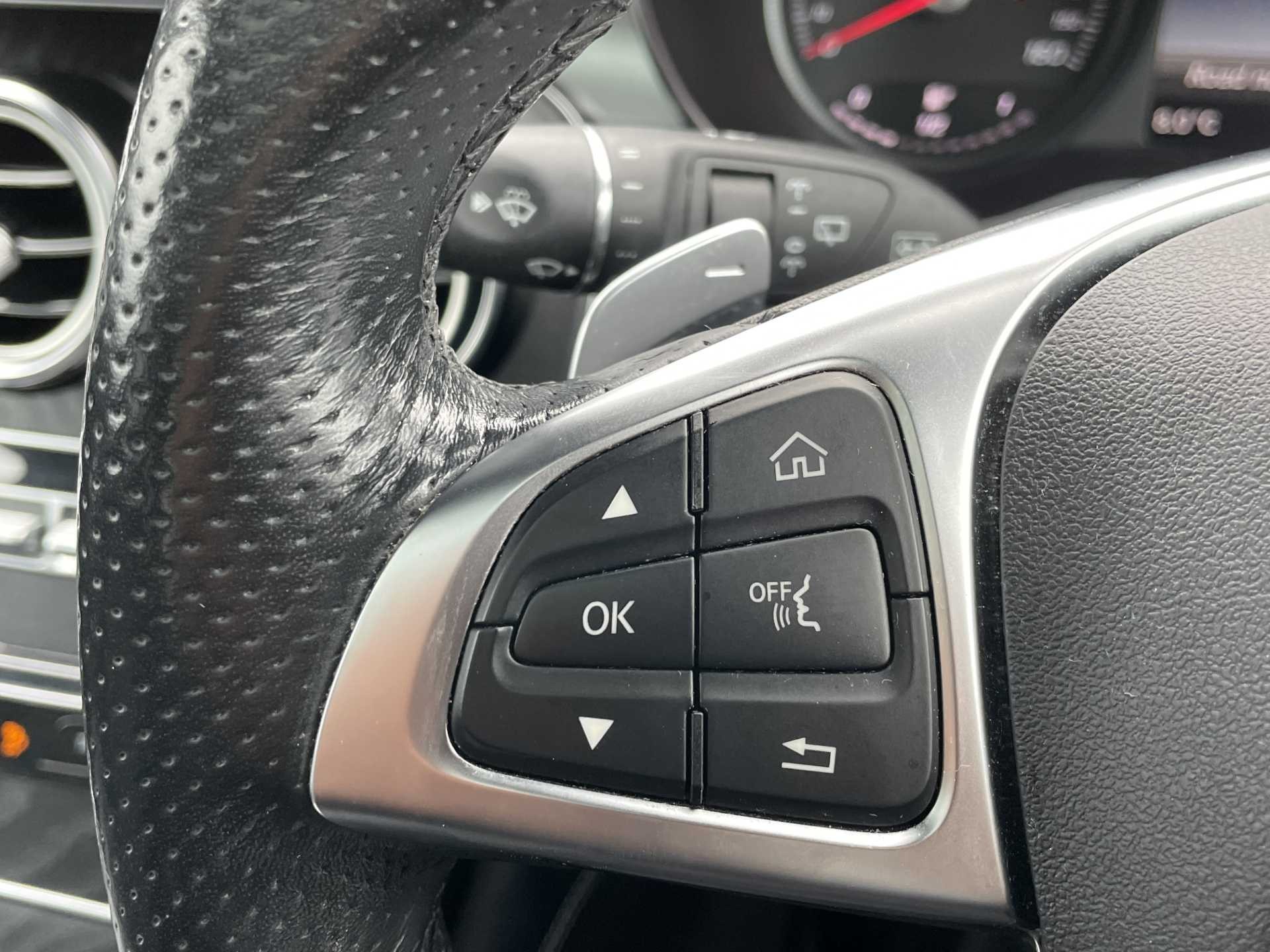 - 3 spoke flat bottom multi-function AMG steering wheel in black nappa leather with chrome inserts