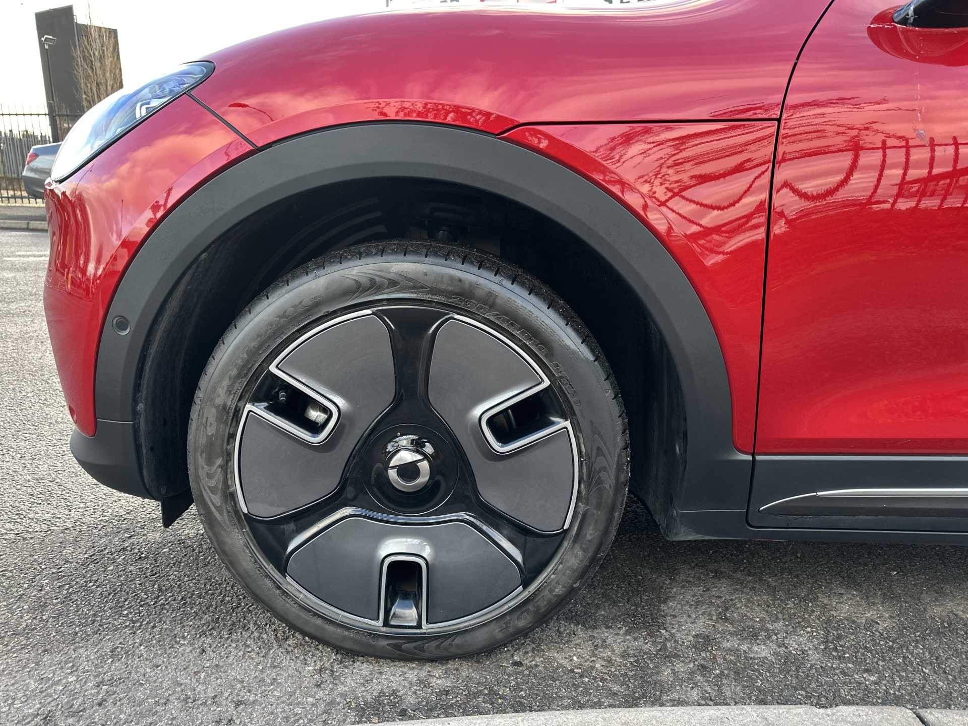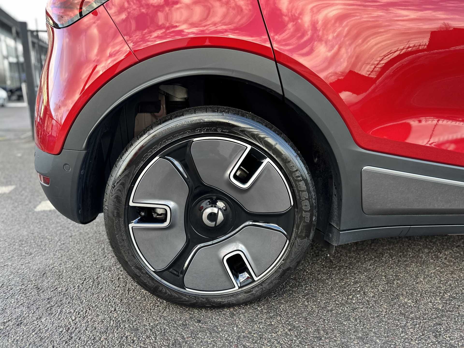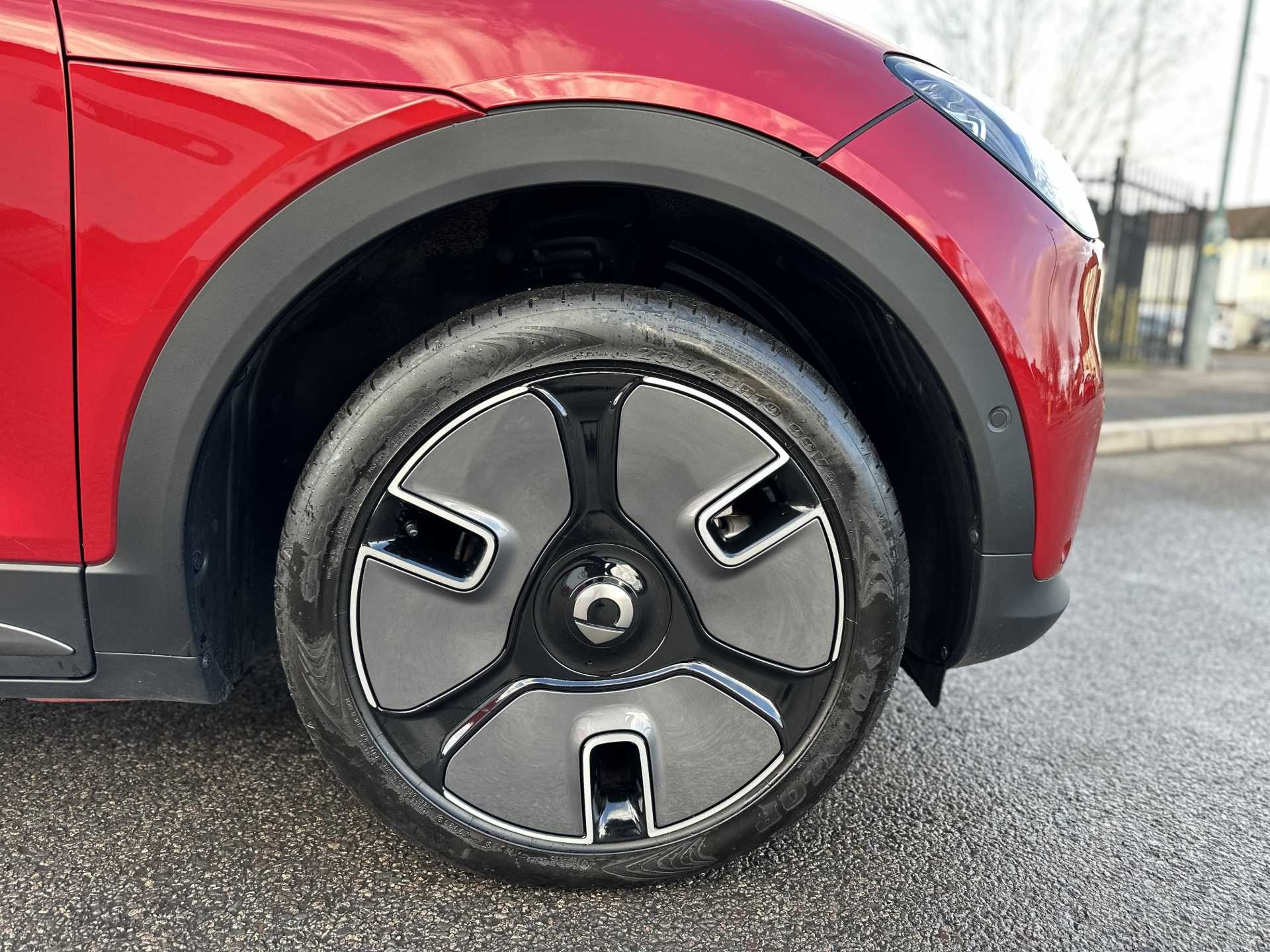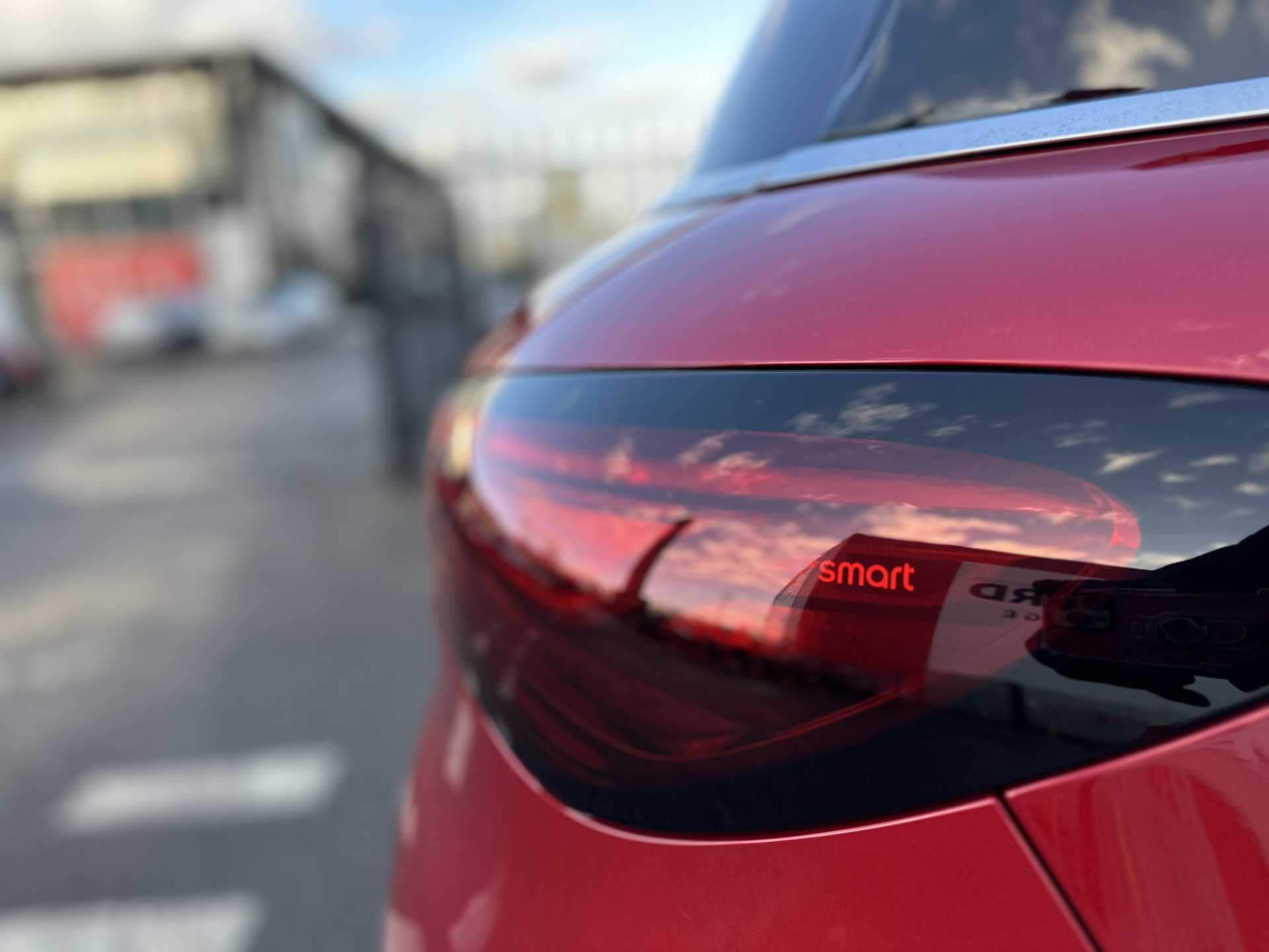 This is a 2025 Smart #1 Dark Matter, finished in red. It is an all-electric SUV with a 200 kW powertrain, automatic transmission and four-wheel drive, offering zero tailpipe emissions.