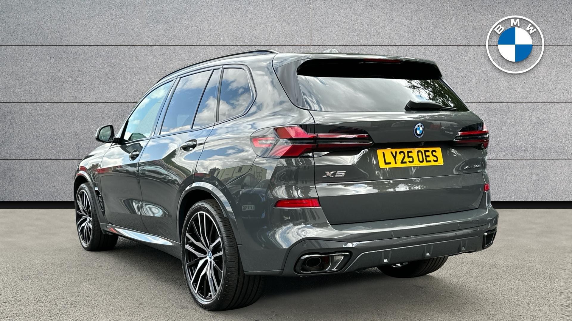 This exceptional BMW X5 50e M Sport, registered in 2025, presents a unique opportunity with its incredibly low mileage of just 6,349 miles, having had its first service completed by the dealership on 9th June 2025 at only 8 miles. This four wheel drive petrol plug in hybrid, adhering to Euro 6 emissions standards, boasts a powerful 3.0 litre engine and comes equipped with a full dealership service history, ensuring its provenance is impeccable. As a single owner vehicle, it also features an electrically folding towbar with a substantial 2700 kg towing weight, a Sky Lounge panoramic glass sunroof, and striking 22 inch M Double Spoke Bicolour Style 742 alloy wheels, all part of the desirable M Sport Pro Package.