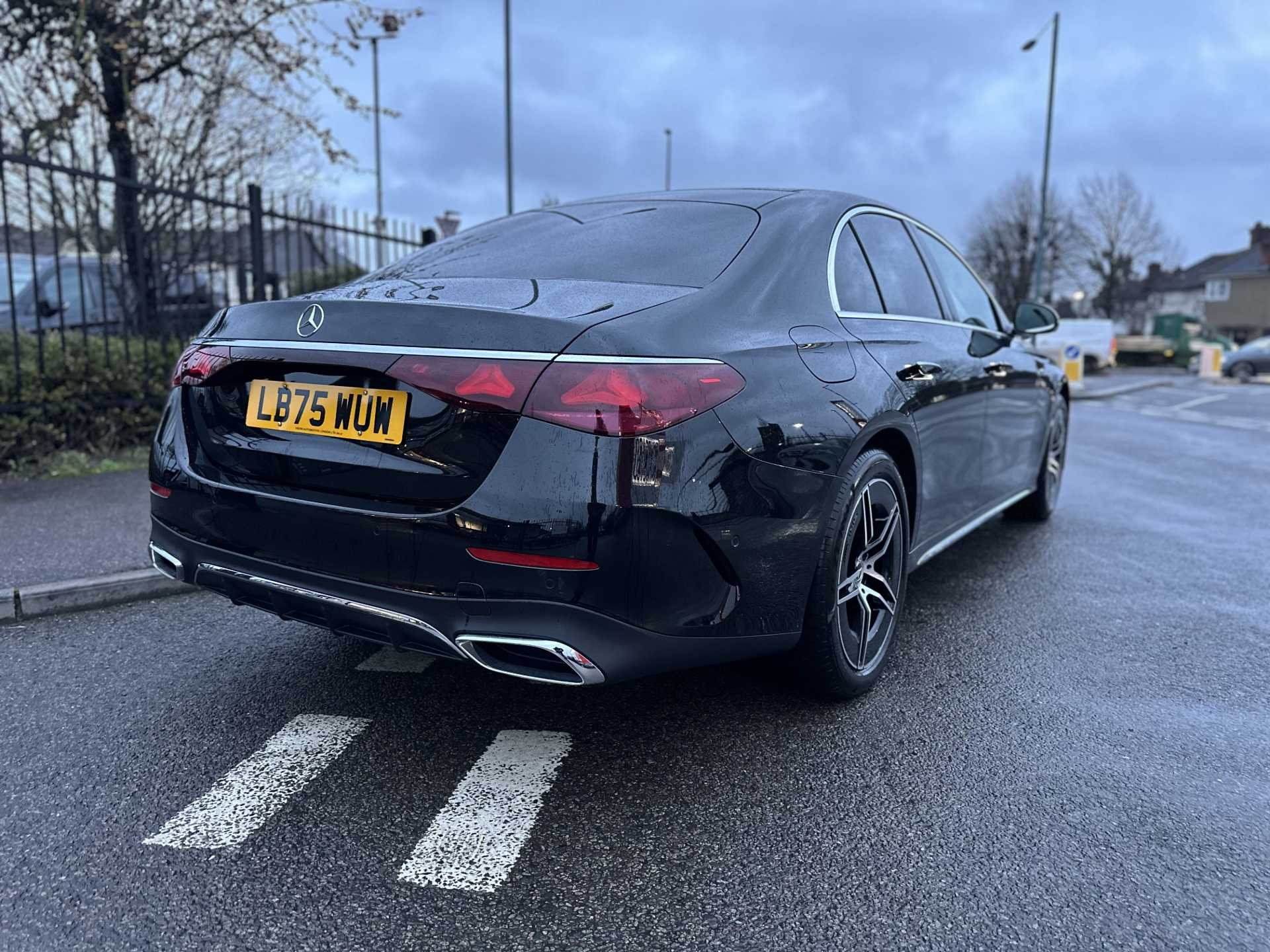 This is a 2025 Mercedes-Benz E-Class E 300 de AMG Line Premium Saloon finished in Obsidian Black, with Macchiato Beige / Black Leather Trim, with an automatic transmission and rear-wheel drive. It is a plug-in hybrid model combining diesel power with electric driving capability, offering both efficiency and long-distance practicality.