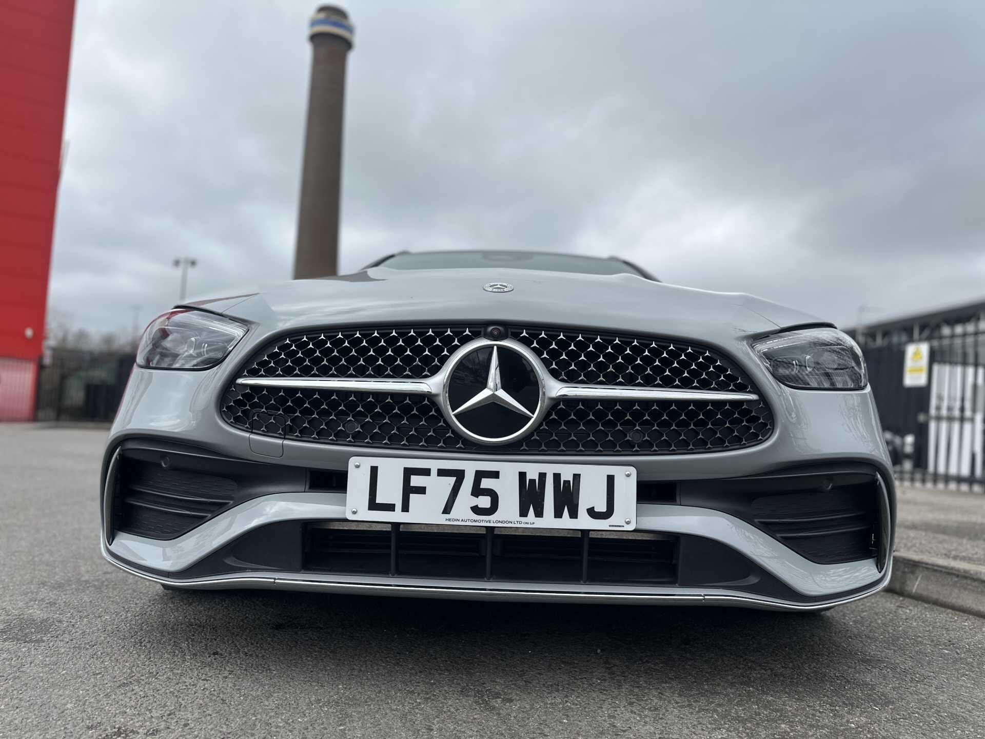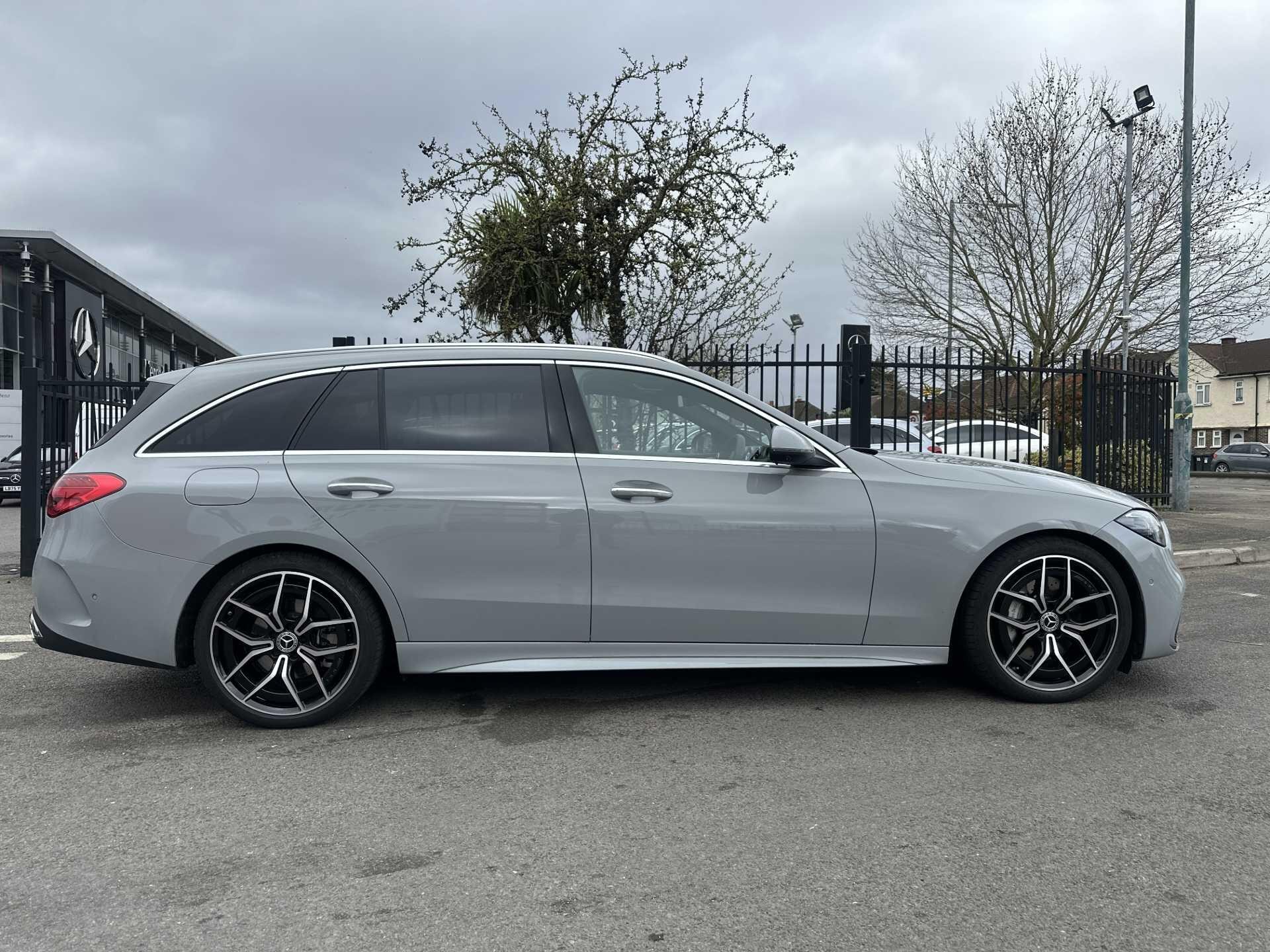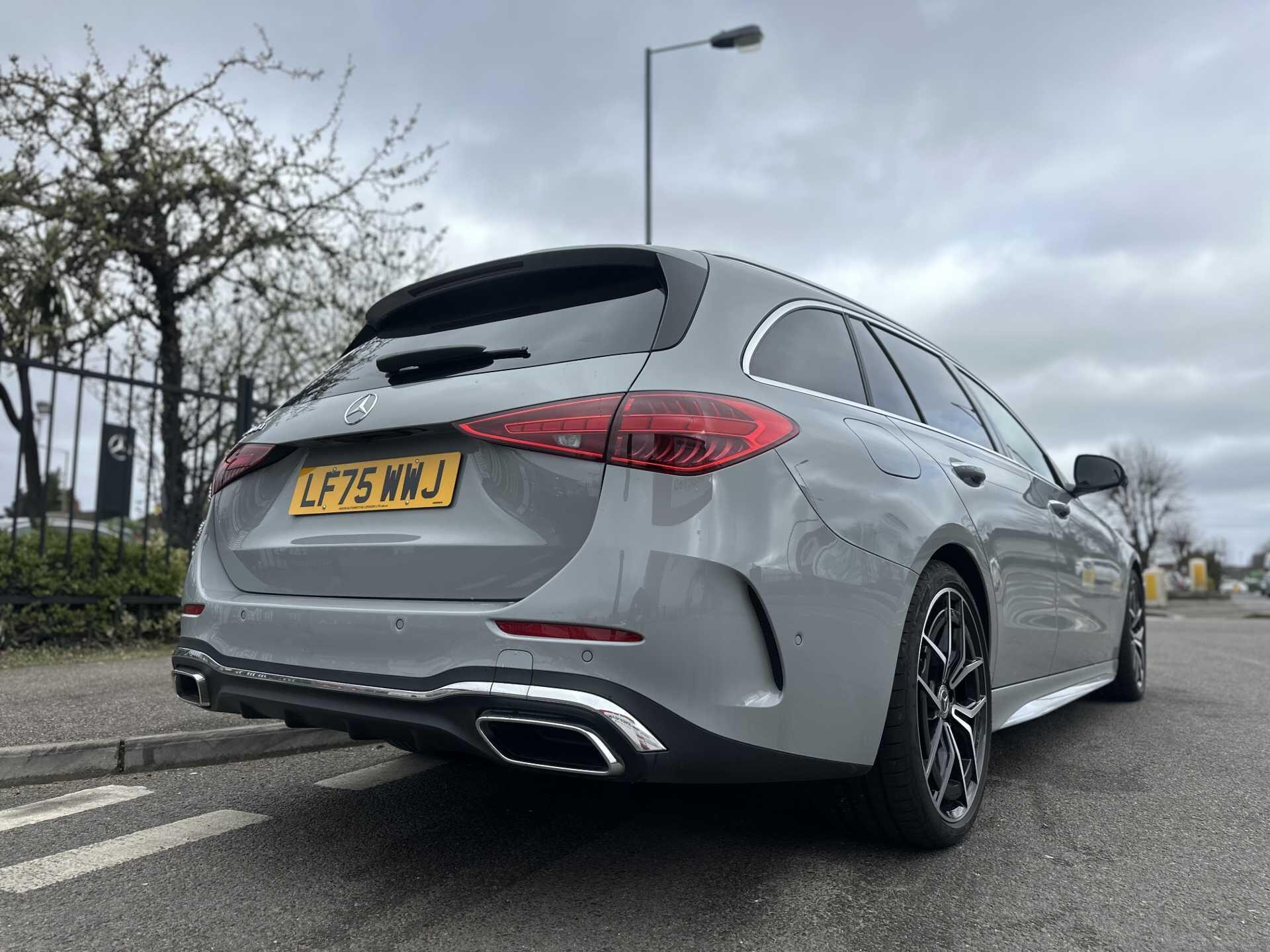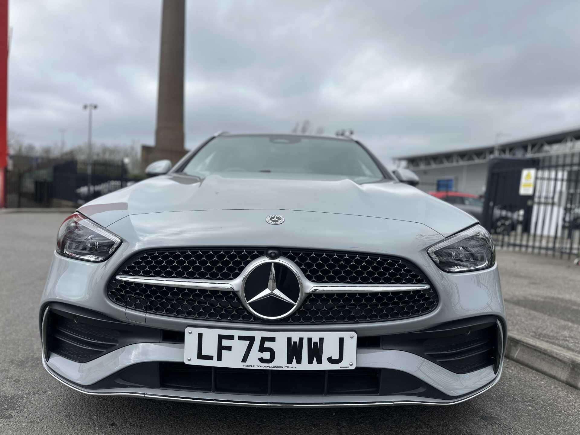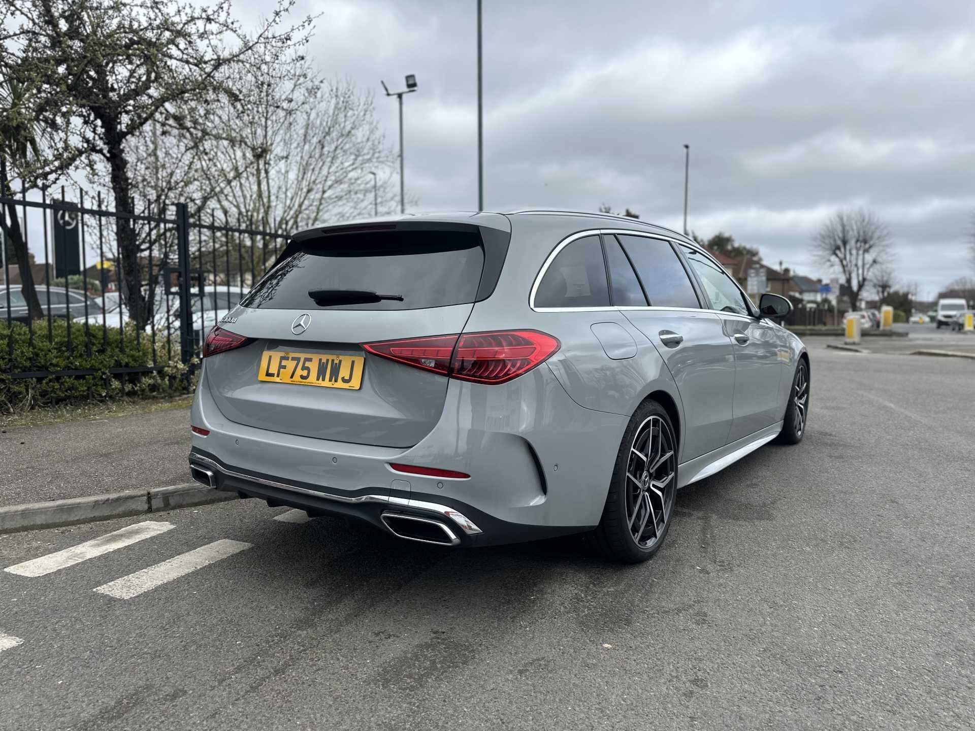 This is a 2025 Mercedes-Benz A-Class C300 d AMG Line Premium Estate in Alpine Grey, with automatic transmission and a diesel engine. It is a used vehicle with approximately 6,000 miles on the clock and has seating for five.