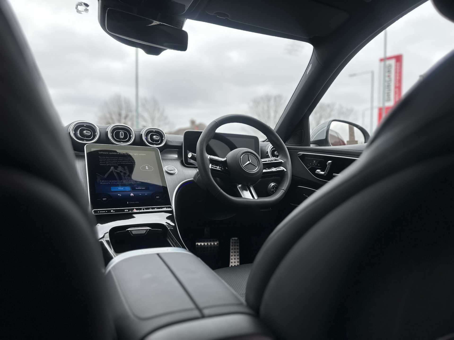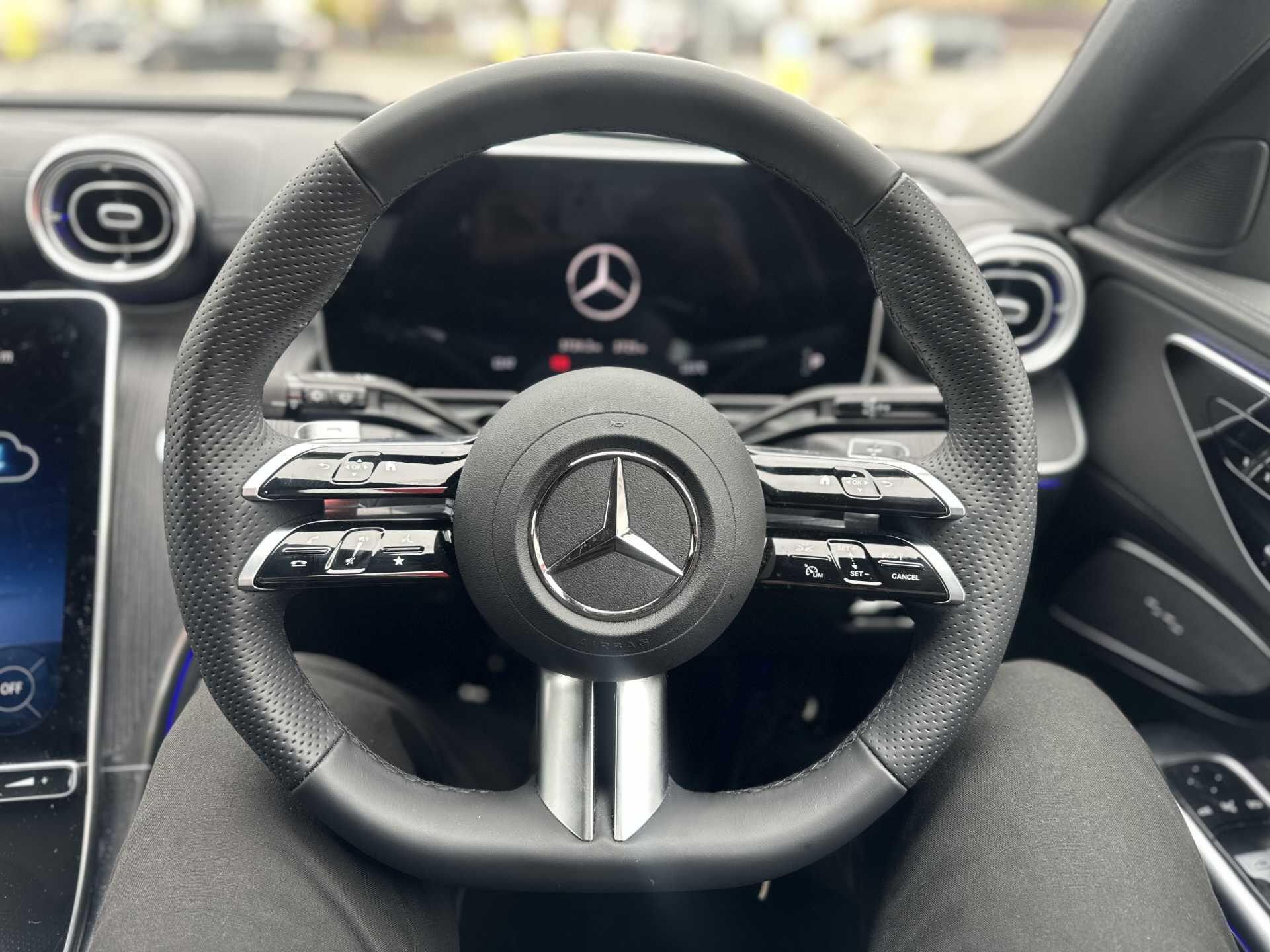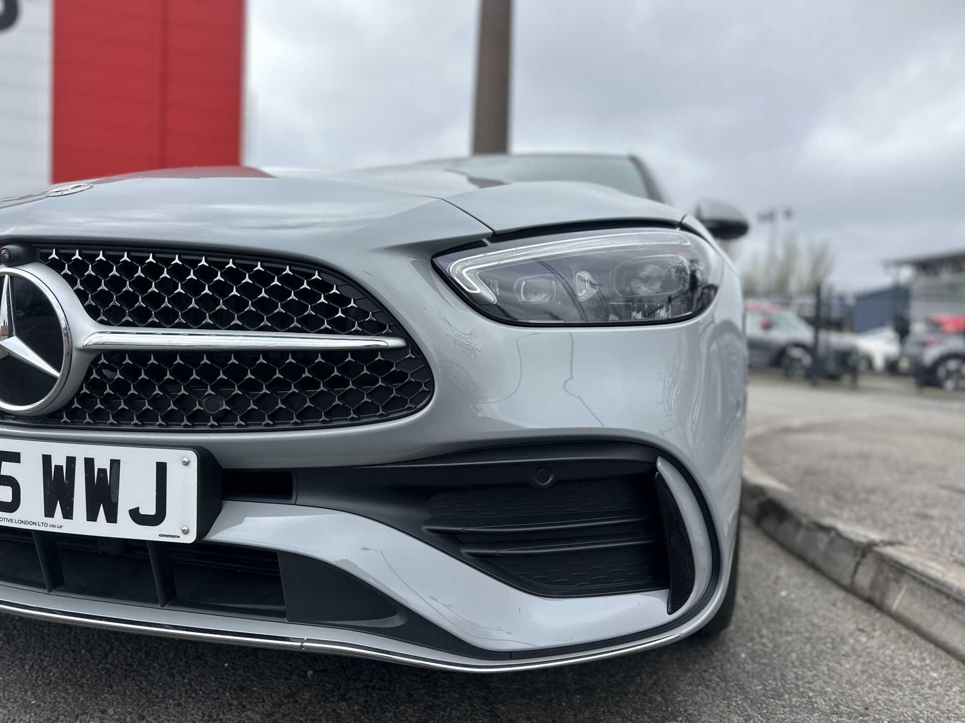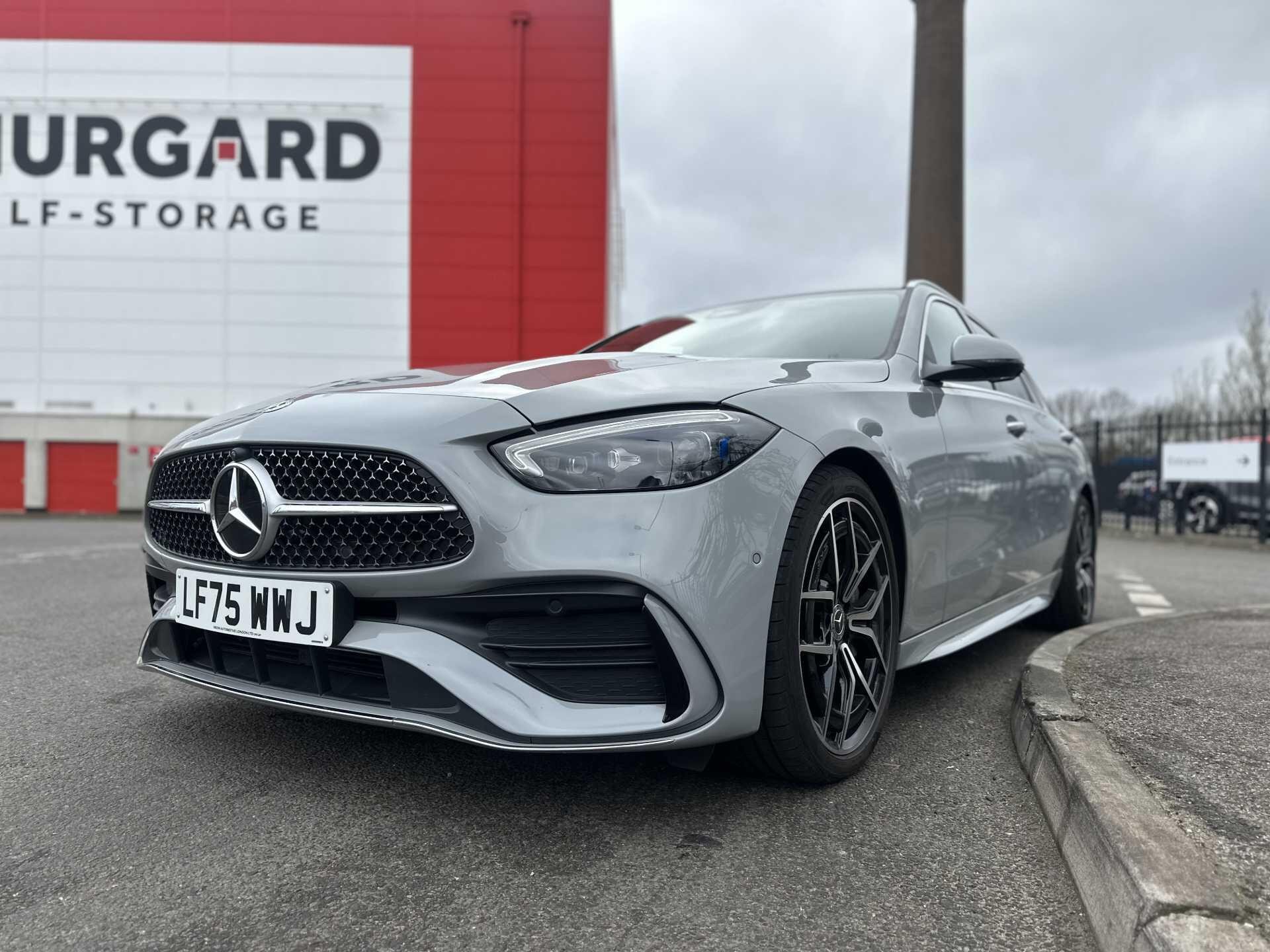 This is a 2025 Mercedes-Benz A-Class C300 d AMG Line Premium Estate in Alpine Grey, with automatic transmission and a diesel engine. It is a used vehicle with approximately 6,000 miles on the clock and has seating for five.