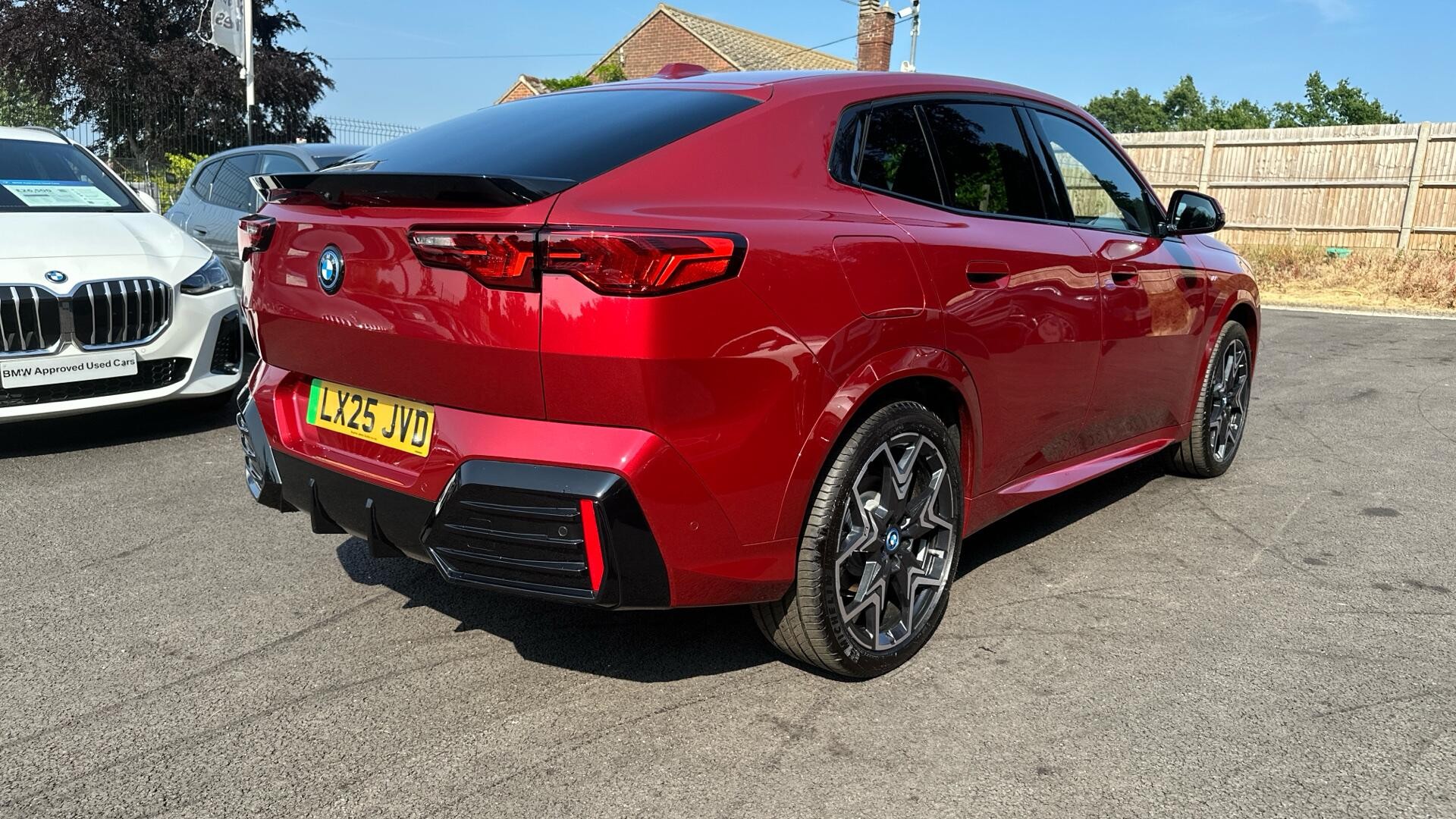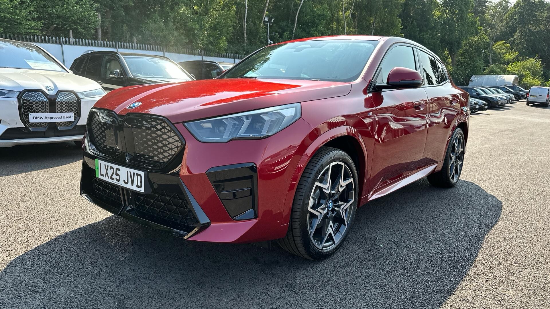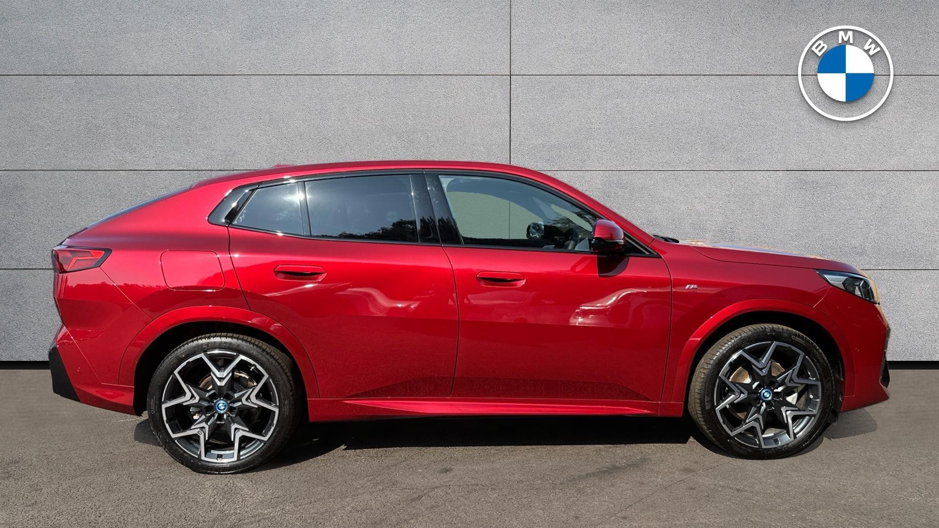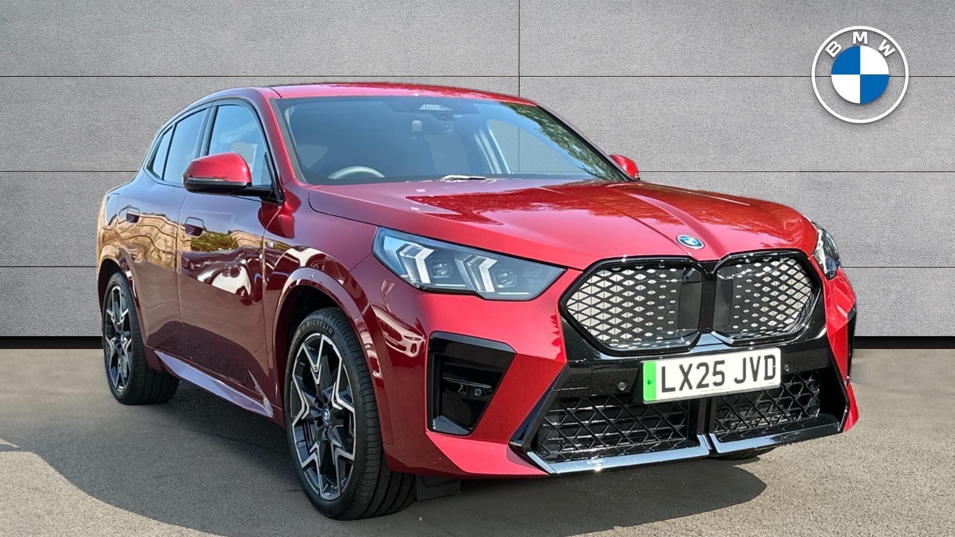 This 2025 BMW iX2 30 M Sport is a BMW manufacturer approved vehicle with a full dealership service history, having had its first service at just 6 miles on 06/06/2025, and has had only one owner from new. This electric four wheel drive model boasts a 67 kWh battery offering a maximum range of 267 miles. It features a striking M Sport trim with 20in M V Spoke Bicolour 873 alloy wheels and comfortable Perforated Veganza Black upholstery. For your entertainment, it includes a Harman Kardon Surround Audio Sound System, and for convenience, the Parking Assistant with a rear camera is fitted.