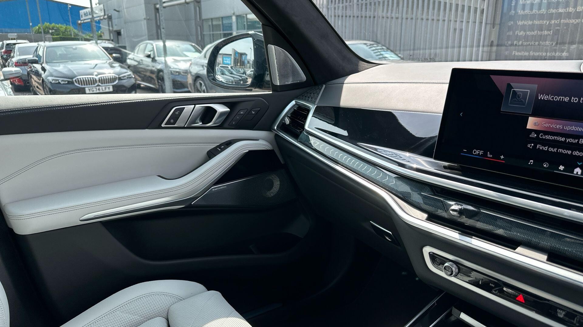 This 2025 BMW X7 40d M Sport presents an exceptional ownership proposition, having been driven only 6961 miles by its sole owner. This impressive example of the X7, a large luxury SUV, is equipped with a powerful 3.0L Diesel Hybrid engine and a Four Wheel Drive drivetrain, ensuring capable performance in all conditions. Its Euro 6 emission class reflects modern environmental standards. The M Sport trim enhances its sporty appeal, complemented by M Carbon Side Mirror Caps. Inside, the Comfort Pack adds heated seats and a heated steering wheel for enhanced driver and passenger comfort, while the Leather Dashboard provides a premium feel.