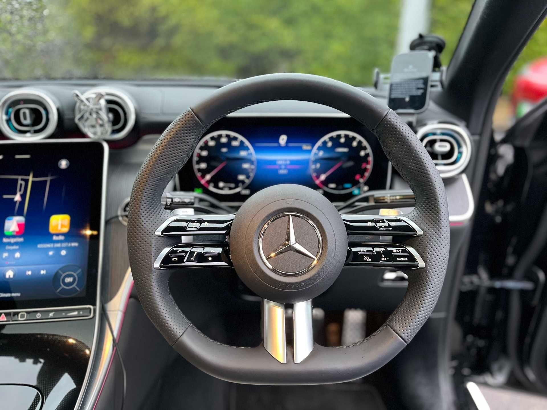 This 2025 Mercedes Benz GLC300h AMG Line (Premium) is a superb example, having had only one owner from new and being Mercedes Benz manufacturer approved. This four wheel drive SUV boasts a 2.0 litre petrol hybrid engine, meeting Euro 6 emission standards. Its AMG Line trim ensures a sporty aesthetic, complemented by a large boot space perfect for all your needs.