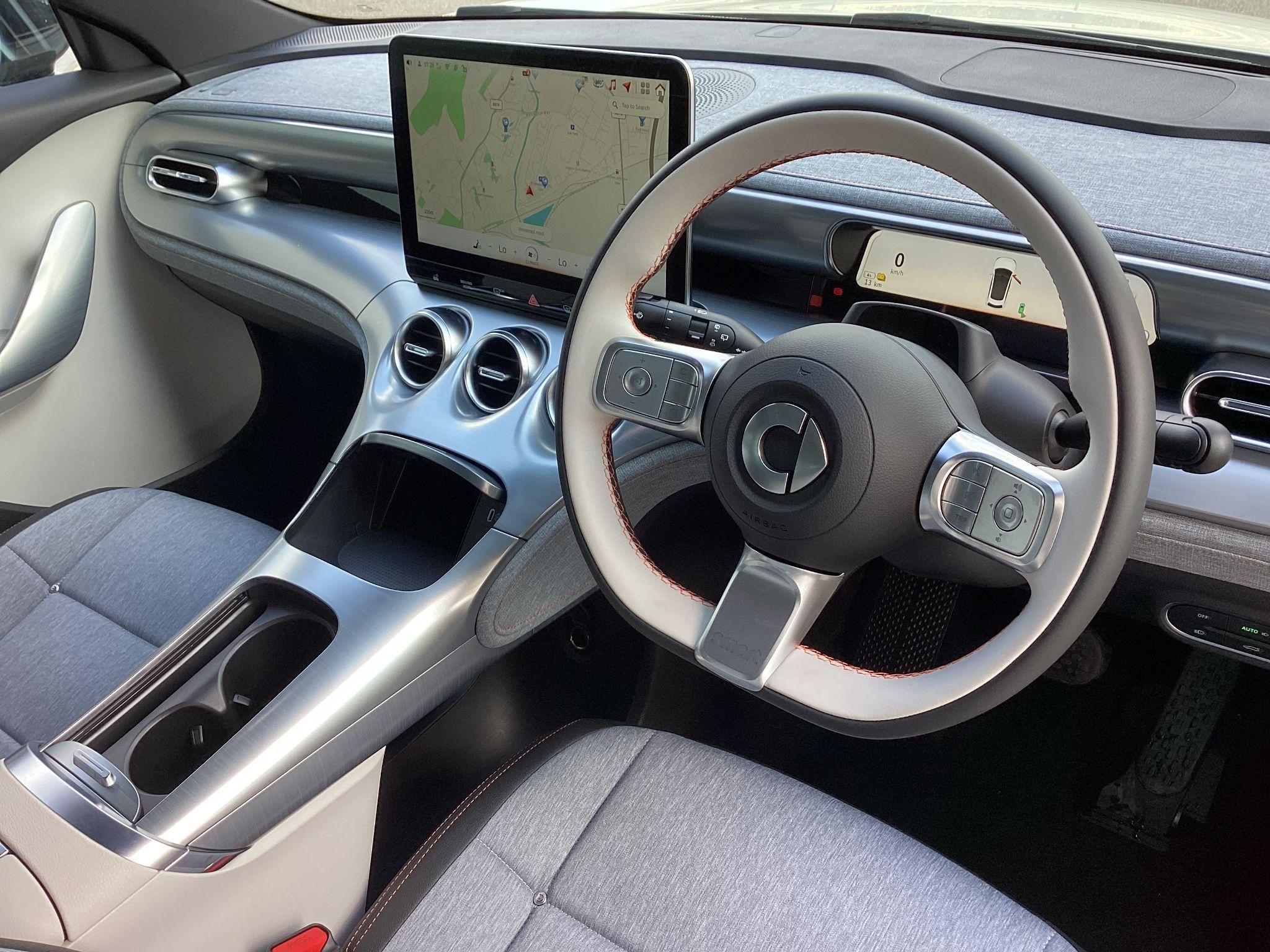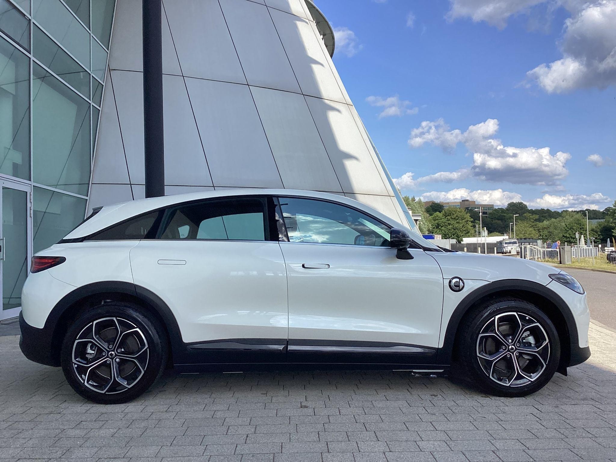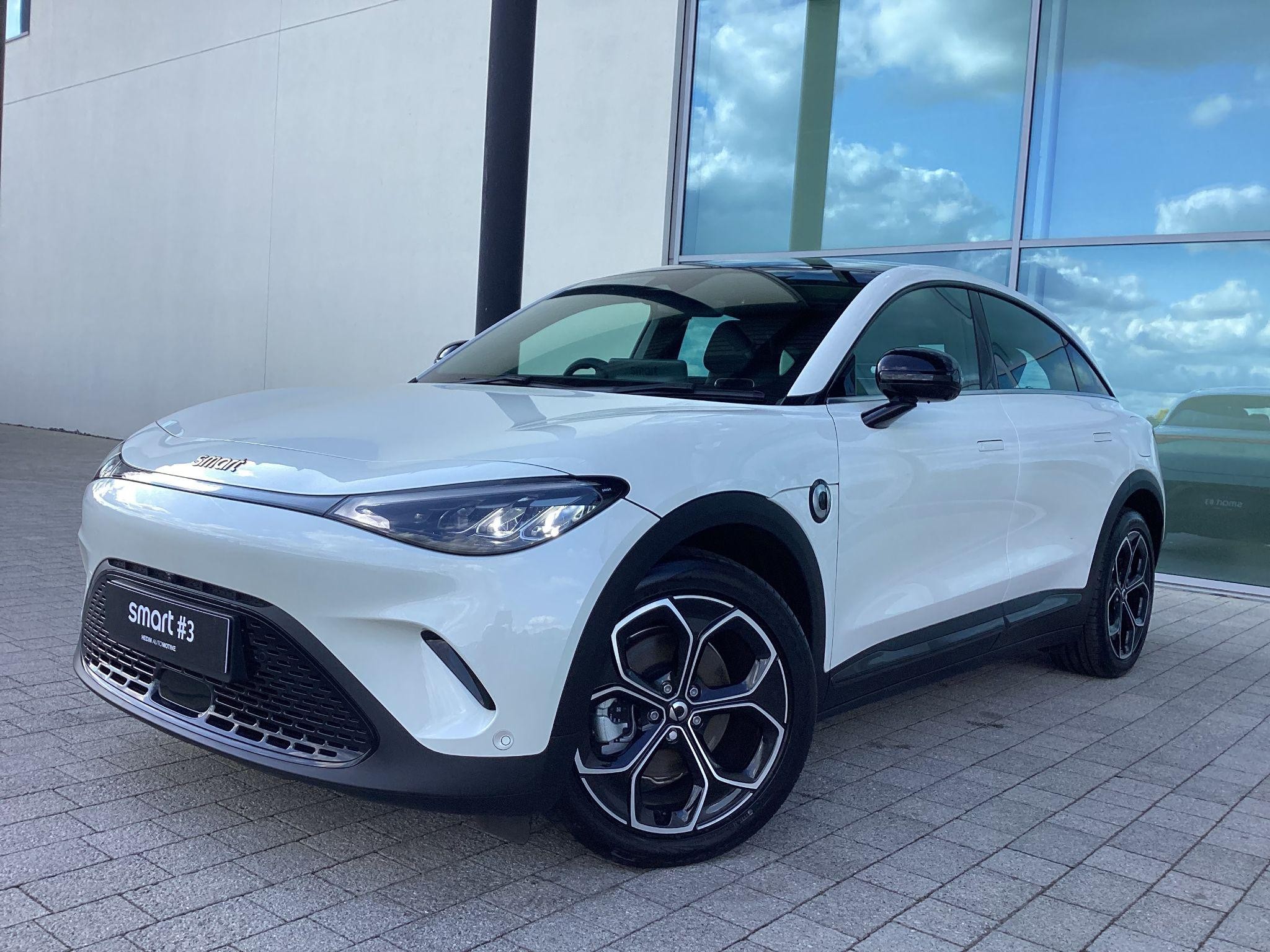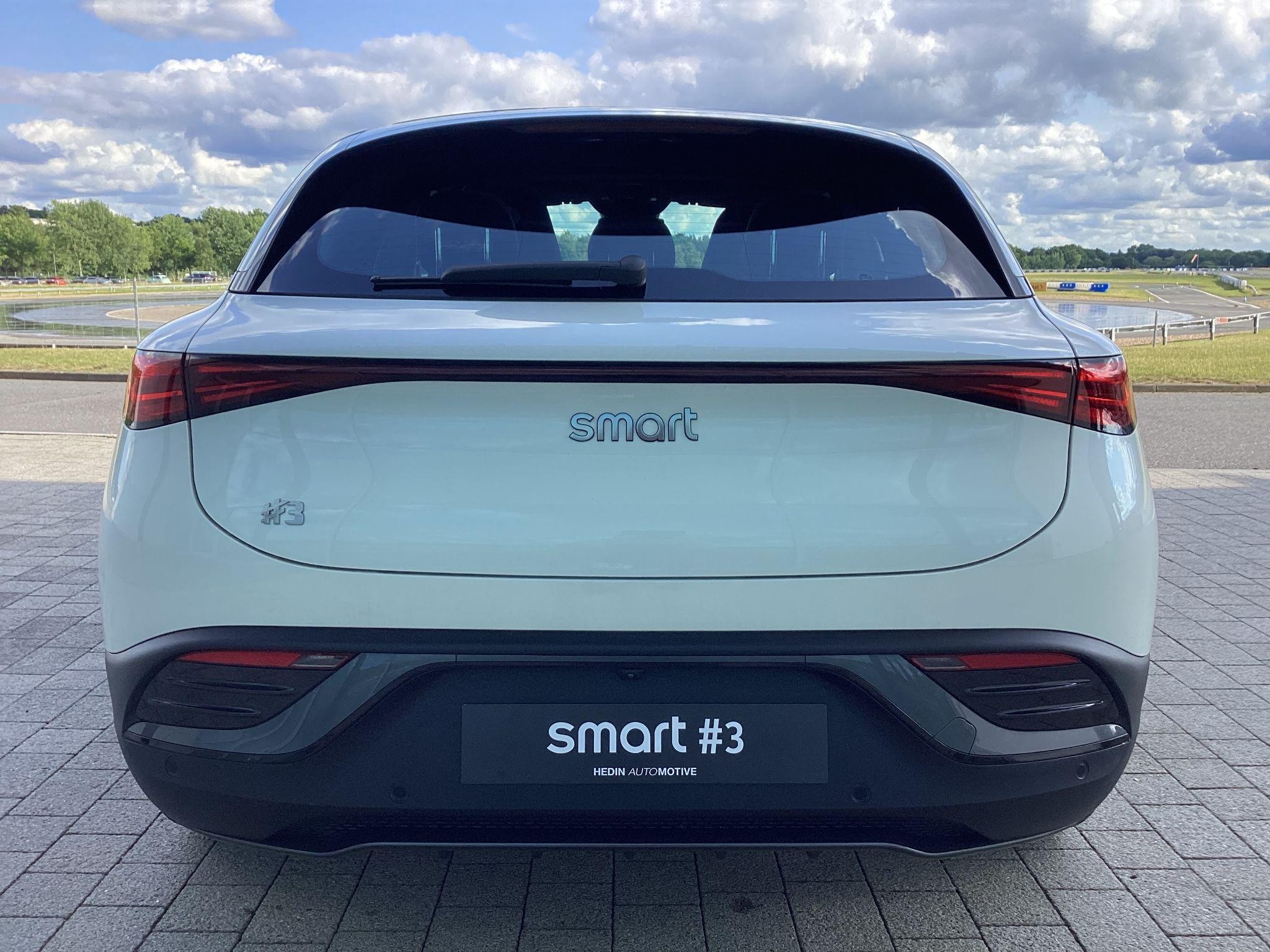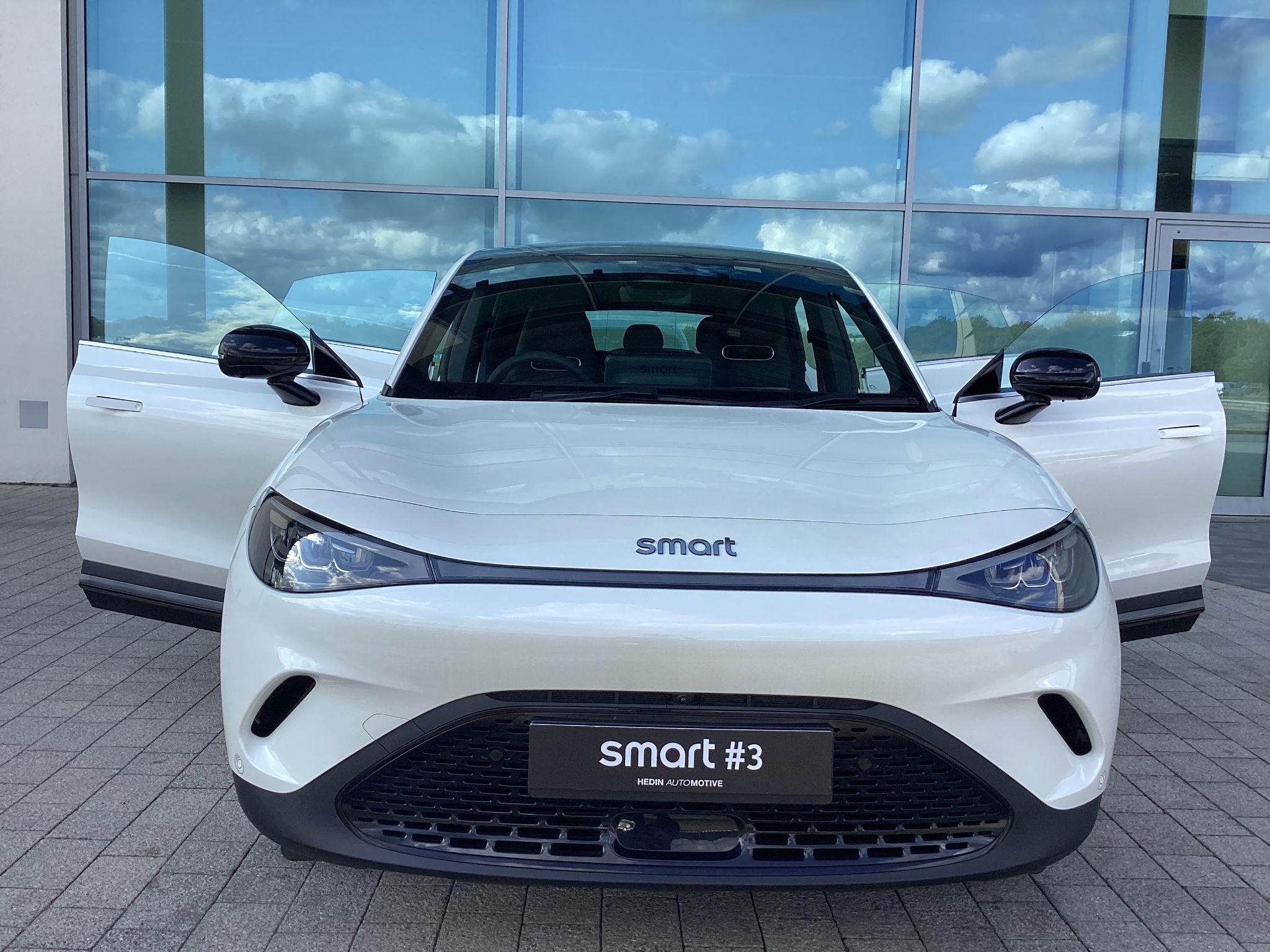 smart #3 Pro, 19" Alloy Wheels, Fixed Panoramic sunroof, 360° camera, Front/Rear parking sensors, Powered, heated front seats, Driver memory seat, Auto dimming, memory door mirrors, Powered tailgate, Blind Spot Assist, Adaptive Cruise Control, Apple CarPlay / Android Auto, Auto-Dimming Interior Mirror, Wireless Phone Charging, 12.8" central display touch screen. Battery size 49kWh and supplied with 8-Year / 100,000 mile warranty, DC charging 10 - 80% in 30 minutes and a published range of 202miles which in the real world would be around 165 on average depending on driving style.