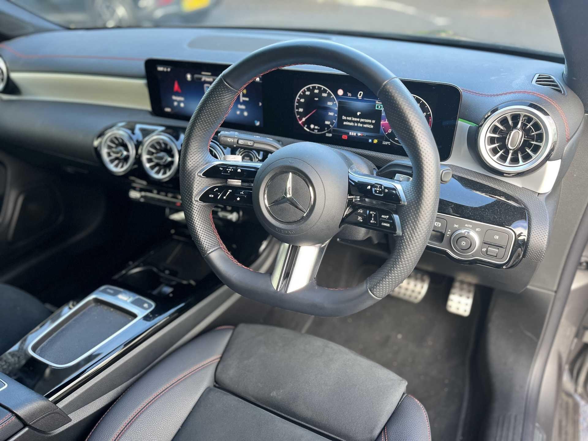 This 2025 Mercedes Benz CLA180h AMG Line Executive presents an exceptional opportunity with an incredibly low mileage of just 3997 miles, making it virtually as new. This Euro 6 compliant model boasts a 1.3 litre petrol hybrid engine, offering an efficient and dynamic driving experience. Benefitting from a full dealership service history and Mercedes Benz manufacturer approval, this vehicle assures you of its quality and care. The AMG Line trim enhances its sporty appeal, promising a refined and engaging drive.