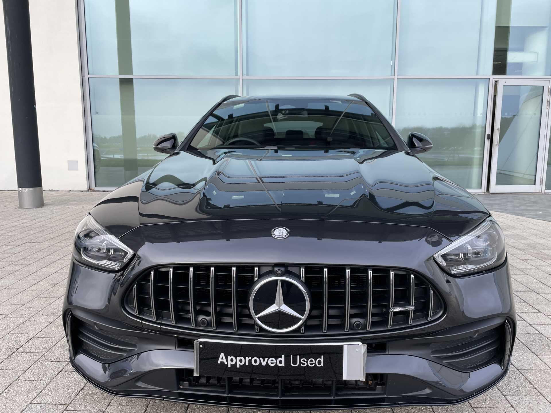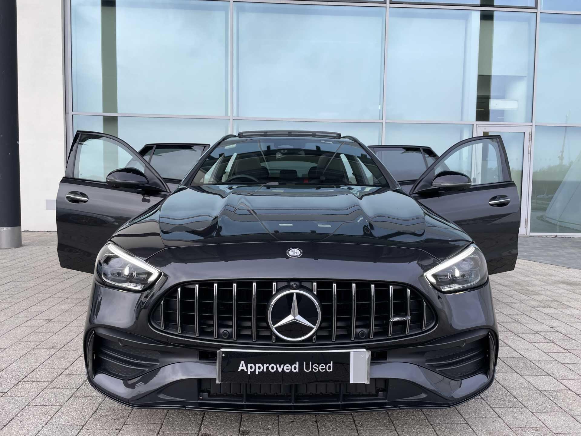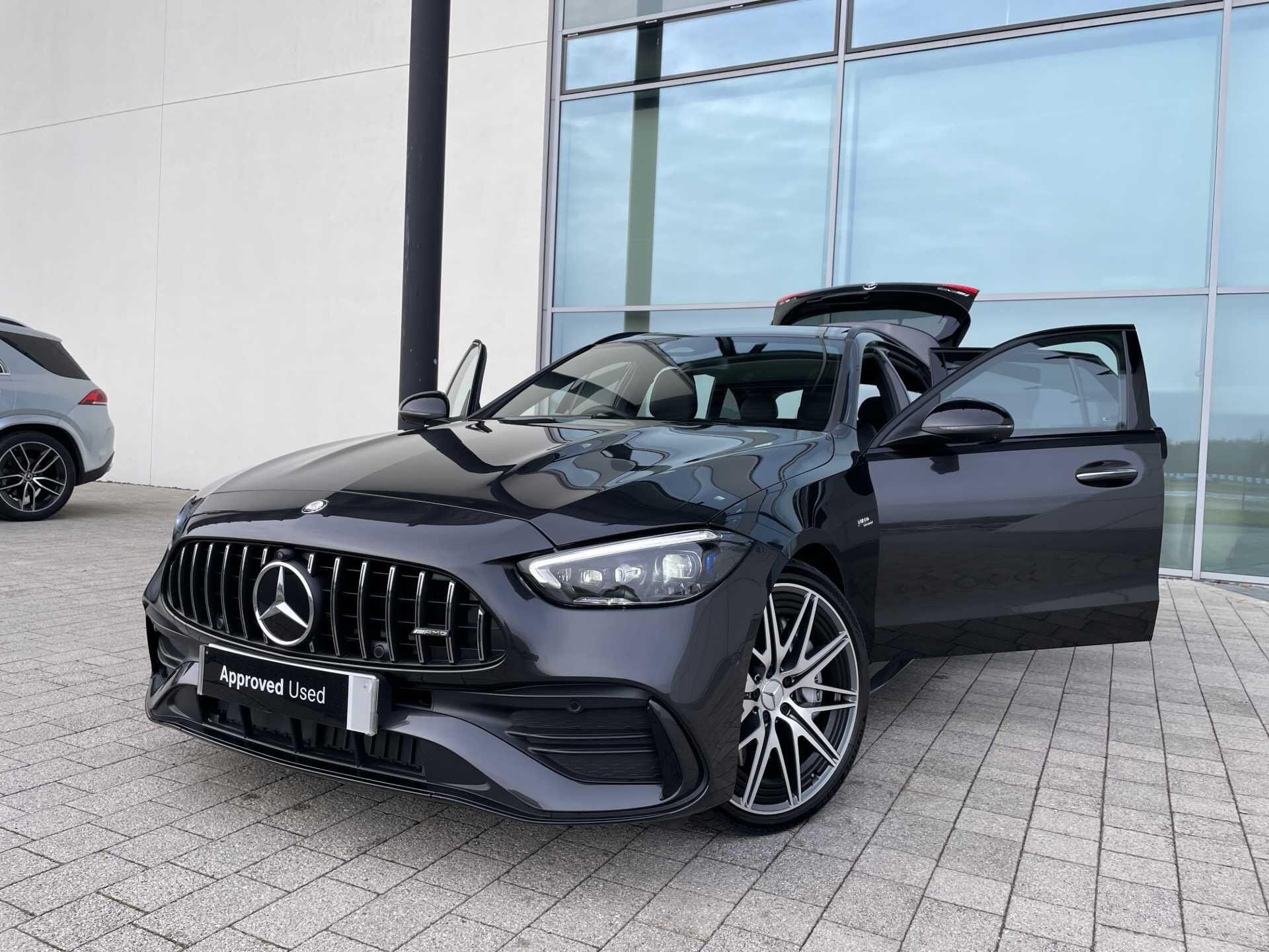 This 2025 Mercedes-Benz C43 AMG Night Edition (Premium Plus) is a Mercedes-Benz manufacturer approved vehicle with a full dealership service history and just one owner from new, offering peace of mind with 31 months of warranty remaining. This striking C Class model features a powerful 2.0L Petrol Hybrid engine paired with Four Wheel Drive, meeting Euro 6 emission standards. The AMG Night Edition trim enhances its appeal, and it comes equipped with a comprehensive suite of notable features including a Parking Package with a 360-Degree Camera and Parking Assistance, a Head-Up Display, advanced Digital Light headlamps, THERMATIC two-zone automatic climate control, and a Memory Package for the seats.