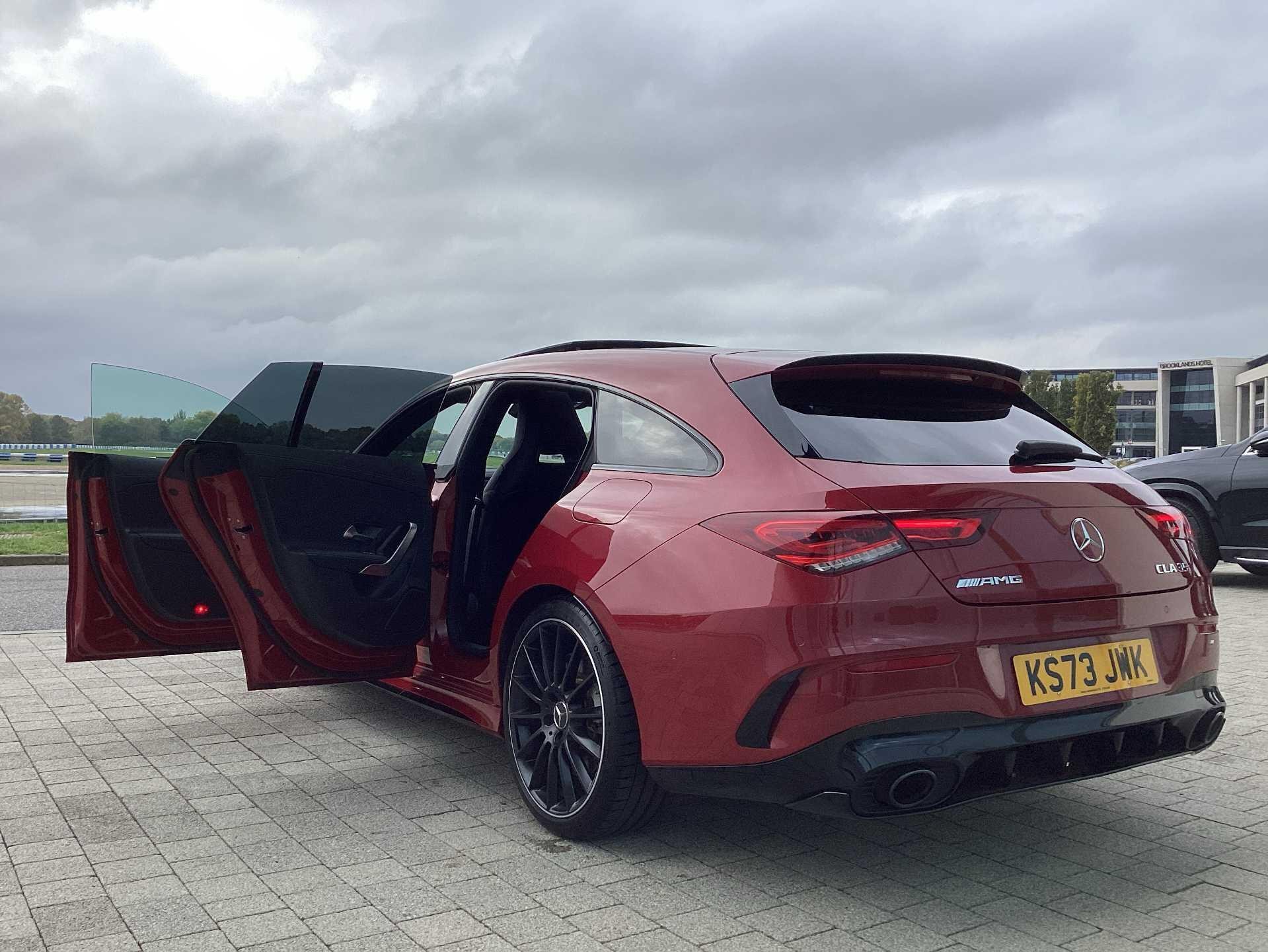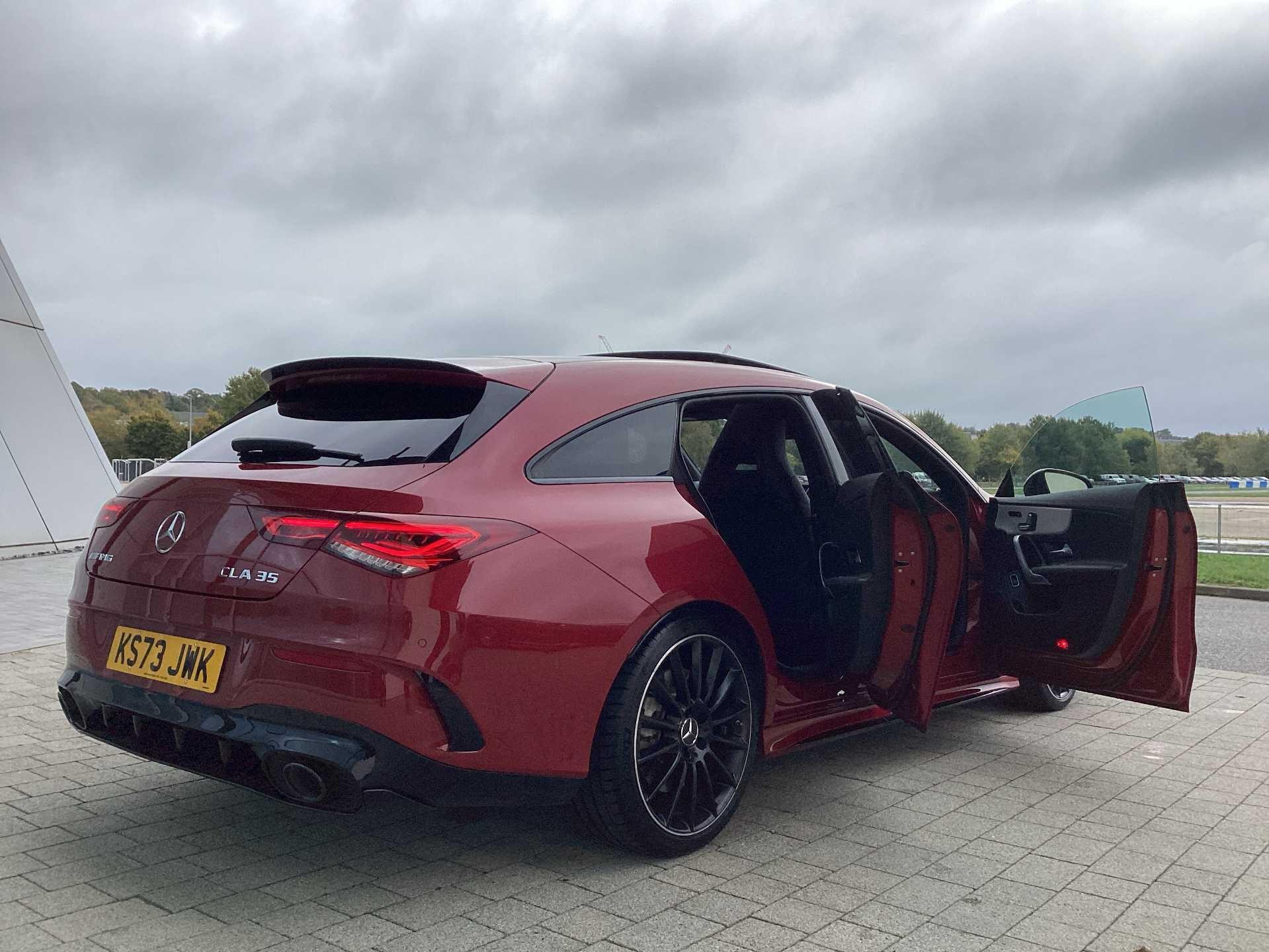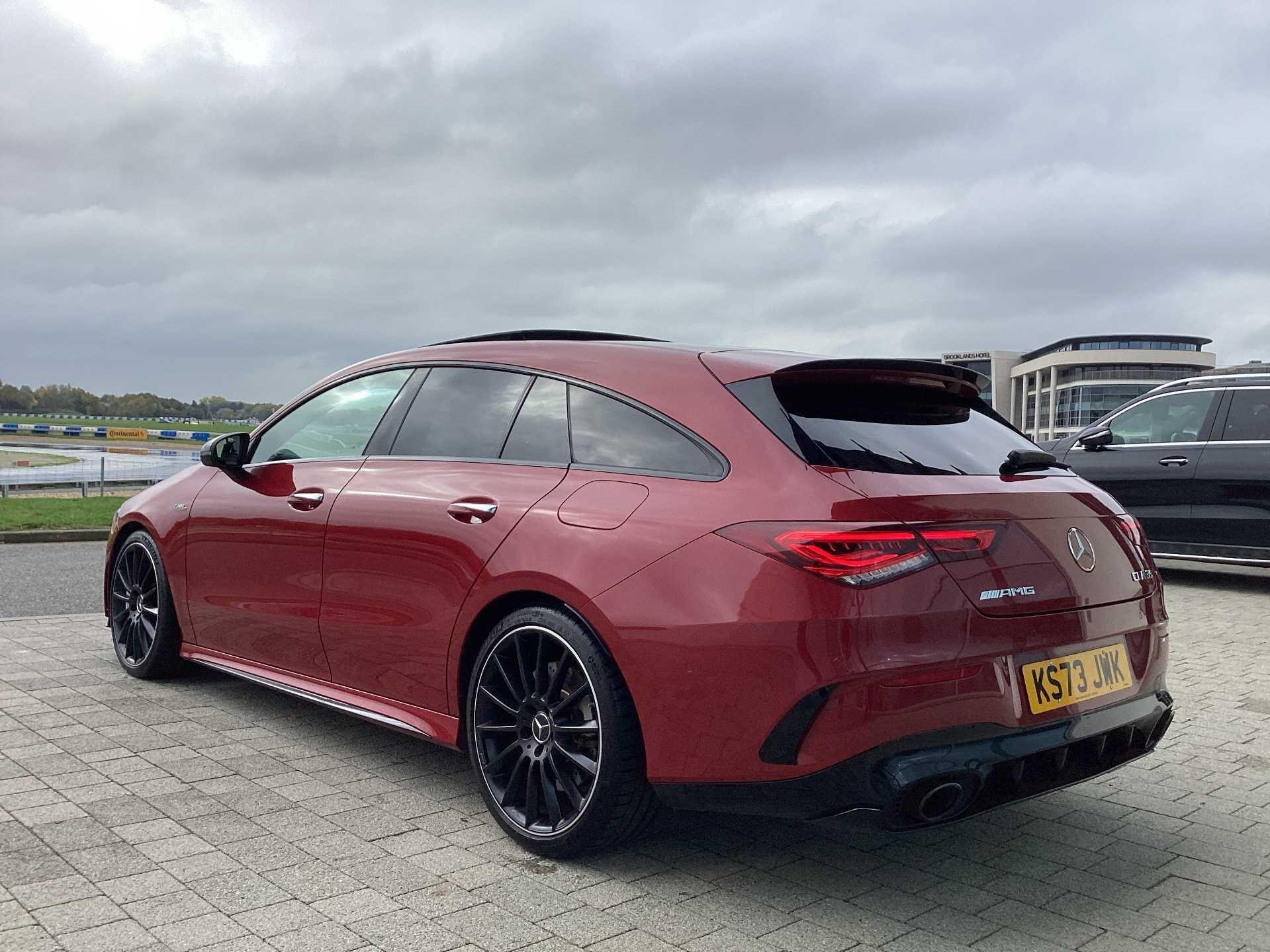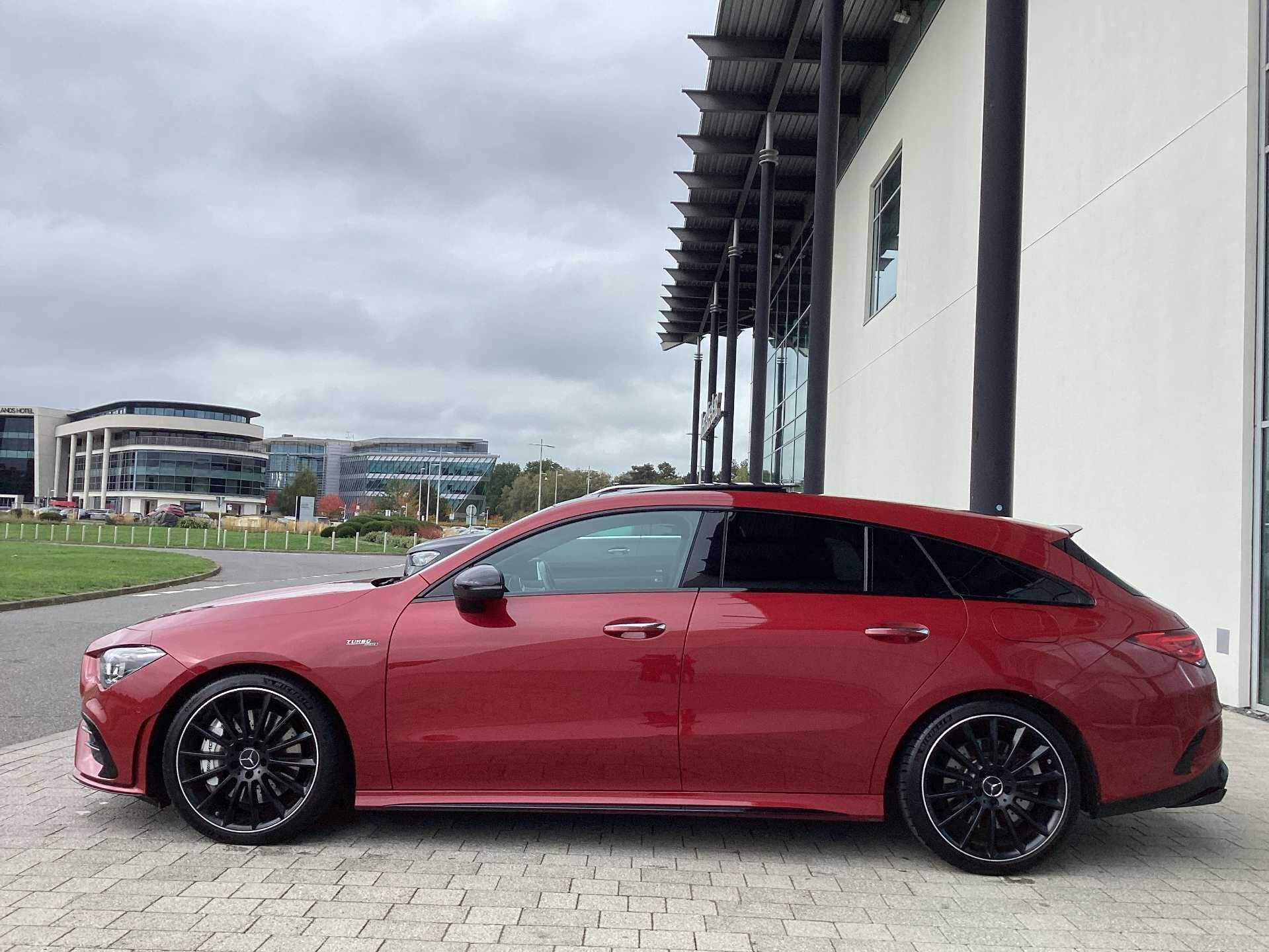 This 2023 Mercedes-Benz CLA35 AMG Premium Plus boasts an exceptionally low mileage of just 13505 miles, with its last service completed on 17th October 2025 at 13502 miles, and benefits from a manufacturer warranty valid for a further 24 months. This four wheel drive, Euro 6 compliant model is powered by a 2.0 litre petrol engine and features AMG trim. Its MOT is valid until October 2026, ensuring peace of mind. Notable features include dual Bluetooth interfaces, a comprehensive parking package with front and rear sensors and a rear camera, and seamless smartphone integration with both Apple CarPlay and Android Auto. The convenience of automatic headlamp activation is also included, alongside a panoramic sunroof that can be opened.