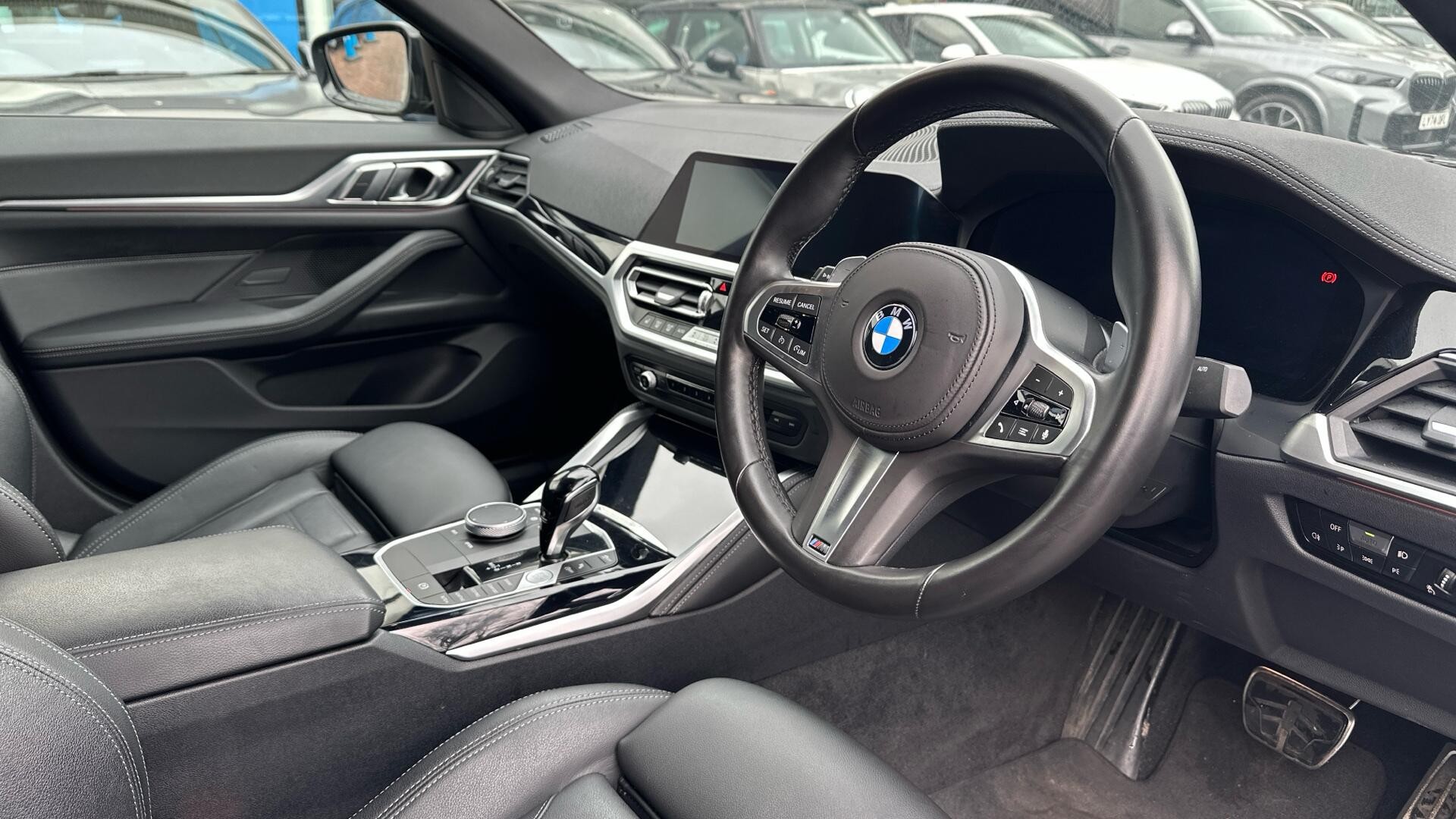 With only one owner and a remarkably low mileage of 15008 miles for its 2022 registration, this BMW 4 Series Gran Coupe 420i M Sport presents an exceptional find. This Euro 6 compliant vehicle is powered by a responsive 2.0L petrol engine, offering an engaging driving experience. The M Sport trim level enhances its sporty appeal, complemented by striking M Sport Brakes with distinctive blue calipers. For convenience and safety, it includes the comprehensive Parking Assistant, featuring front and rear sensors along with a rear camera, and benefits from the added privacy and comfort of Sun Protection Glass.