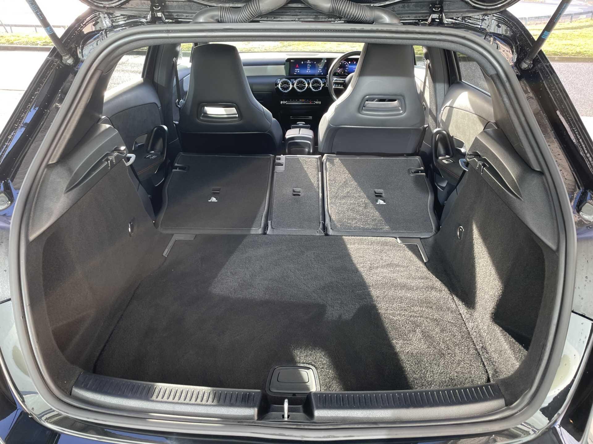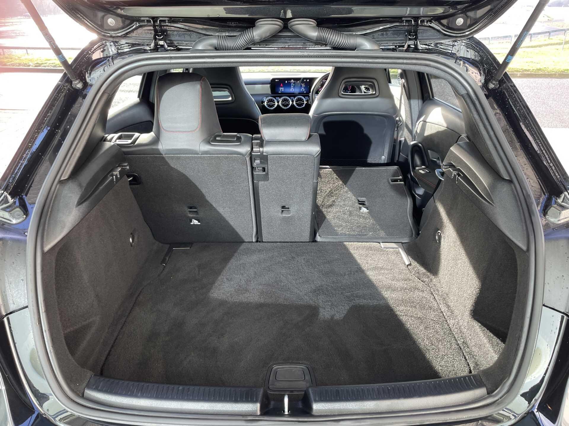 This A Class is equipped with striking LED High Performance Headlamps, complete with integrated daytime running lights and Adaptive High Beam Assist for optimal visibility. Its acceleration is impressive, reaching 0-62mph in just 8.2 seconds, a performance that sets it apart. Furthermore, the generous boot space ensures you have ample room for all your needs, indicating a thoughtful design that balances dynamic driving with everyday usability.