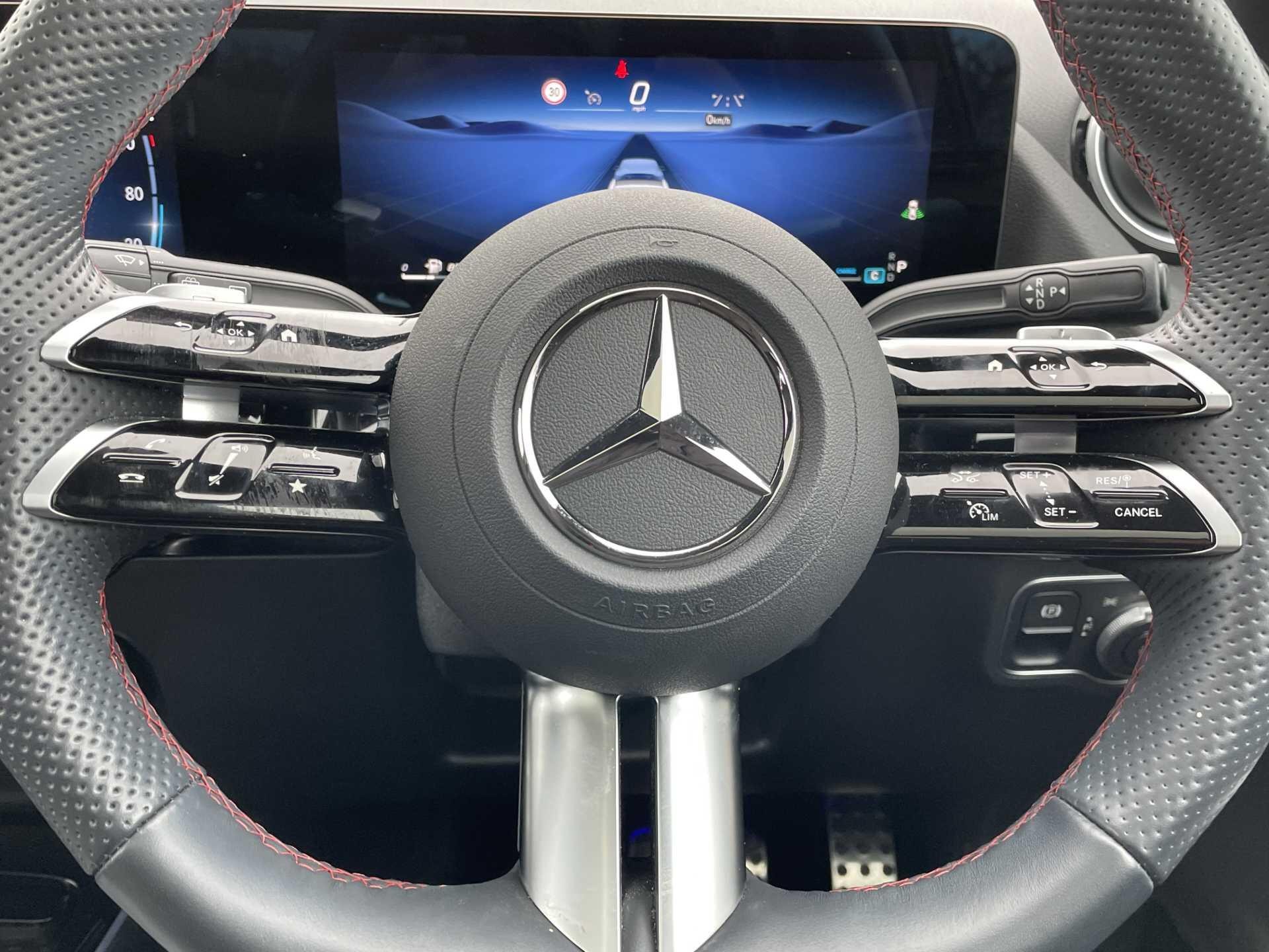 This 2025 Mercedes-Benz GLA200h AMG Line (Premium Plus) is a Mercedes-Benz manufacturer approved vehicle with a full dealership service history and only one owner from new. It features a 1.3 litre petrol hybrid engine, meeting Euro 6 emissions standards, and is presented in the AMG Line trim. Notable features include a panoramic glass sunroof with an opening function, a parking package with a 360-degree camera for effortless manoeuvring, and MULTIBEAM LED headlights with adaptive highbeam assist. You'll also appreciate the convenience of a head-up display and striking 20-inch AMG multi-spoke alloy wheels painted black with a high-sheen rim flange.
