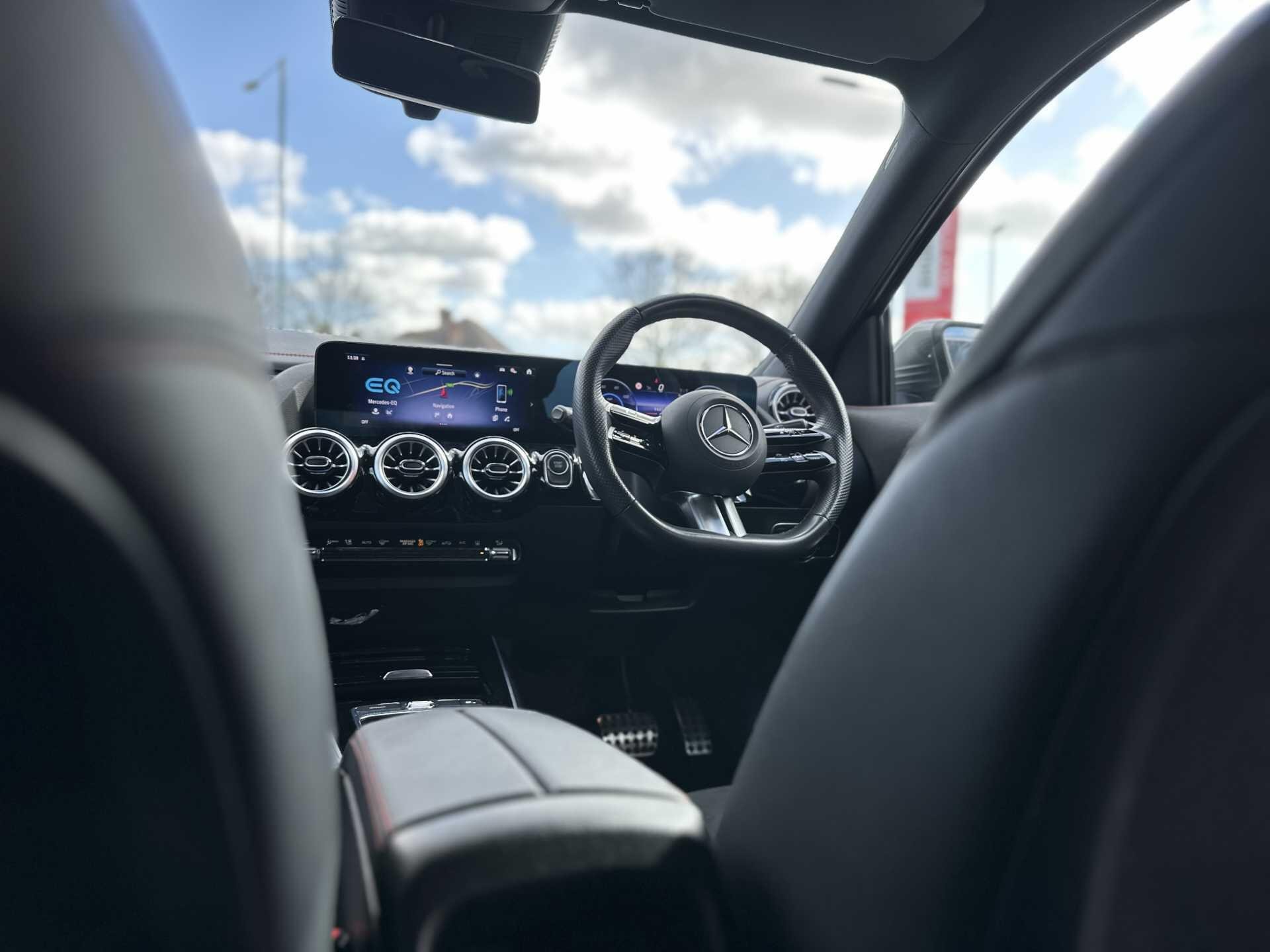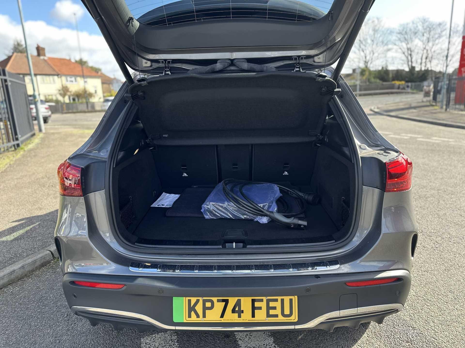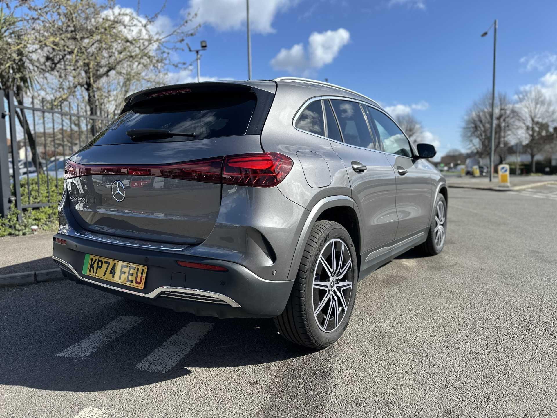 This 2024 Mercedes-Benz EQA 250+ AMG Line (Executive) is a Mercedes-Benz manufacturer approved vehicle with a full dealership service history, most recently serviced at 9,326 miles on 23rd December 2025, and has only had one owner from new. This electric vehicle boasts a substantial 78 kWh battery, offering a maximum range of 346 miles when new, and has covered a low mileage of just 9,654 miles for its age. The AMG Line trim enhances its appeal, and it comes equipped with a premium Mercedes-Benz Sound System, THERMATIC climate control for your comfort, and Blind Spot Assist for added safety. Driving is made easier and more enjoyable with LED High Performance Headlights and seamless Smartphone Integration, including Android Auto and Apple CarPlay.