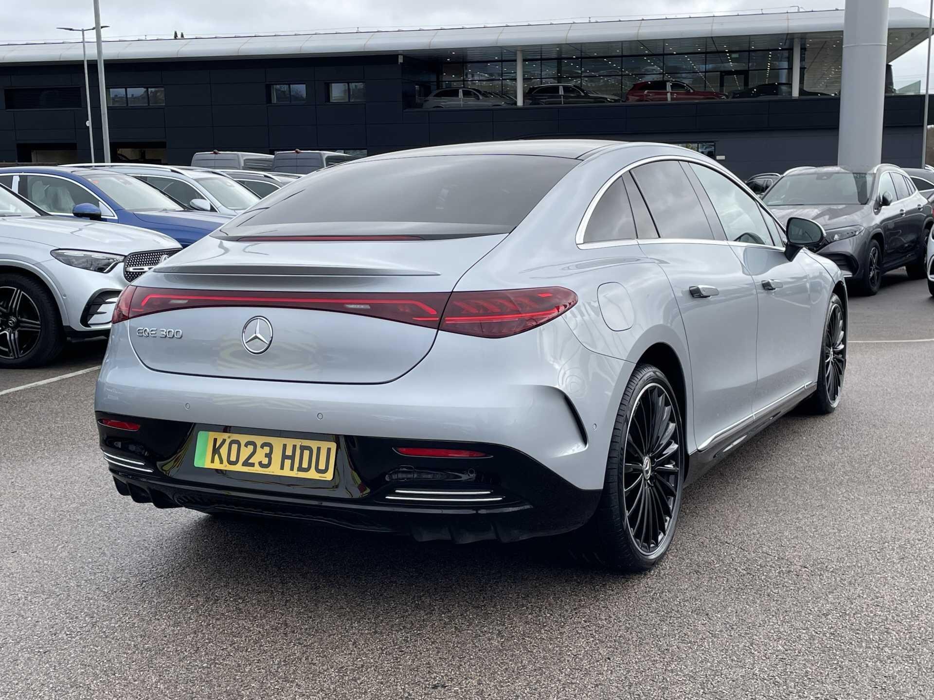 The Mercedes-Benz EQE 300 AMG Line (Premium Plus) is a 2023 model, boasting a sleek and sophisticated design. This electric vehicle is powered by a 96 kWh battery, offering an impressive range of up to 337 miles on a single charge. The vehicle's trim level is AMG Line, which adds a sporty touch to its already stylish exterior. With a full dealership service history, you can have confidence in the vehicle's reliability and performance. The EQE 300 AMG Line also features a range of premium amenities, including Digital Light headlamps, a Driving Assistance Plus Package, a panoramic sliding sunroof, wireless smartphone charging, and heated front seats.