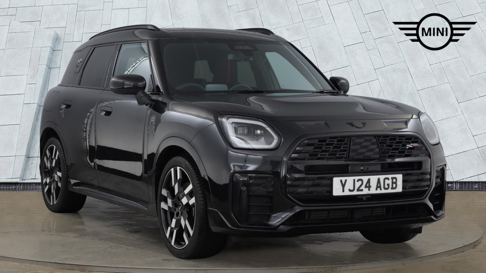This 2024 MINI Countryman S Sport is a MINI manufacturer approved vehicle with a full dealership service history, having only had one owner from new. It boasts a low mileage of just 9587 miles, with its last service completed on 8th January 2026 at 9585 miles. This Euro 6 compliant model features a powerful 2.0L Petrol Hybrid engine and a four wheel drive drivetrain, ensuring excellent performance and capability. Notable features include striking 20 inch JCW Flag Spoke 2 Tone Jet Black alloy wheels and a heated steering wheel for added comfort.