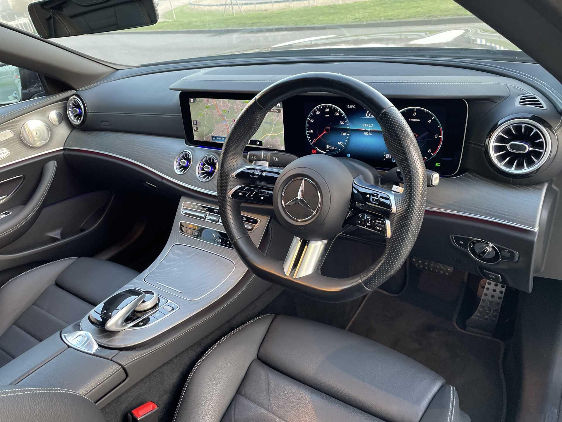 This 2023 Mercedes-Benz E400d AMG Line Night Edition (Premium Plus) is a Mercedes-Benz manufacturer approved vehicle with only one owner and a full dealership service history, having last been serviced on 30th July 2025 at 13,041 miles. This Euro 6 compliant, four wheel drive E Class boasts a powerful 2.9L diesel engine and has covered a low mileage of just 15,235 miles, with its MOT valid until September 2026. Notable features include the Blind Spot Assistance, a Parking Package complete with a 360-degree camera for effortless manoeuvring, and a Memory Package for the seats, ensuring personalised comfort. Heated front seats add to the luxurious interior experience.