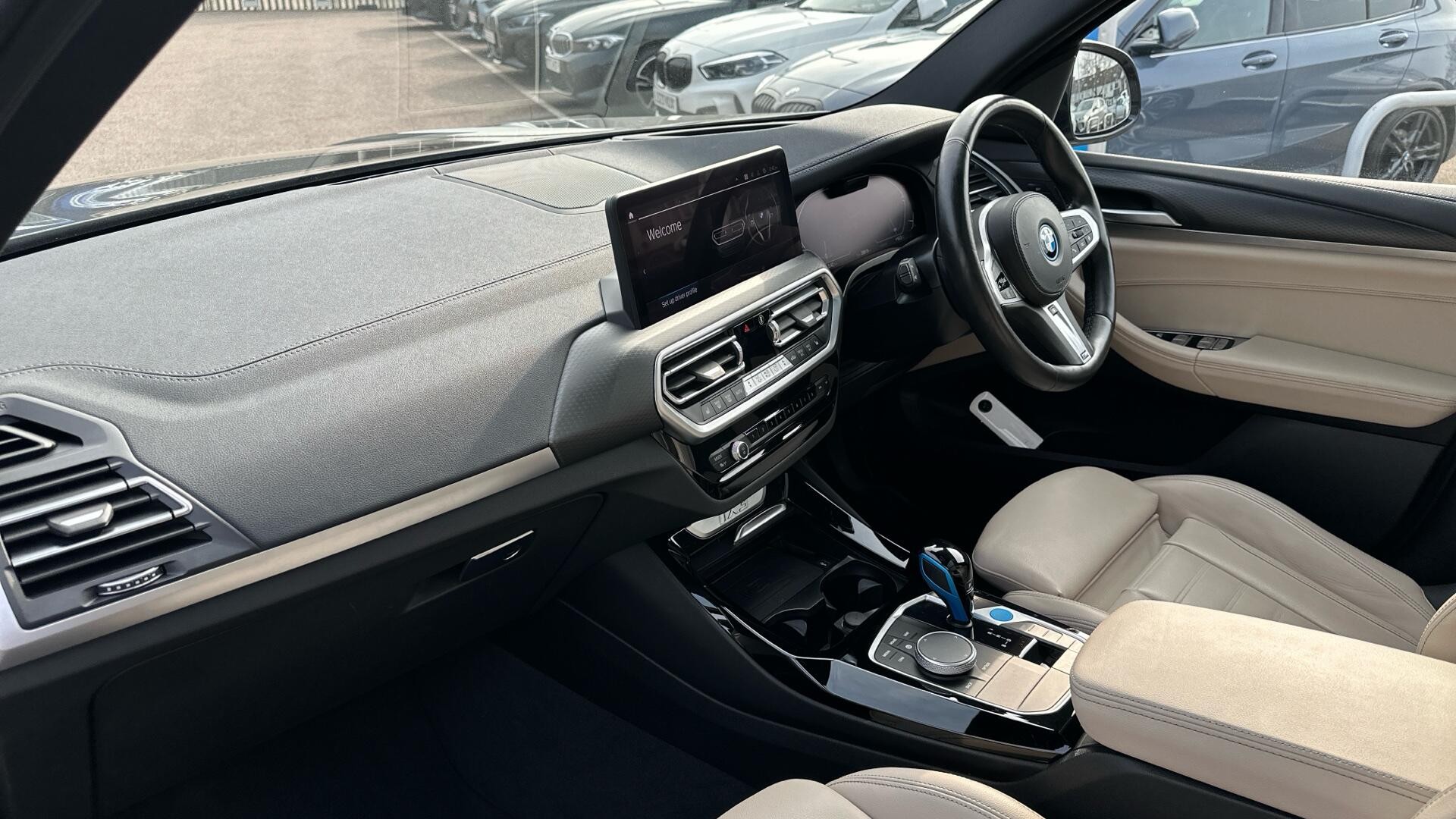 This 2022 BMW iX3 M Sport Pro is a superb example, boasting a full dealership service history and having been owned by just one person from new. This electric SUV offers a generous 80 kWh battery, providing a maximum range of 282 miles when new, and comes with a 12 month warranty and a 12 month MOT for your peace of mind. Its low mileage for its age, standing at only 28015 miles, further enhances its appeal. Notable features include a heated steering wheel for those colder mornings, Parking Assistant Plus with a 360 degree camera for effortless manoeuvring, and Driving Assistant Professional with adaptive cruise control for a more relaxed journey. You'll also benefit from Adaptive LED Headlights for improved visibility and Comfort Access with keyless entry for ultimate convenience.