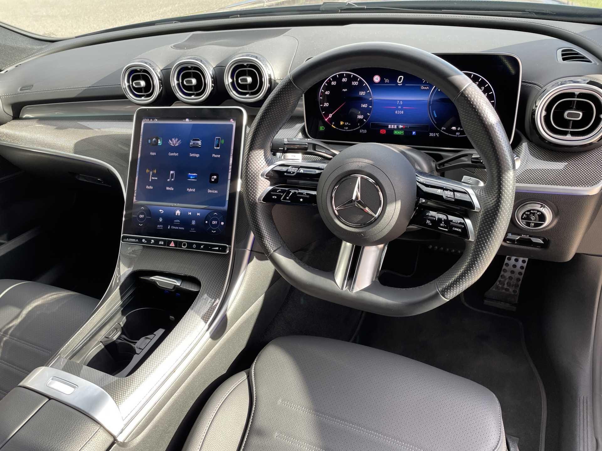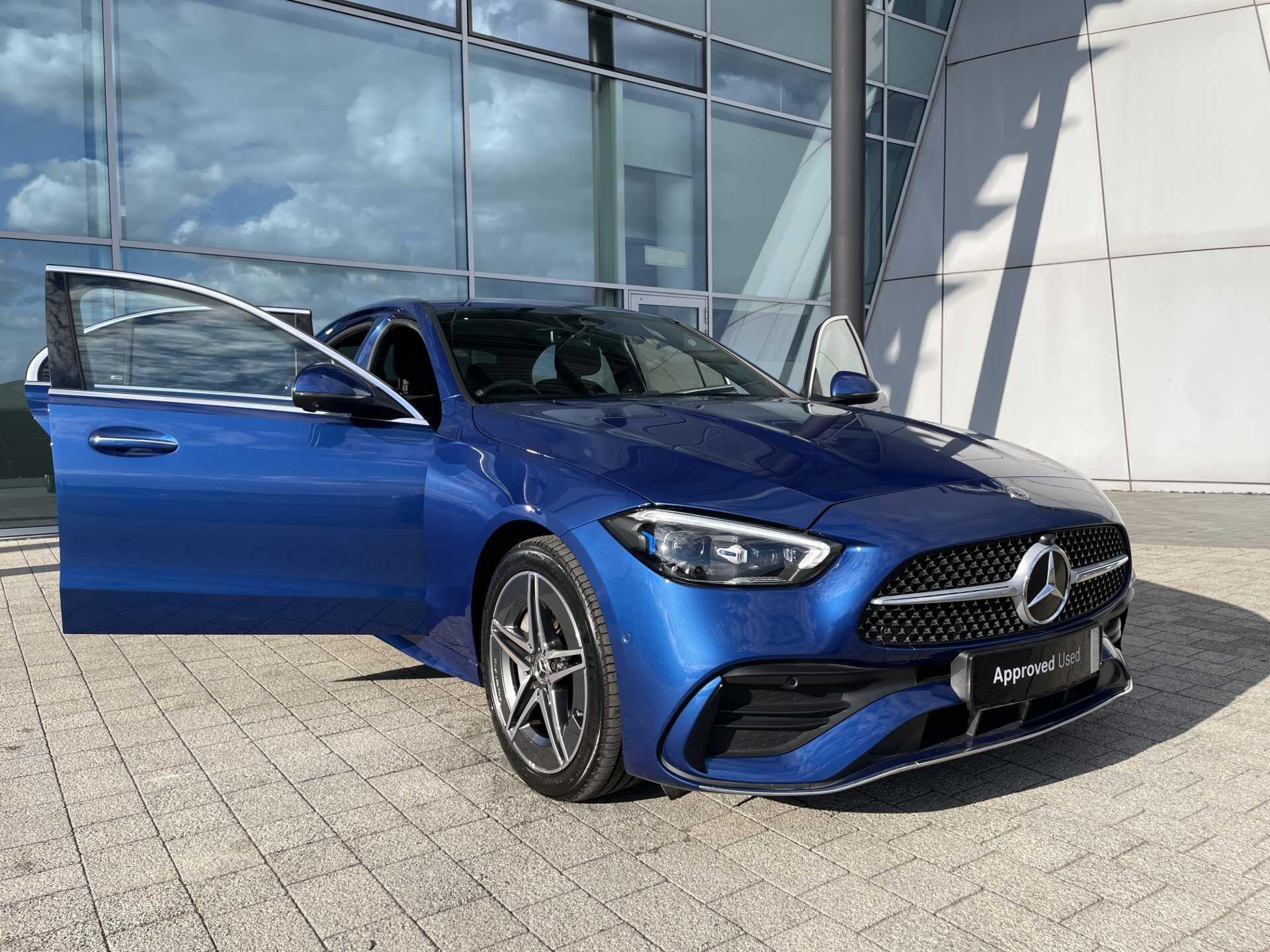 This 2024 Mercedes-Benz C Class C300e AMG Line (Premium) presents an exceptional ownership proposition with its remarkably low mileage of just 8199 miles and a full dealership service history, having been meticulously maintained by its single owner. This Euro 6 compliant plug in hybrid vehicle boasts a 2.0L petrol engine, offering an efficient and dynamic driving experience. The AMG Line trim enhances its sporty appeal, while the Premium designation ensures a wealth of desirable features.