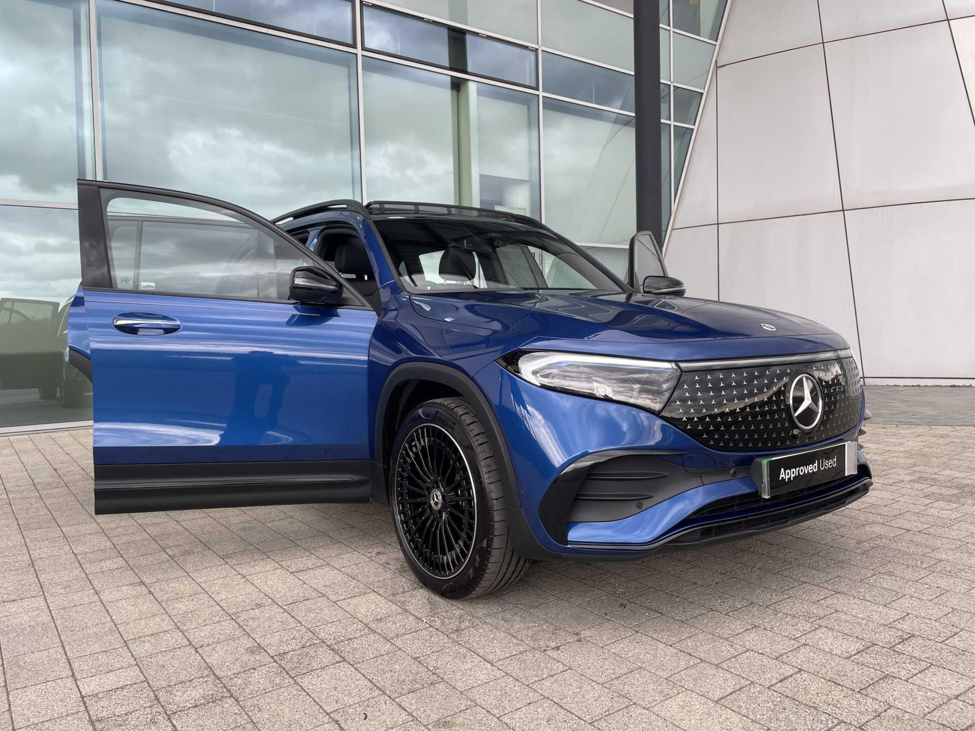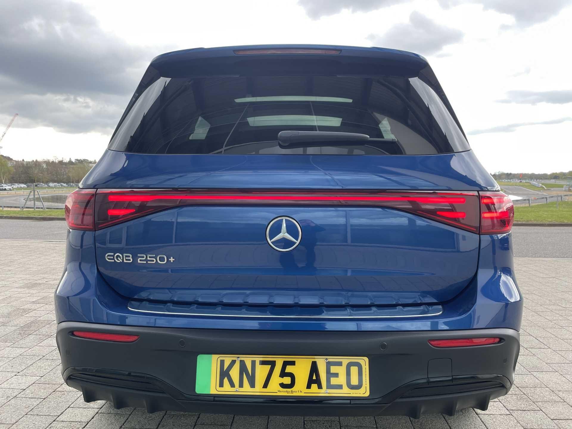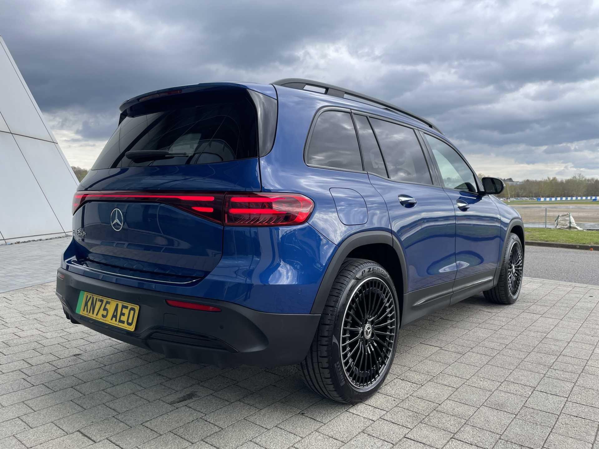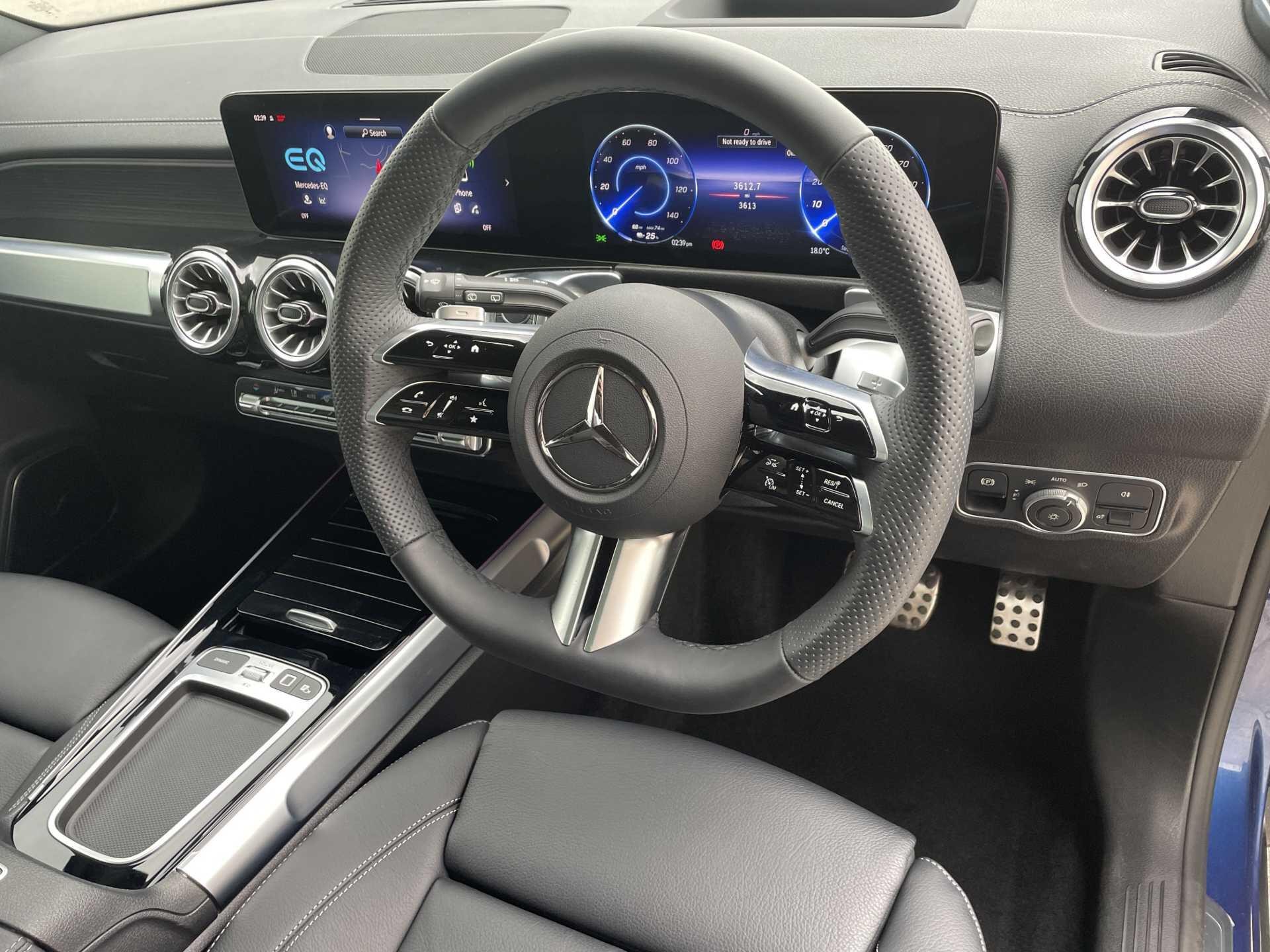 This 2025 Mercedes-Benz EQB 250+ AMG Line (Premium Plus) is a Mercedes-Benz manufacturer approved vehicle with a full dealership service history and only one owner from new, boasting exceptionally low mileage for its age at just 3606 miles. As an all electric model, it features a 78 kWh battery offering a maximum range of 293 miles, with a full home charging time of 10 hours 45 minutes using a 7kW charger and a rapid 36 minutes for 80% charge from empty at a public charging station. The AMG Line trim enhances its appeal with 20in AMG Multi-Spoke Design alloy wheels, painted in high gloss black with a high sheen rim flange, and includes smartphone integration for seamless Android Auto and Apple CarPlay connectivity.