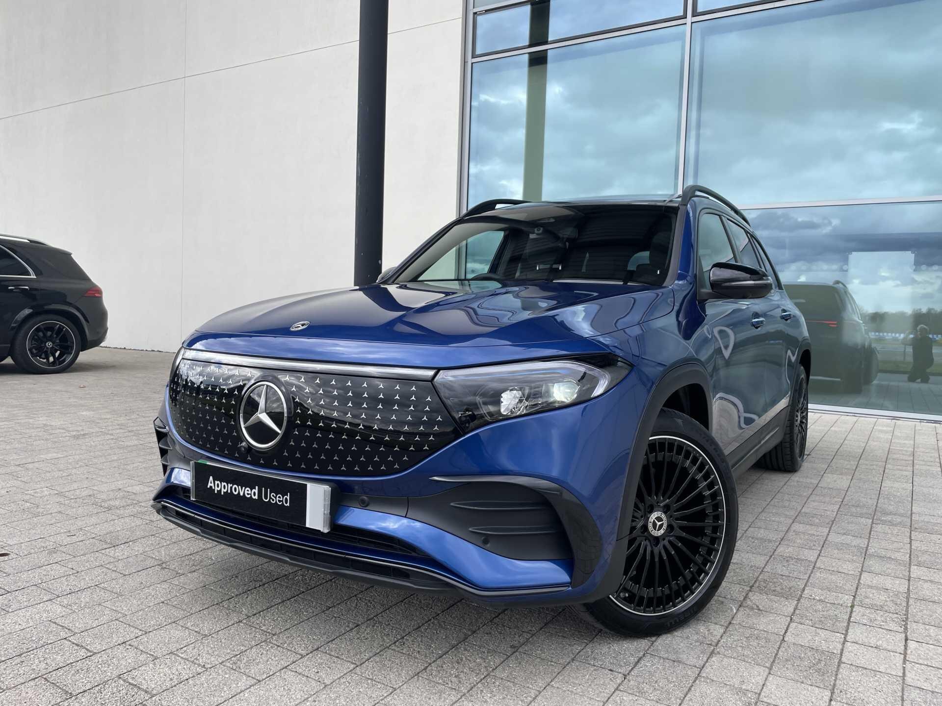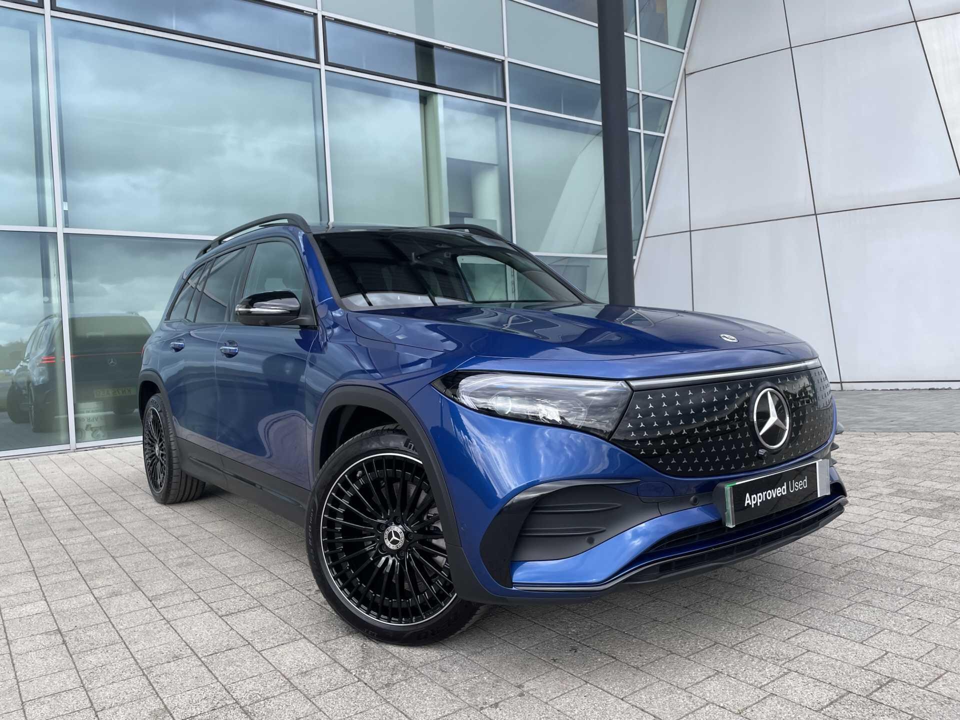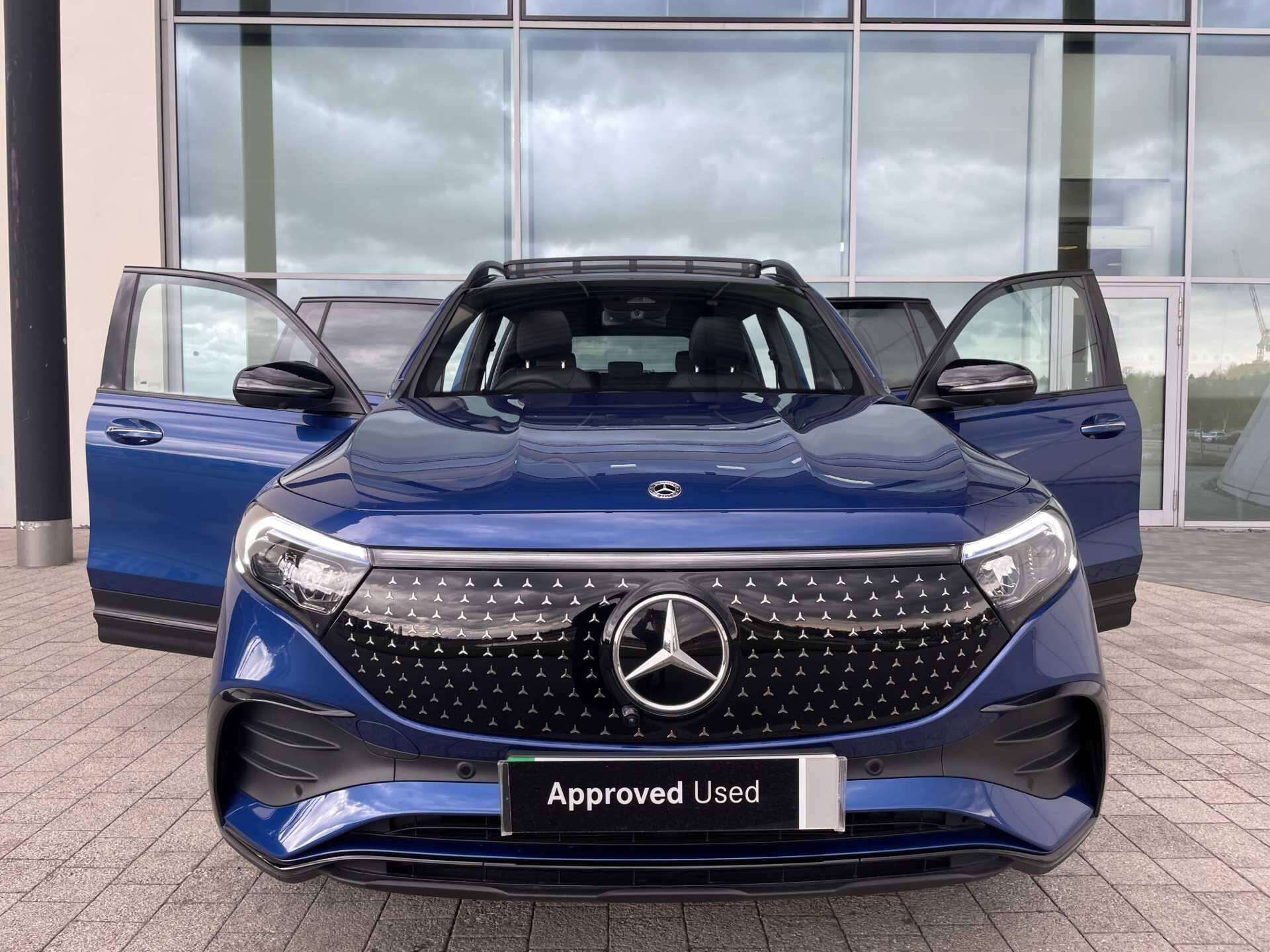 This 2025 Mercedes-Benz EQB 250+ AMG Line (Premium Plus) is a Mercedes-Benz manufacturer approved vehicle with a full dealership service history and only one owner from new, boasting exceptionally low mileage for its age at just 3606 miles. As an all electric model, it features a 78 kWh battery offering a maximum range of 293 miles, with a full home charging time of 10 hours 45 minutes using a 7kW charger and a rapid 36 minutes for 80% charge from empty at a public charging station. The AMG Line trim enhances its appeal with 20in AMG Multi-Spoke Design alloy wheels, painted in high gloss black with a high sheen rim flange, and includes smartphone integration for seamless Android Auto and Apple CarPlay connectivity.