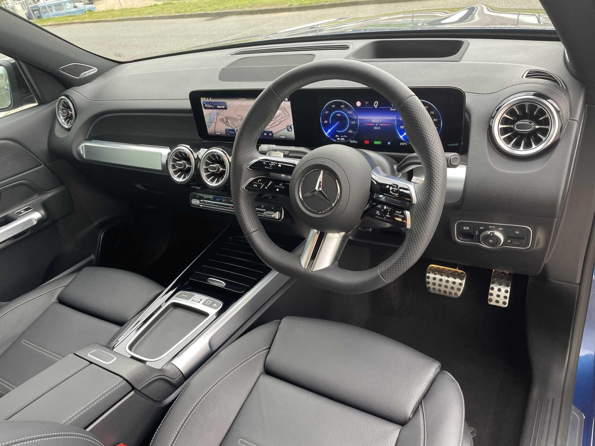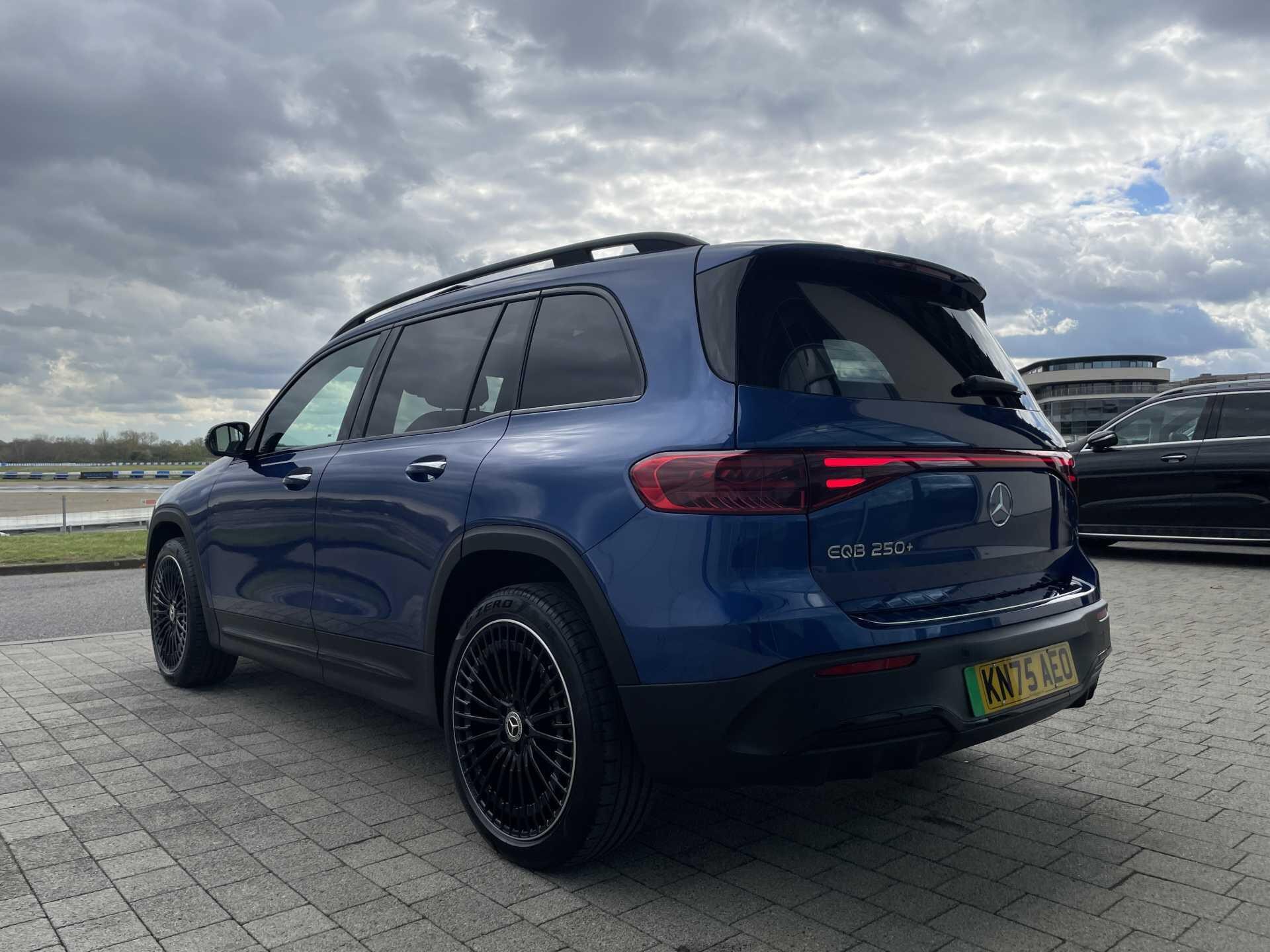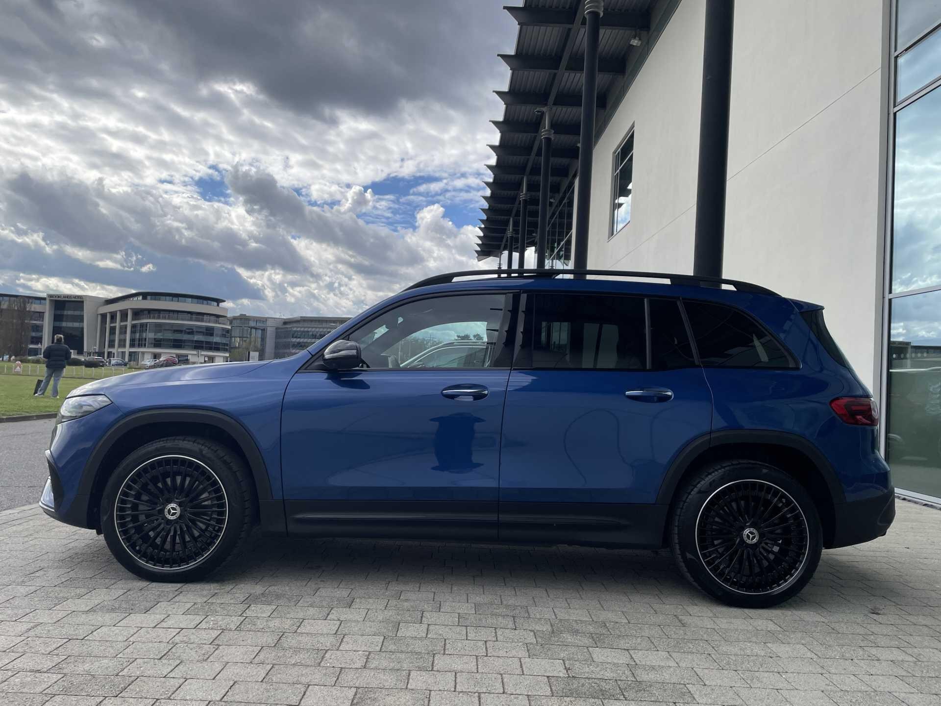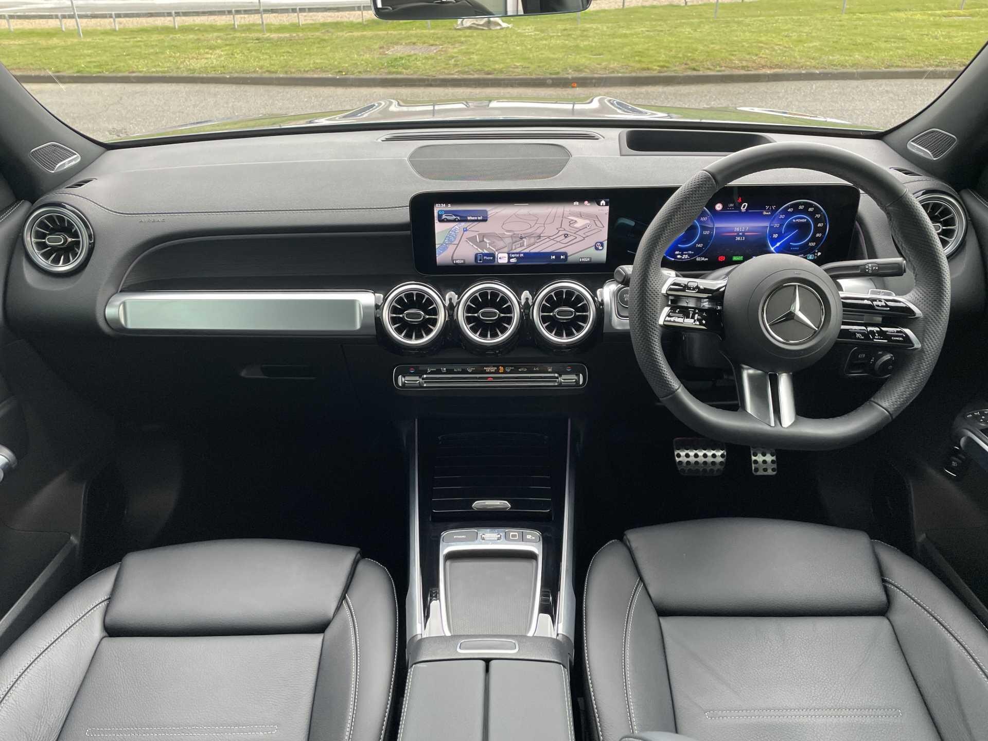 This 2025 Mercedes-Benz EQB 250+ AMG Line (Premium Plus) is a Mercedes-Benz manufacturer approved vehicle with a full dealership service history and only one owner from new, boasting exceptionally low mileage for its age at just 3606 miles. As an all electric model, it features a 78 kWh battery offering a maximum range of 293 miles, with a full home charging time of 10 hours 45 minutes using a 7kW charger and a rapid 36 minutes for 80% charge from empty at a public charging station. The AMG Line trim enhances its appeal with 20in AMG Multi-Spoke Design alloy wheels, painted in high gloss black with a high sheen rim flange, and includes smartphone integration for seamless Android Auto and Apple CarPlay connectivity.