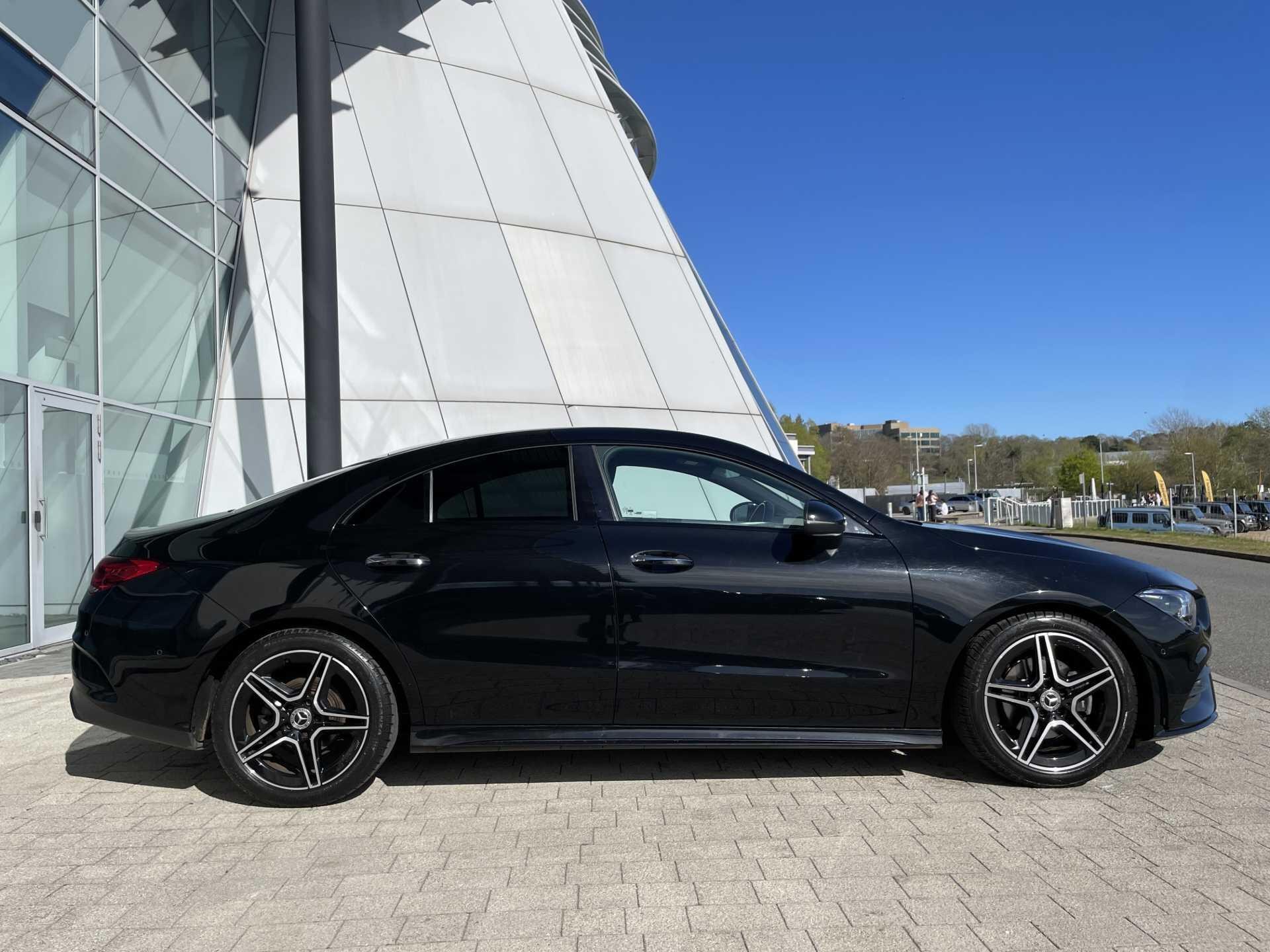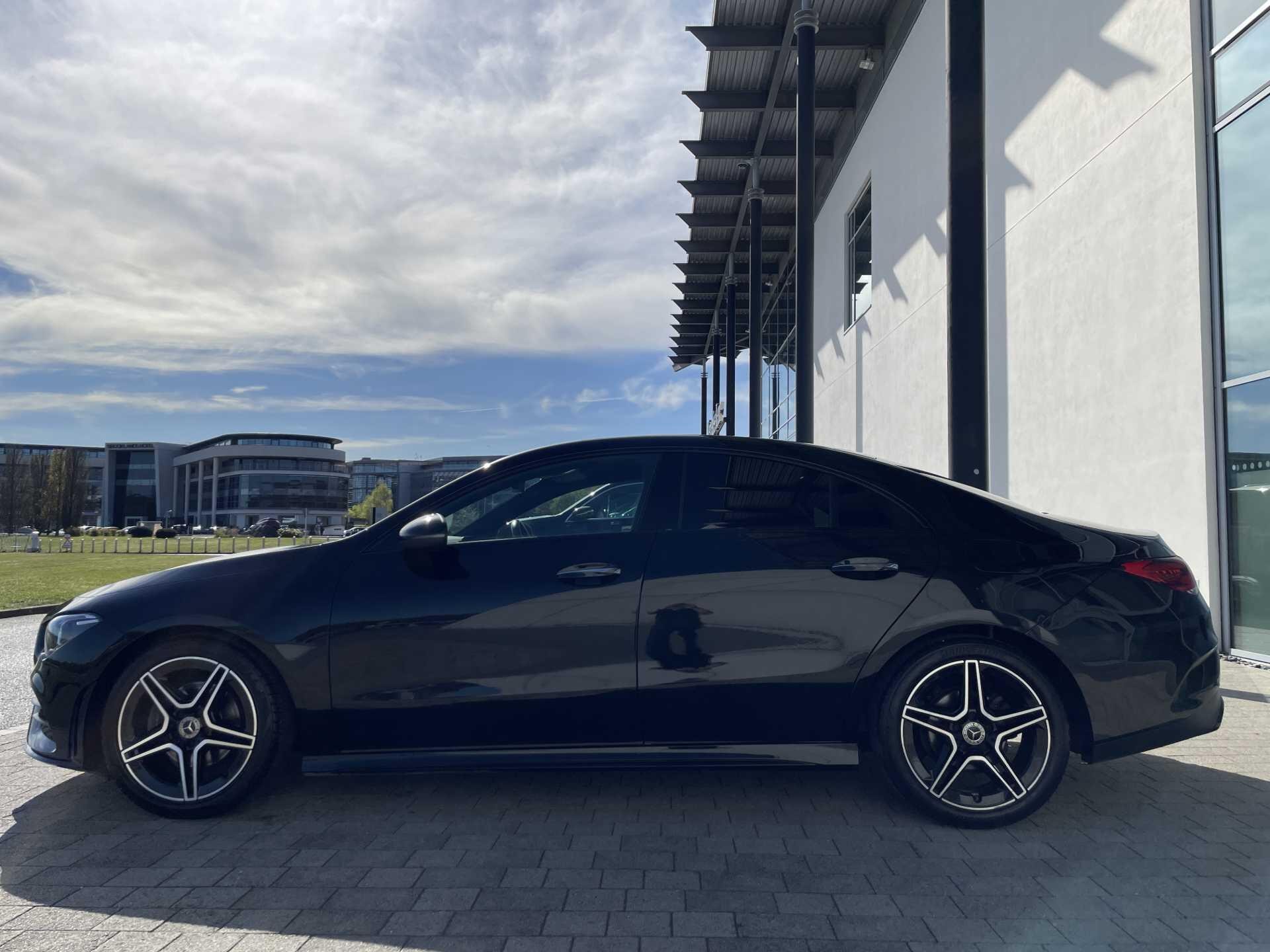 This 2023 Mercedes-Benz CLA180 AMG Line (Premium) is a Mercedes-Benz manufacturer approved vehicle with a full dealership service history and only one owner. It features a 1.3L petrol engine, meets Euro 6 emissions standards, and boasts an impressive fuel economy of 46 mpg. The AMG Line trim enhances its sporty appeal, while the Premium package includes the Keyless Go Comfort Package for effortless entry and starting, and the THERMOTRONIC luxury automatic climate control for personalised comfort.