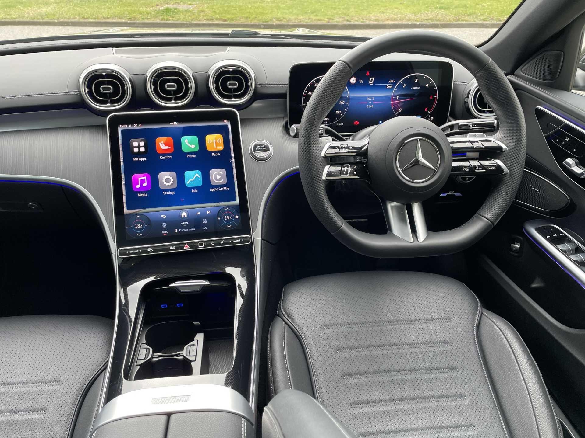 This 2025 Mercedes Benz C Class C300dh AMG Line (Premium) boasts a full dealership service history and is a Mercedes Benz manufacturer approved vehicle, having had only one owner from new. This Euro 6 compliant model features a sophisticated 2.0L diesel hybrid engine, offering an efficient and powerful driving experience. The AMG Line trim enhances its sporty appeal, while the Premium designation brings a host of desirable features.