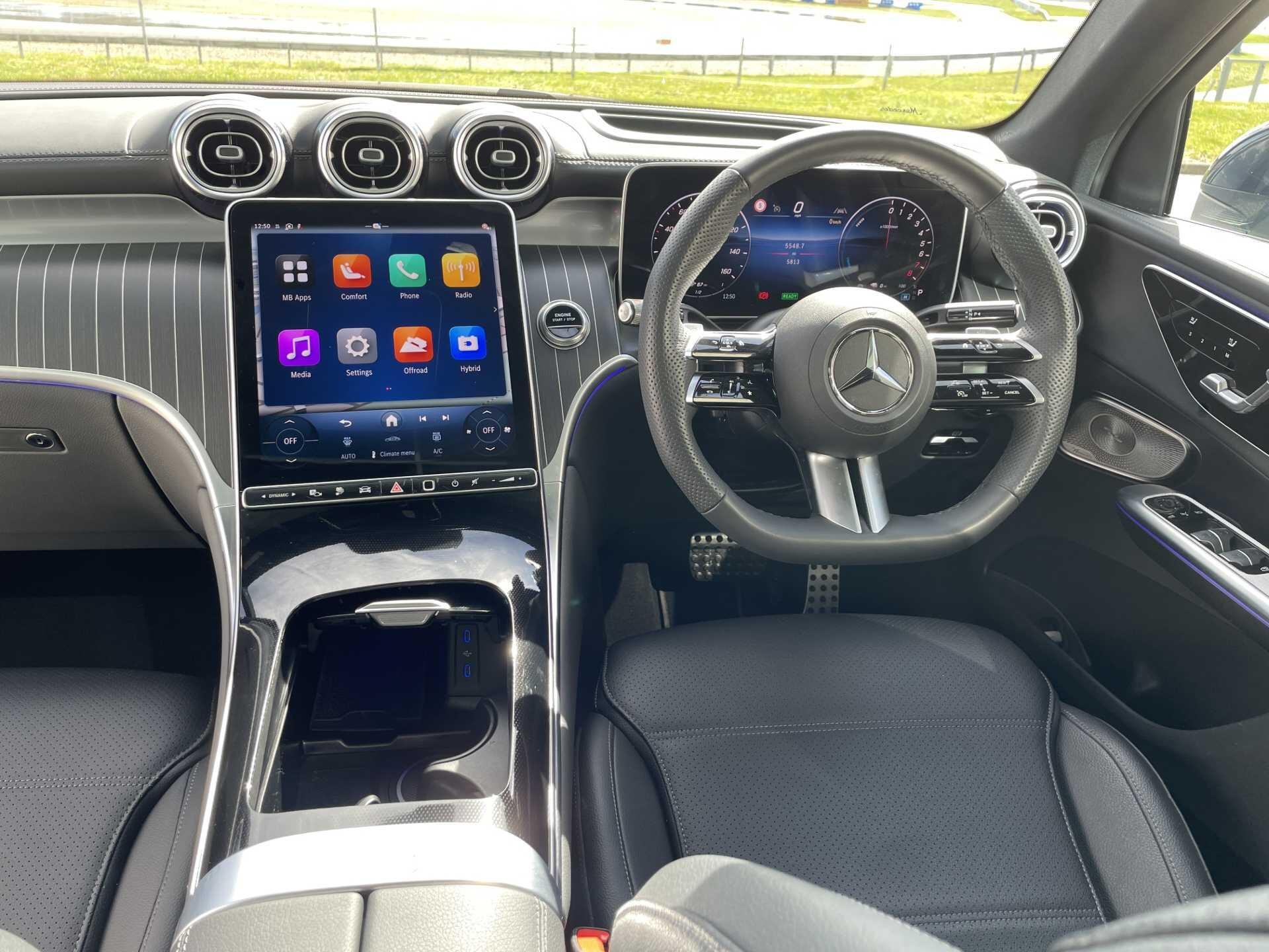 This 2025 Mercedes-Benz GLC300e AMG Line (Premium Plus) is a Mercedes-Benz manufacturer approved vehicle, boasting a single owner from new. This four wheel drive, Euro 6 compliant model features a 2.0L petrol plug in hybrid engine, offering an impressive 0-62mph acceleration in just 6.7 seconds. It comes equipped with a comprehensive charging system, including DC charging, remote and charging services plus, and an AC charging system. For enhanced comfort and handling, it benefits from suspension with comfort and self levelling capabilities, and includes a 5 metre straight Mode 3 charging cable suitable for wallbox and public charging stations.